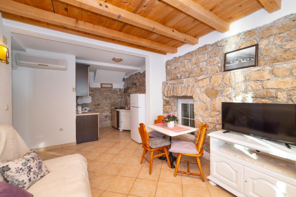 Nasz stary dom odnowiony na dwa oddzielne mieszkania. Każdy apartament posiada własną kuchnię, łazienkę, sypialnię. Mieszkanie na pierwszym piętrze, posiada balkon z widokiem na morze i mały taras z drugiej strony domu. Dom posiada nowoczesny sprzęt, ale plaża jest tylko 5 metrów i znajduje się w małej nadmorskiej miejscowości Brist. Do centrum jest 10 minut spacerem, a większe sąsiednie miasto ma 2 km. Znanych ośrodków turystycznych takich jak Split, Dubrownik, Mostar, Medjugorje można zwiedzać przez kilka godzin. Brist to ciche miejsce nad morzem idealne do wypoczynku wszystkich, zwłaszcza rodzin z małymi dziećmi.