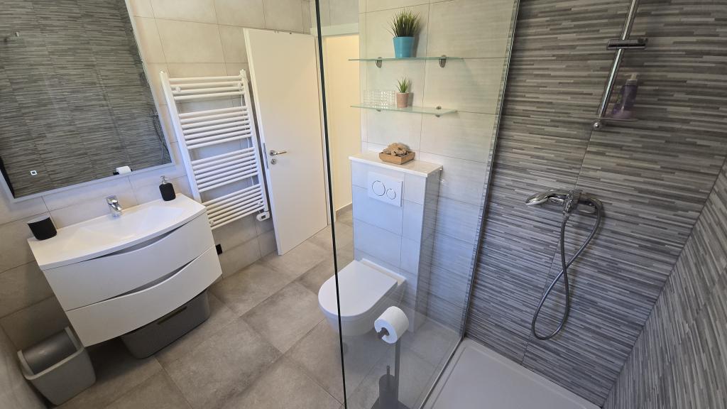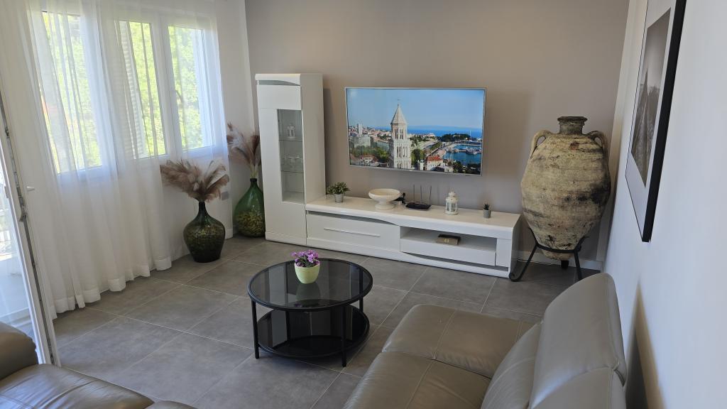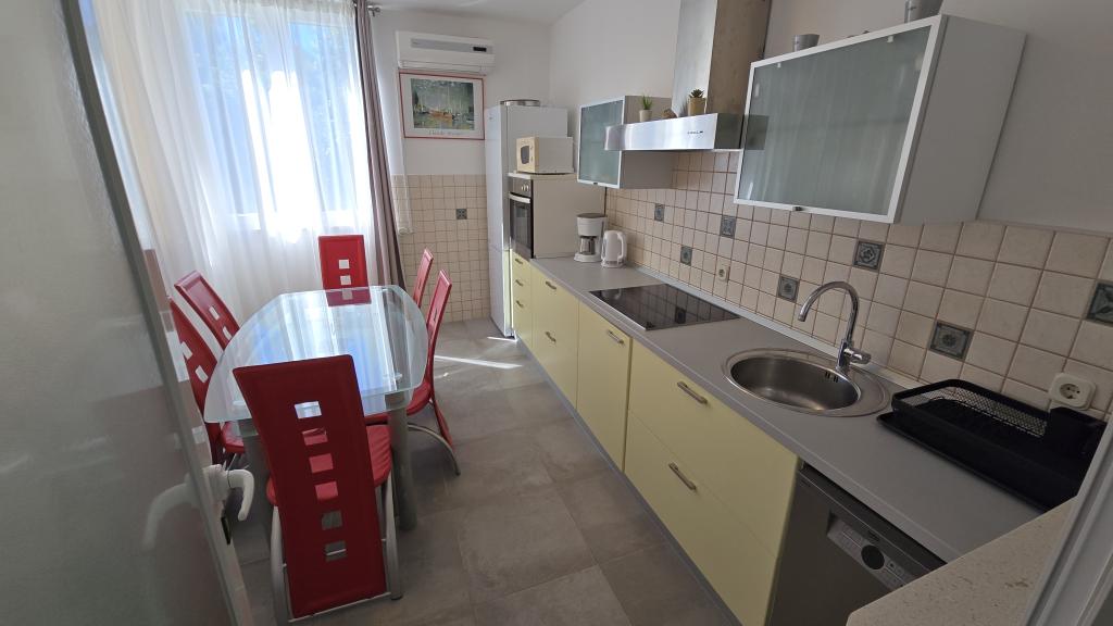 Apartament Antea znajduje się w spokojnej części zatoki Brna, odpowiedni dla rodzin z dziećmi, zaledwie 40 m od plaży. Mieszkanie znajduje się na 1 piętrze domu i jest w pełni wyposażone. Mieszkanie ma 3 sypialnie (łącznie 6 łóżek), 1 kuchnię/jadalnię, 1 pokój dzienny o powierzchni 27m2 i 2 łazienki. Mieszkanie ma piękny widok na morze (łącznie 2 tarasy).Dom posiada część zewnętrzną, na której znajduje się miejsce na ognisko-grill.Do dyspozycji jest także miejsce parkingowe (3 samochody) na zamkniętym podwórzu.