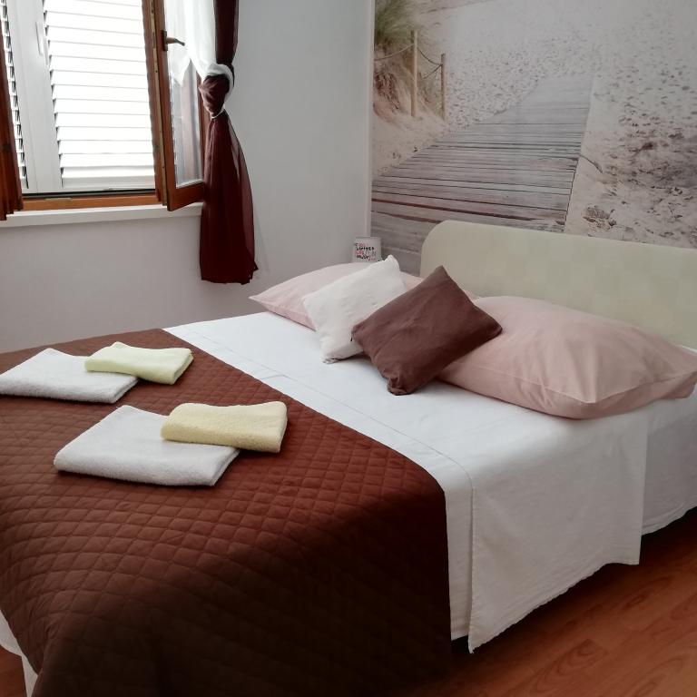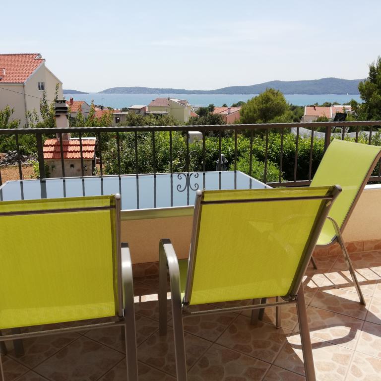 Apartament znajduje się w domu rodzinnym. W pełni wyposażone składa się z: kuchni, salonu, sypialni i łazienki. Z tarasu roztacza się widok na morze i pobliskie wyspy. W domu znajduje się 5 minut spacerem do plaży, 10 minut od centrum miasta Sibenik ...