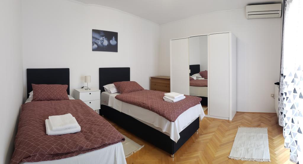 Apartament o powierzchni 85m2 z dwoma wygodnymi pokojami i salonem znajduje się 80 metrów od plaży w samym centrum Brodaricy. Kwatera posiada pełne wyposażenie do przyjemnego i długiego pobytu. W promieniu 300m znajdują się najbardziej podstawowe obiekty takie jak sklep, apteka, przychodnia, piekarnia, restauracja oraz dworzec autobusowy. Oferujemy wygodny i częściowo zadaszony parking, który pomieści kilka samochodów i przyczepę. Jeśli chcesz zwiedzić wyspę Krapanj, port promowy znajduje się kilka minut spacerem od apartamentu. Centrum Szybenika oddalone jest od obiektu o 9 km, a Park Narodowy Krka – o 18 km.