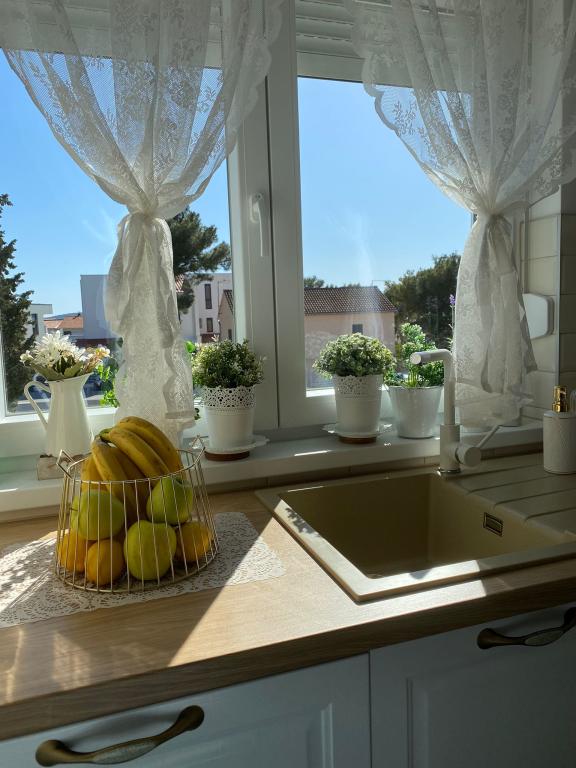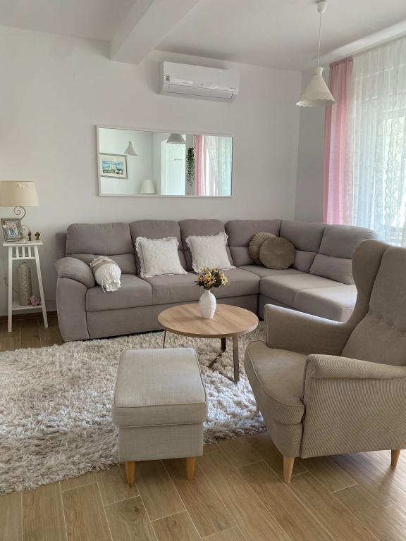 Ciesz się wakacjami w Brodarica koło Sibenika, w tym nowo umeblowanym i urządzonym mieszkaniu, znajdującym się na pierwszym piętrze budynku z 5 jednostkami mieszkalnymi, tylko 100m. od morza i plaży. Mieszkanie posiada dwie sypialnie z podwójnym łóżkiem, a także posiada dodatkowe łóżko na kanapie w salonie dla jednej osoby. Może pomieścić 5 osób. Jeśli podróżujesz z małymi dziećmi, na życzenie dostępne jest łóżeczko dziecięce. Apartament wyposażony jest w TV-SAT w salonie, klimatyzację w salonie iw pokojach, łącze internetowe Wi-Fi (WLan) oraz pralkę. W kuchni znajdują się sztućce i naczynia do przygotowywania i serwowania potraw, kuchenka, lodówka z zamrażalnikiem oraz zmywarka. W łazience z prysznicem dostępna jest suszarka do włosów. Mieszkanie posiada własny balkon z zadaszonym tarasem o powierzchni 10m2. Pościel, ręczniki i ściereczki kuchenne czekają na Państwa, świeże dostarczane są raz w tygodniu. Do dyspozycji gości apartamentu jest jedno miejsce parkingowe.