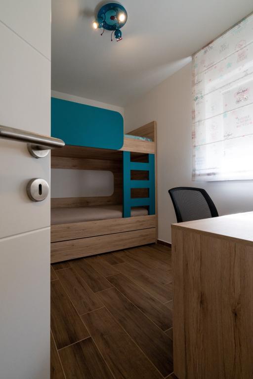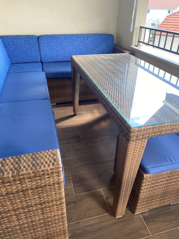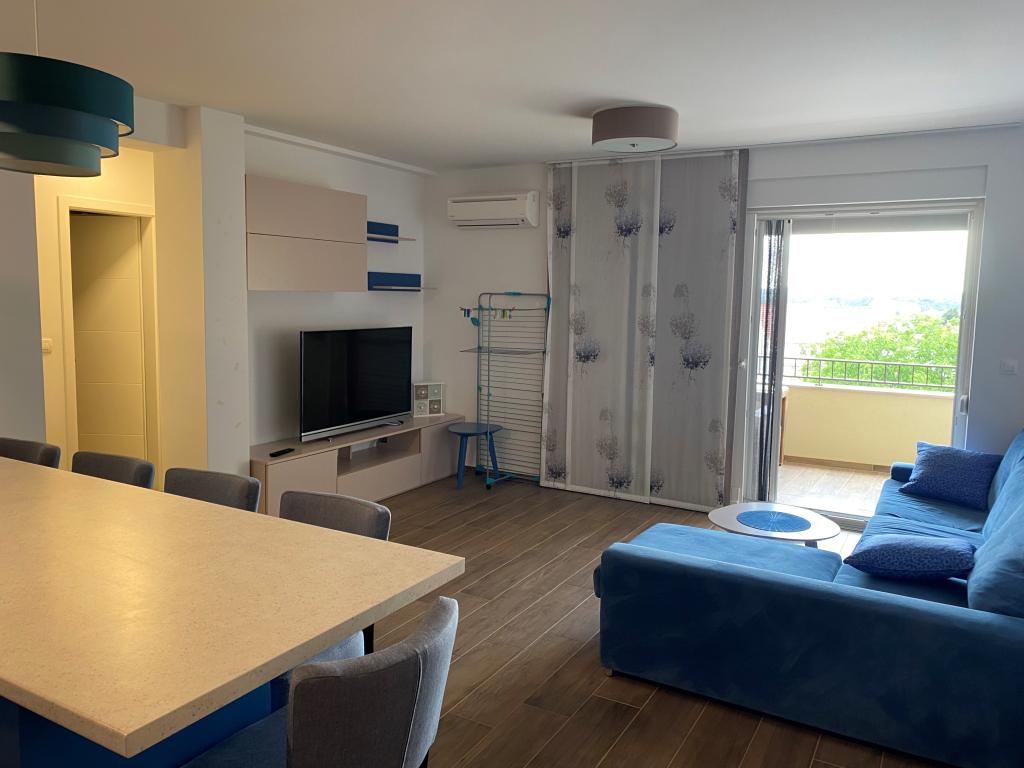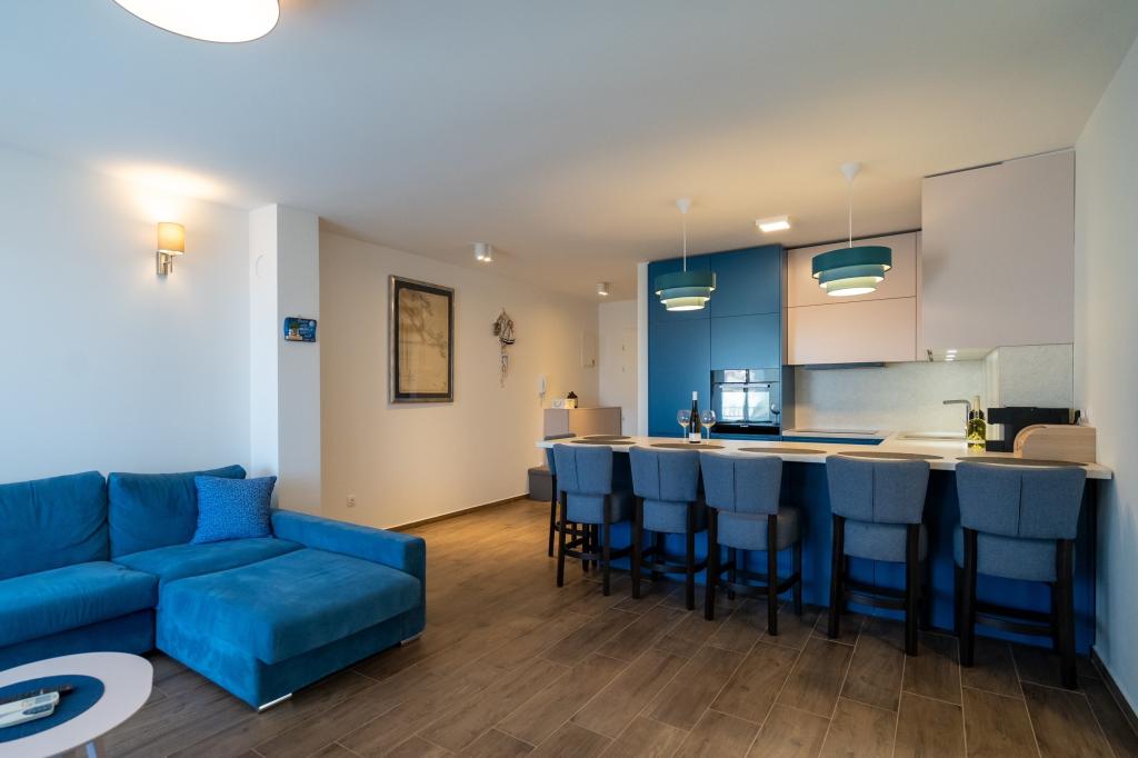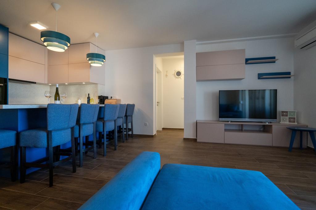 Nowość na rynku. Nowoczesny apartament z widokiem na morze i wyspę Krapanj. Apartament posiada dwie sypialnie - jedna z podwójnym łóżkiem a druga z łóżkiem piętrowym + dostawka. Apartament wyposażony jest w 3 klimatyzatory zlokalizowane w sypialniach i salonie. Piękny taras z widokiem na morze wyposażony jest w wygodny narożnik oraz wentylator do użytku na zewnątrz. Markiza na tarasie zapewnia wystarczającą ilość cienia w upalne dni. Dostęp do morza jest zapewniony z dolnej części mieszkania. Odległość od morza wynosi 60 metrów, co czyni ten apartament idealnym miejscem na relaks.