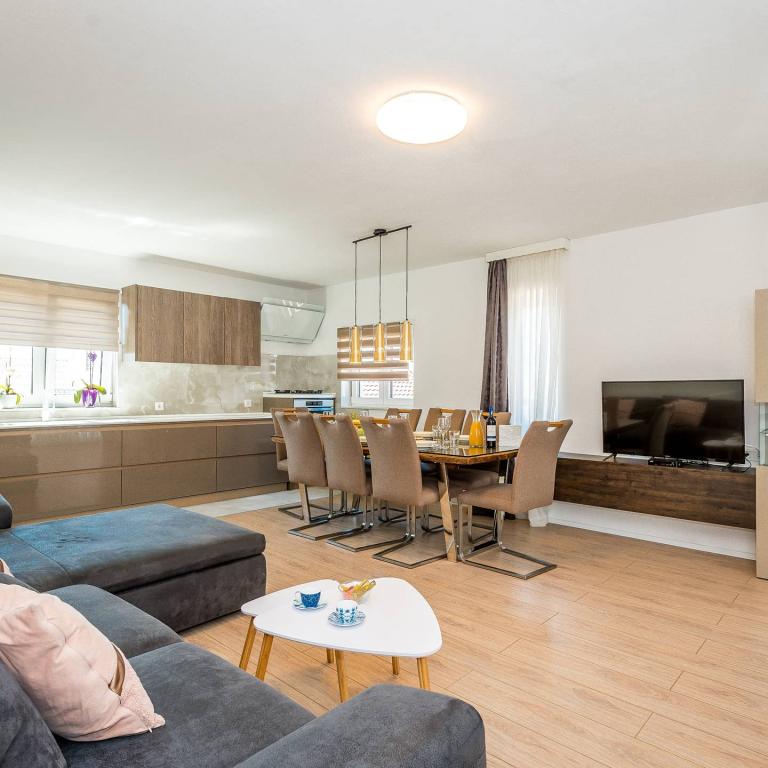 Szczera rekomendacja. To, co widzisz na zdjęciu, ma tę samą naturę, wszystko oprócz gospodyni. Mianowicie, zdjęcie nie może opisać tak wesołej, przystępnej, pozytywnej i życzliwej osoby wystarczającą ilością słów. Mieszkanie jest nowe i zadbane, widać, że w montaż włożono wiele wysiłku. Zakwaterowanie jest blisko miasta i wszystkich innych miejsc, które chciałbyś zobaczyć np. NP Krka, Primosten ... Cóż mogę powiedzieć poza tym, że na pewno wrócę.
