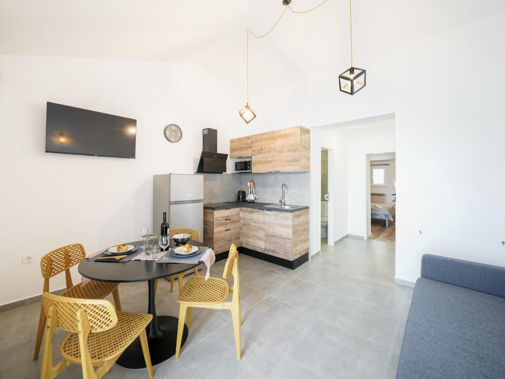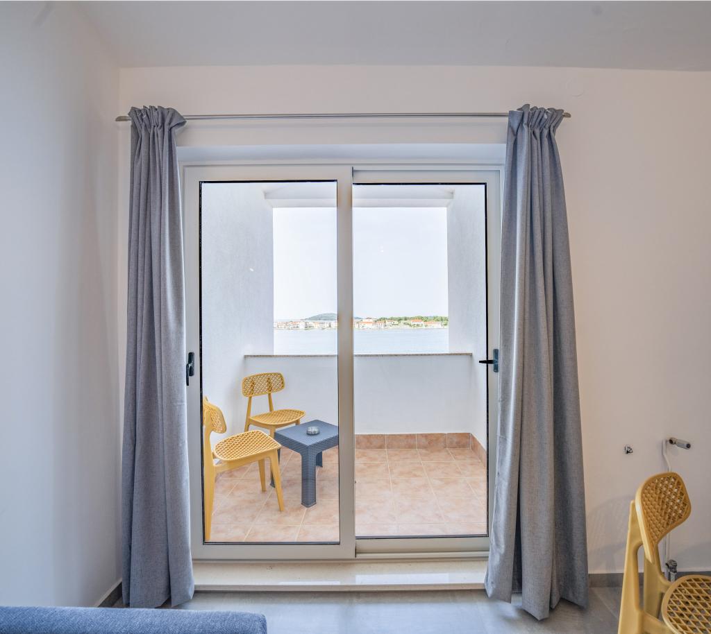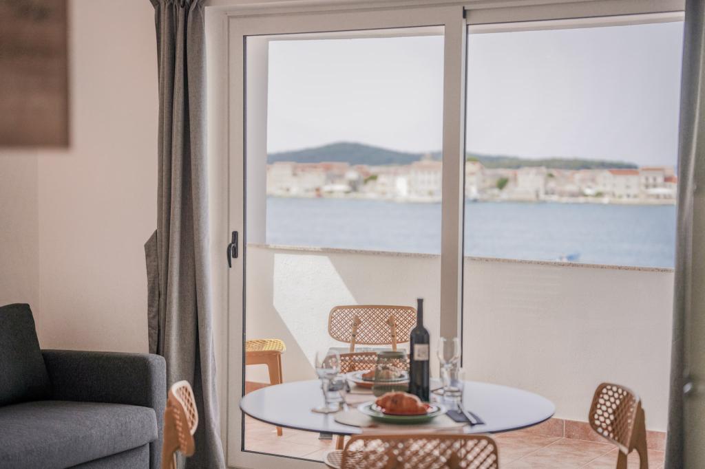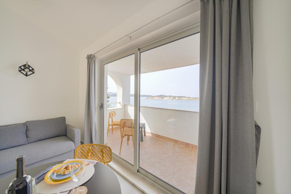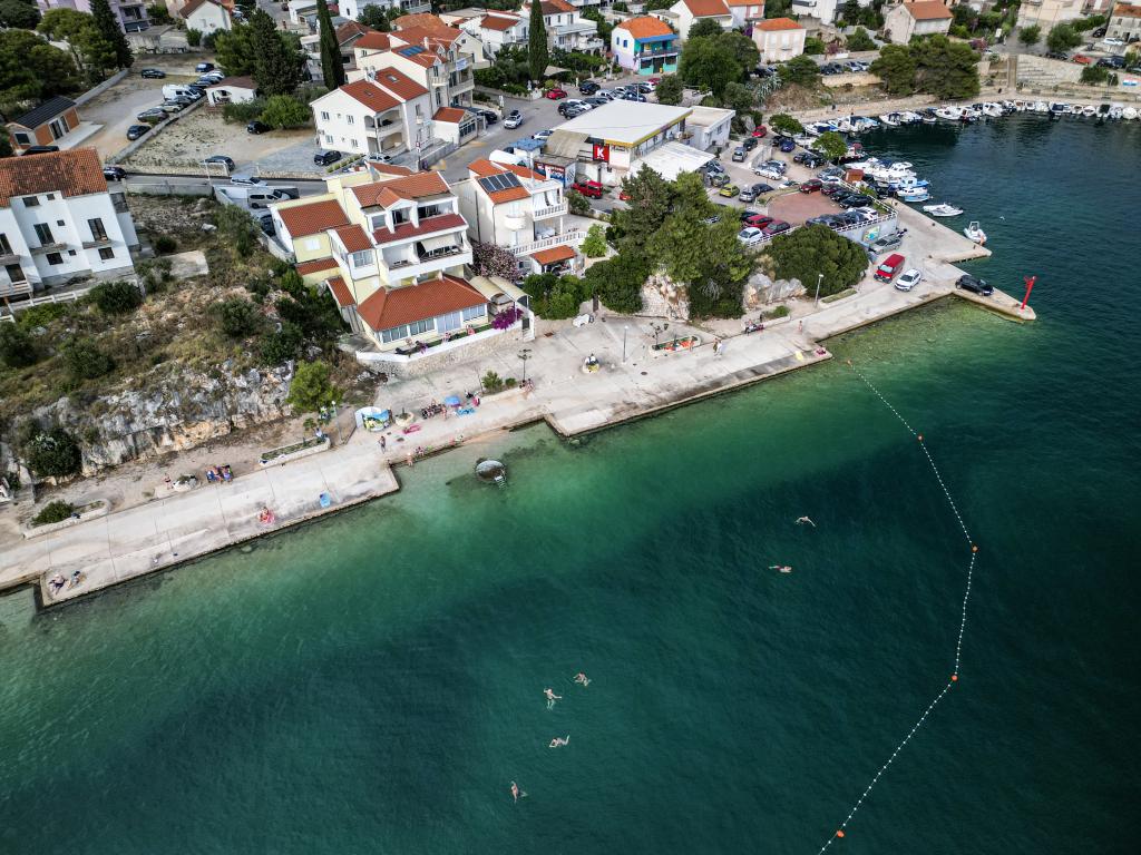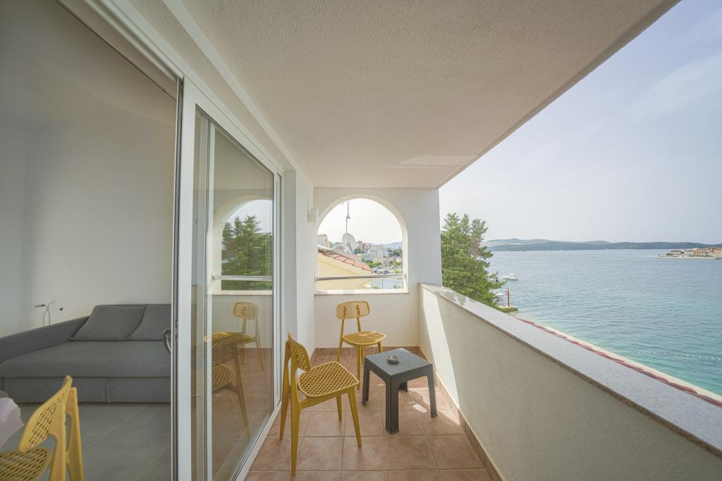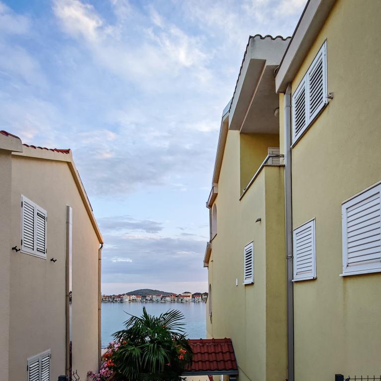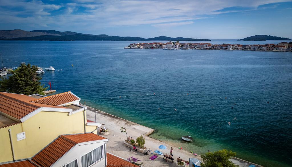 Nowocześnie wyposażone i nowo urządzone apartamenty, pierwszy rząd do morza, w samym centrum miasta. Tylko kilkadziesiąt metrów do sklepu, apteki, dworca autobusowego, lekarza, promu na wyspę Krapanj. Na podwórzu dla każdego apartamentu przewidziano jedno miejsce parkingowe oraz dwa leżaki na tarasie tuż nad plażą. Spokojna okolica bez klubów nocnych i tym podobnych.