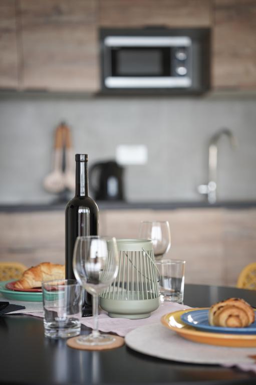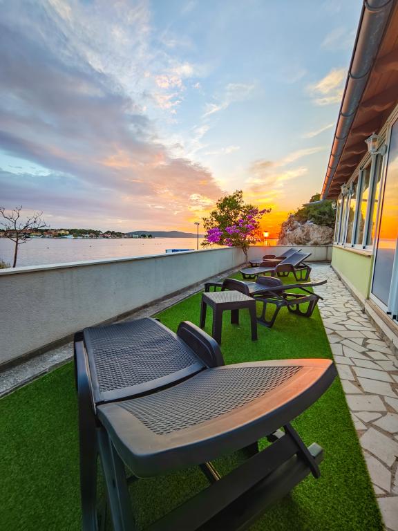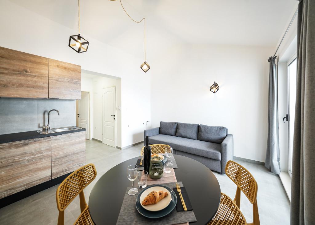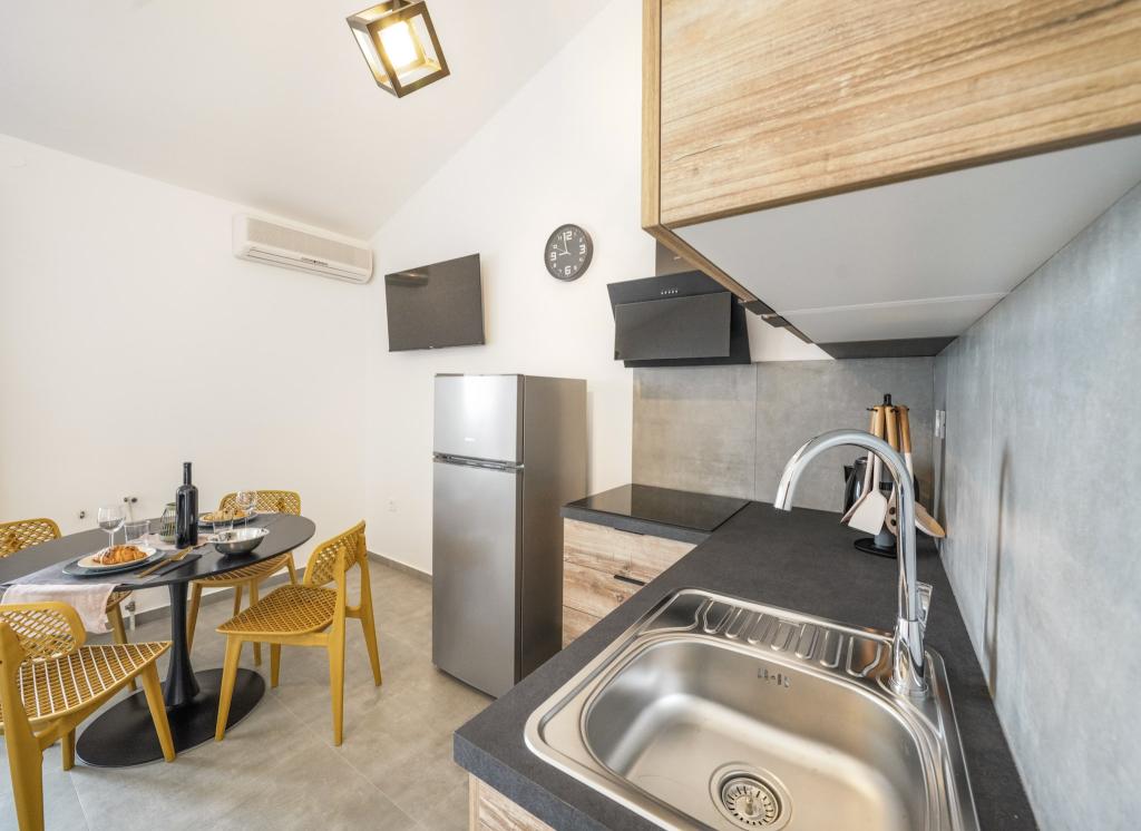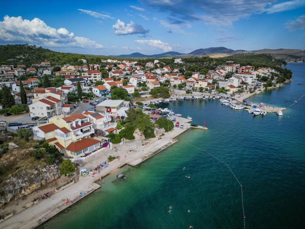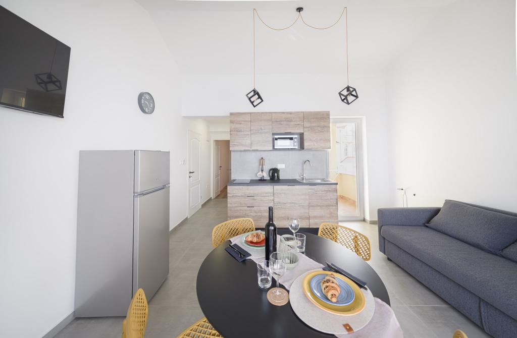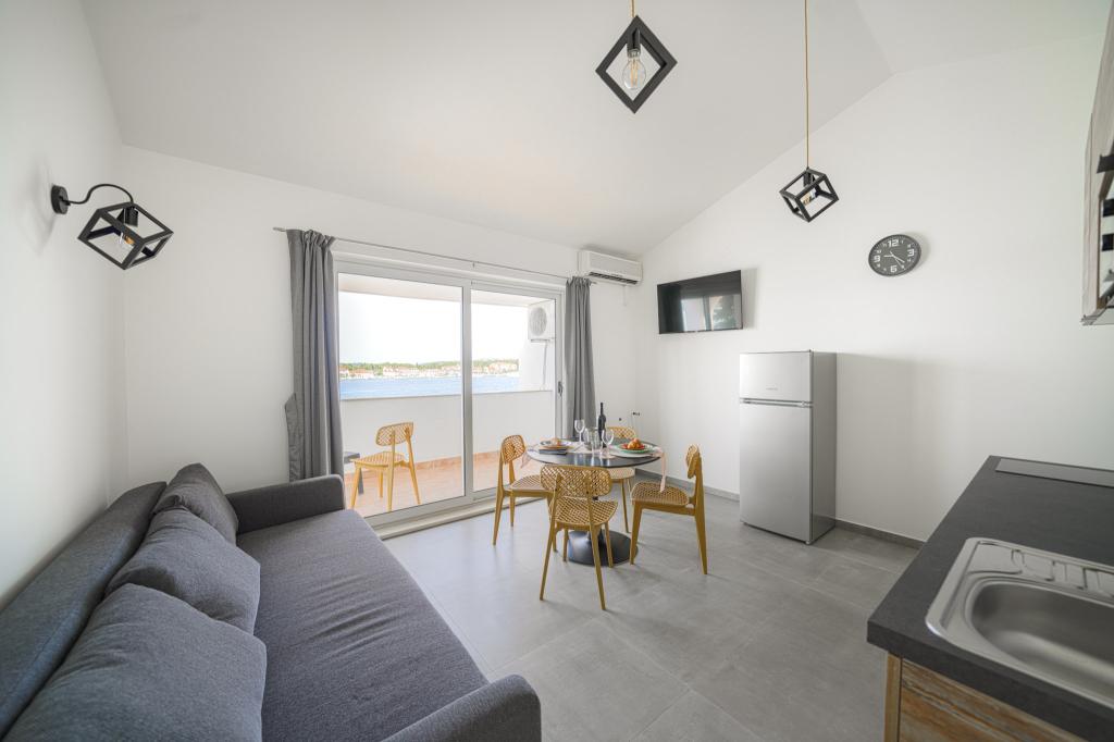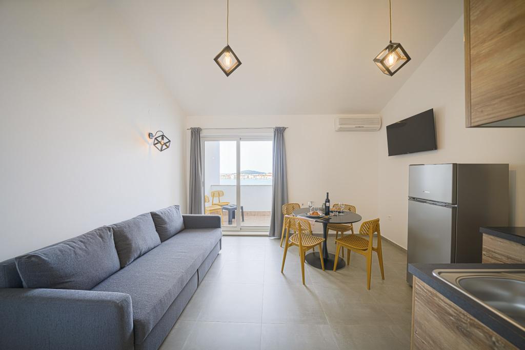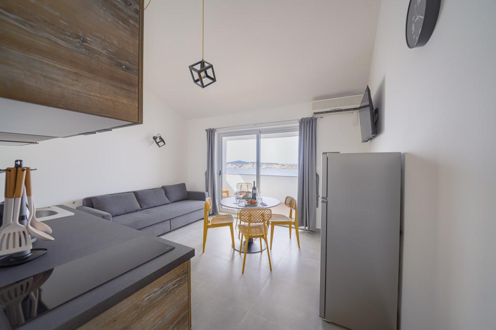 Nowocześnie wyposażone i nowo urządzone apartamenty, pierwszy rząd do morza, w samym centrum miasta. Tylko kilkadziesiąt metrów do sklepu, apteki, dworca autobusowego, lekarza, promu na wyspę Krapanj. Na podwórzu dla każdego apartamentu przewidziano jedno miejsce parkingowe oraz dwa leżaki na tarasie tuż nad plażą. Spokojna okolica bez klubów nocnych i tym podobnych.