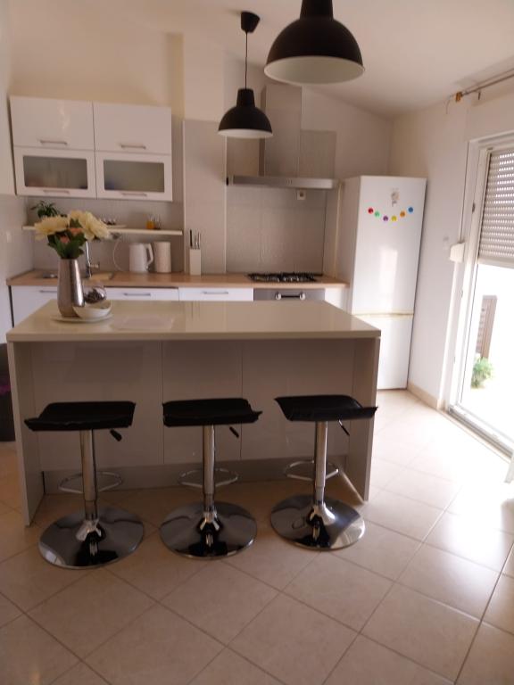 Witamy w apartamentach Jurišić. Znajdujemy się w Brodarica 5 km od Sibenika. To miejsce ma piękne plaże i promenadę nad morzem, plaże są żwirowe i betonowe z krystalicznie czystym morzem. Naprzeciw miasta Brodarica znajduje się najniższa wyspa na Morzu Śródziemnym, Krapanj, którą zdecydowanie warto odwiedzić. Także w pobliżu znajdują się parki narodowe Krka i Kornati. . Przyjazd od 14:00 i wyjazd do 10:00. W przypadku rezerwacji należy zapłacić 20% zaliczki od całkowitej kwoty. Mamy nadzieję, że spędzicie u nas przyjemne i niezapomniane wakacje!