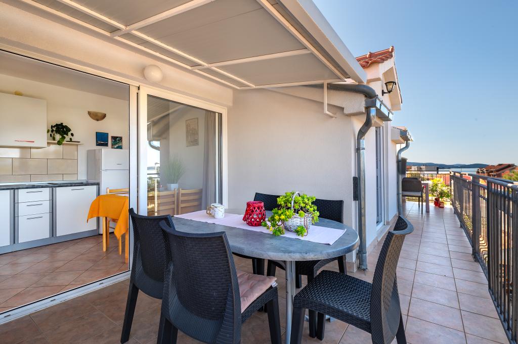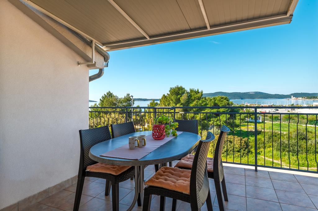 Apartament w pięknej części Brodarica. Widok z tarasu na plaży. duży parking. Grill na podwórku. przy grillu stół jest w pobliżu wszystkich obiektów towarzyszących. Solaris, Sibenik National Parks Krka and Kornati Centra oscylacyjne, plac zabaw dla dzieci