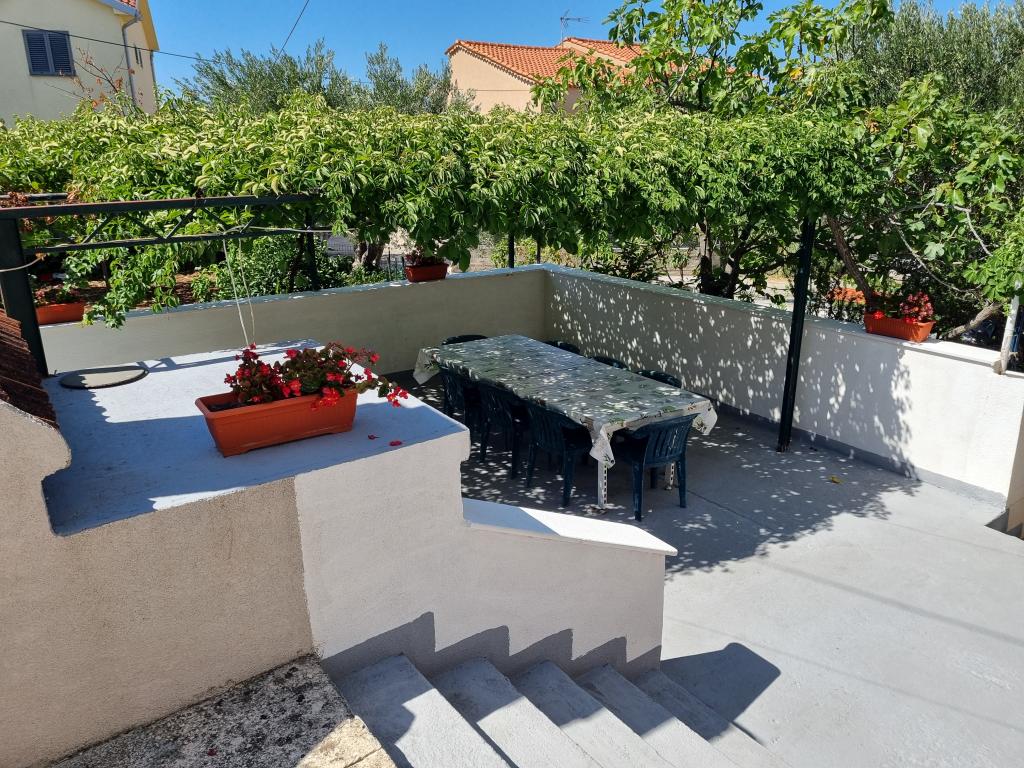 Typ nieruchomości - dom jednorodzinny. Położony w spokojnej okolicy Brodarice. Odległość od plaży wynosi 5 minut, a od centrum 20 minut spacerem. Nieruchomość położona jest na łagodnym zboczu, z którego roztacza się piękny widok na morze i pobliskie wyspy. Wokół domu znajduje się ogród z warzywami, zieloną trawą, kwiatami oraz drzewami oliwnymi i owocowymi, a także dziedziniec. Przed domem znajduje się duży, zacieniony taras, na którym znajduje się grill. Dom posiada miejsca parkingowe dla 5 samochodów.