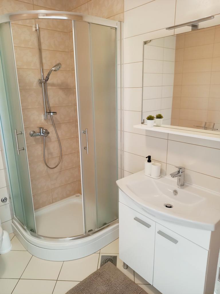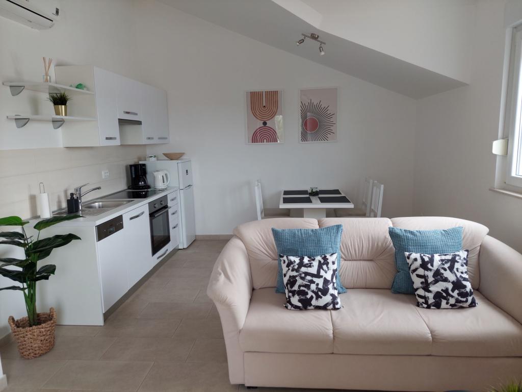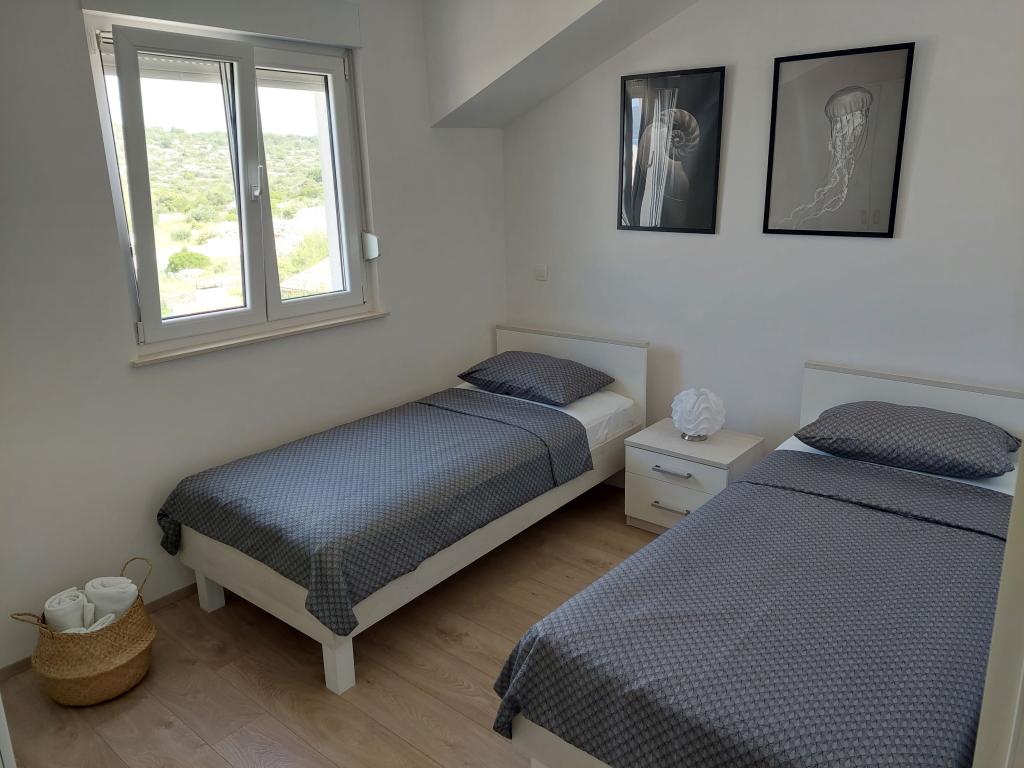 Nowoczesny nowy apartament na pierwszym piętrze w nowo wybudowanym domu w Brodarica. Apartament posiada klimatyzację, duży taras, wygodny pokój dzienny, kuchnię, łazienkę z prysznicem oraz dwóch sypialni. W przedniej części domu znajduje się parking. Nad morzem / plaż, sklepów i restauracji można dojść w 5-6 minut.