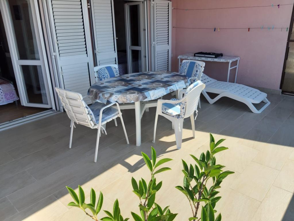 Apartamenty położone są w spokojnej części Brodaricy, 150 m (2 min. spacerem płaską, bez skarp) od głównej, kamienistej plaży. Obok znajduje się wiele mniejszych, kamienistych plaż, zapewniających większą prywatność. Dom otoczony jest zielenią i kwiatami, a do dyspozycji gości jest bezpłatny, zacieniony parking. Apartamenty są klimatyzowane, każdy pokój posiada własną łazienkę, duży taras/balkon z widokiem na morze i wyspy, wyposażoną kuchnię, zmywarkę, kuchenkę mikrofalową, grill, podgrzewacz wody, Wi-Fi oraz bezpłatny parking. Drzwi i okna zabezpieczone są moskitierami. 100 m od apartamentu znajduje się najbliższy sklep, piekarnia, fast food, kawiarnie. Duże centra handlowe z artykułami spożywczymi, odzieżą, obuwiem itp. znajdują się 2 km od apartamentu. Na plaży znajduje się zacieniony plac zabaw dla dzieci, boisko do siatkówki plażowej, koszykówki, sprzęt do ćwiczeń na świeżym powietrzu, toalety, prysznice, skutery wodne i wypożyczalnia łodzi. Apartament dla 4 osób posiada 2 sypialnie, 2 łazienki, kuchnię oraz duży taras z widokiem na morze i wyspy. Na tarasie znajdują się leżaki i grill.
