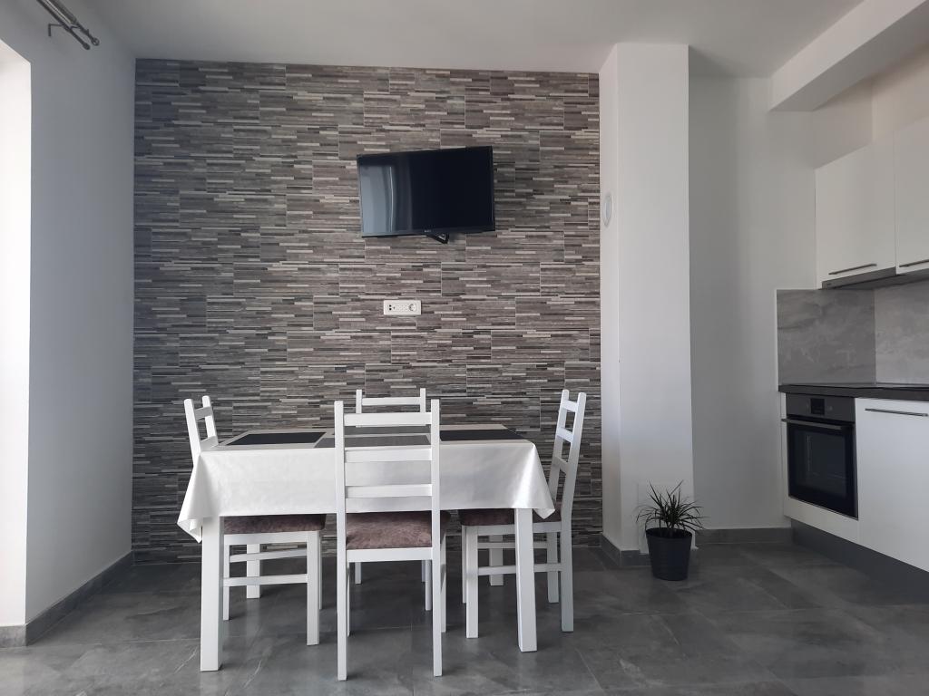 Mieszkanie jest przestronne, pełne światła niewidocznego na zdjęciach i nieskazitelnie czyste. Jest w pełni przystosowany dla rodzin z dziećmi. Kuchnia wyposażona w wysokiej jakości naczynia, nową dużą lodówkę co jest nowością, której nie ma na zdjęciu. Dzieci mają do dyspozycji obszerne i wygodne łóżko wielkości łoża małżeńskiego, które w rozłożonej pozycji nie powoduje braku miejsca w kuchni / jadalni. Duży taras na świeżym powietrzu wychodzi na morze, które jest oddalone o około 30 metrów. Pomiędzy tarasem a morzem jest podwórko i kolejny dom. Zadaszony taras doskonale nadaje się na poranne i wieczorne godziny na zewnątrz. Gospodarze to niezwykle pomocni ludzie, dla których gość jest naprawdę ważny. Są zawsze do Twojej dyspozycji, we wszystkim, czego potrzebujesz. Naprawdę za każdą rekomendację, szczególnie teraz w czasie korony. Jeśli chcesz spokoju i prawie własnej prywatnej plaży, hit.