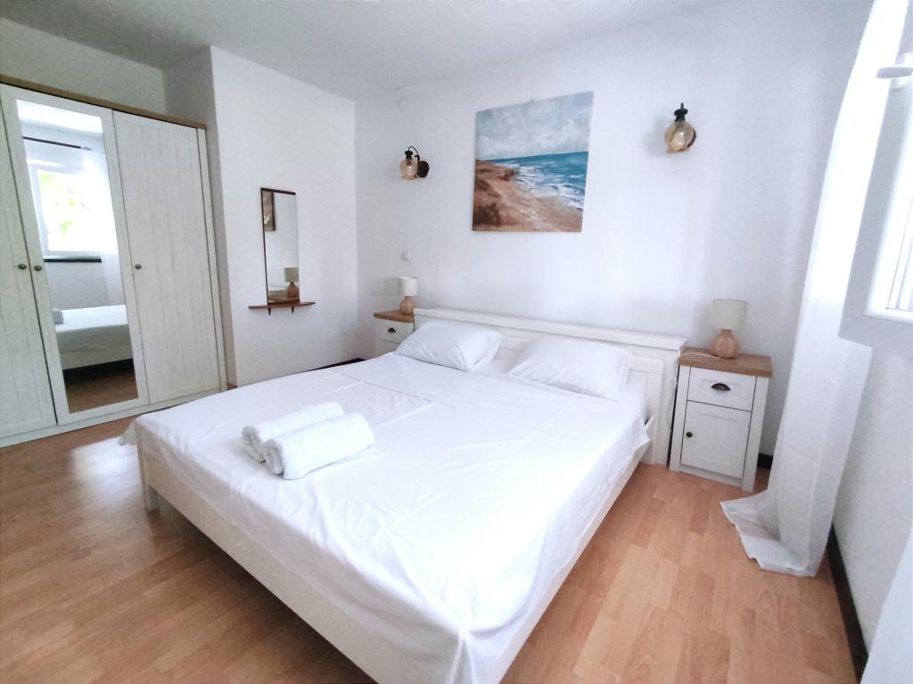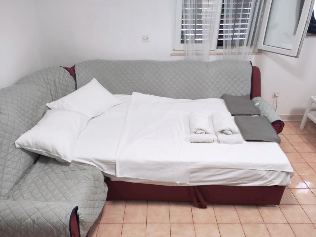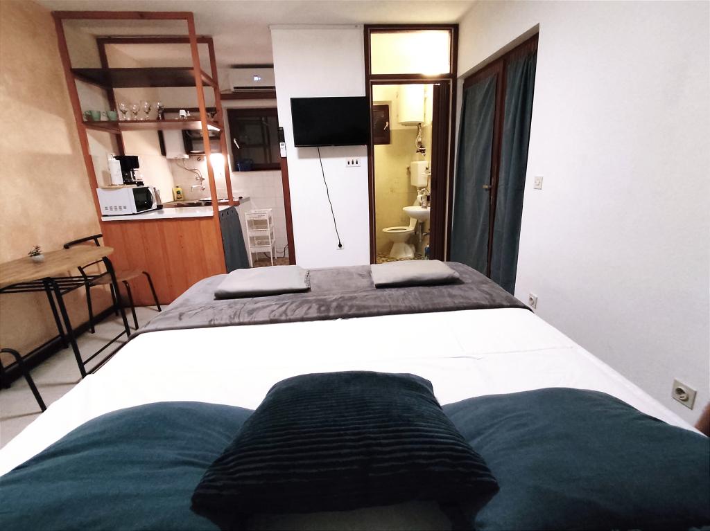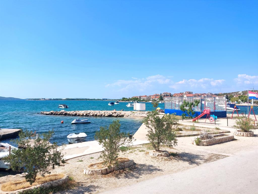 Ładny i wystarczająco wyposażony apartament na parterze. Do dyspozycji Gości jest klimatyzacja, pralka, wentylator i duża lodówka. Przed domem znajduje się przyjemny zacieniony kącik wypoczynkowy, a kamienista plaża z wygodnym wejściem do morza znajduje się około 100 m od apartamentu. W pobliżu znajduje się sklep i restauracja w przyzwoitych cenach. Cicha okolica, parking tuż przy domu w cieniu. Szybenik oddalony jest o około 10 minut jazdy samochodem. Właściciel jest miły, można bez problemu porozumieć się po angielsku.