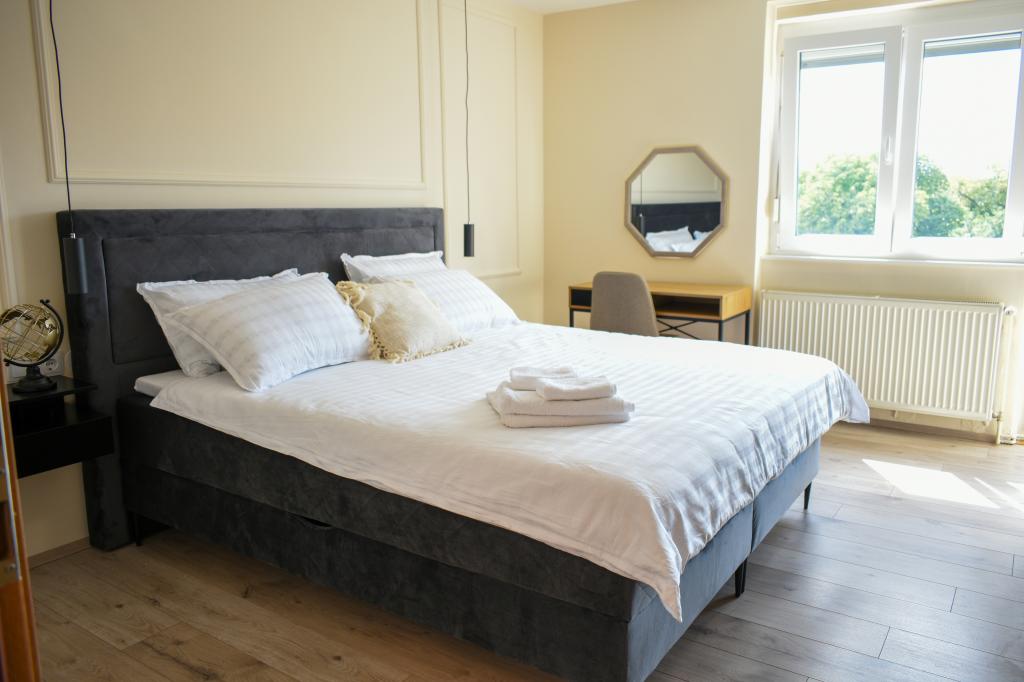 APARTAMENT LUX (70m2) SAMODZIELNE ZAMELDOWANIE (samodzielne wejście i wyjście z apartamentu za pomocą książki kodowej) Wynajem na cały dzień lub dłuższy pobyt (może być również dla firm) Nowo wyremontowany apartament w samym centrum Čakovca z 2 dużymi sypialniami ze sprężyną skrzynkową łóżkami i salonem z kanapą na rozkładanej sofie, łącznie dla 6 osób. Mieszkanie posiada w pełni wyposażoną kuchnię, pokój z kabiną prysznicową i pralką. W mieszkaniu znajduje się również komórka lokatorska, zwłaszcza w piwnicy. *Uwaga: Mieszkanie znajduje się na 4 piętrze bez windy, dlatego nie jest przystosowane dla osób z ograniczeniami ruchowymi.