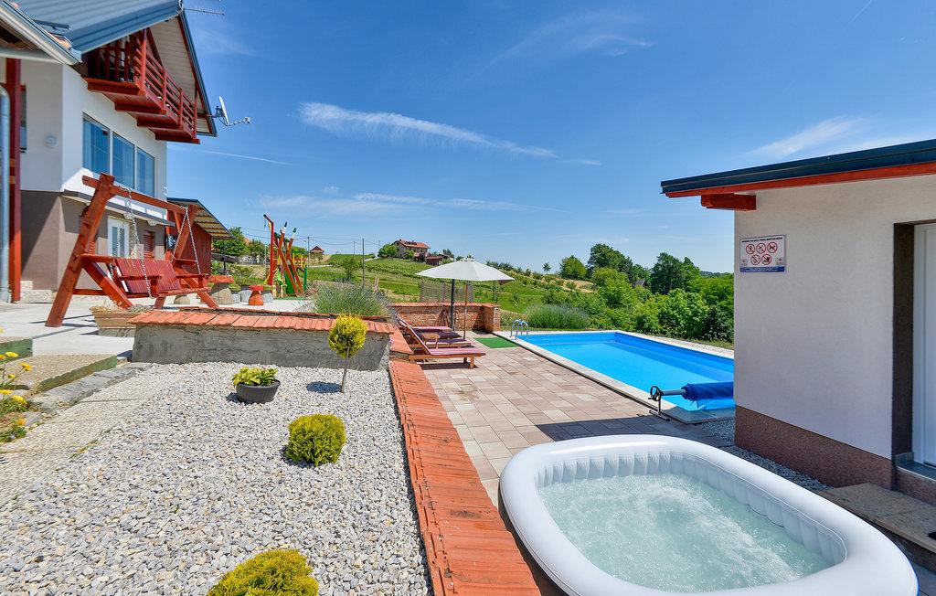 Dom wakacyjny położony jest w pagórkowatej części Međimurje, oazy spokoju, ciszy i nietkniętej przyrody. Piękny widok na przyrodę i zieleń, czyste powietrze przy jednoczesnym korzystaniu z basenu 8x4 m z miejscem do opalania, jacuzzi, sauną na terenie obiektu, placem zabaw dla dzieci, tyrolką, wiszącą kręgielnią, rzutkami elektronicznymi, stawem z możliwością wędkowania sportowego na własna działka, grill na świeżym powietrzu i grill na terenie półzamkniętym. Możliwość korzystania z rowerów sportowych - pobliska trasa rowerowa o długości 20 kilometrów