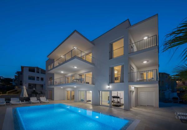 Opłata jest wliczone w cenę.Villa Milla jest nowoczesna i nowocześnie wyposażona. Wszystkie pokoje są klimatyzowane, aw chłodniejszych miesiącach instalowane jest ogrzewanie podłogowe. Oprócz przyjemnego komfortu wszystkich pokoi, roztacza się wspaniały widok na morze i wyspy. Okna i przesuwane drzwi balkonowe są świetne i dają poczucie swobody. W tym samym czasie każde mieszkanie jest osobne i kameralne, bez możliwości ciekawych widoków. Dla naszych gości jest także duży basen o pow. 4m x 9m z dużą ilością kąpieli słonecznych i rozrywki. W obiekcie tuż obok basenu znajduje się siłownia z nowoczesnym sprzętem treningowym. Pierwsza plaża to 80 m linii lotniczych od nas. W bezpośrednim sąsiedztwie można wynająć, skuter, rower, łódź lub zorganizować wycieczki na wyspy, park narodowy Krka itp. Villa Milla to odpowiednie miejsce na relaks i odpoczynek