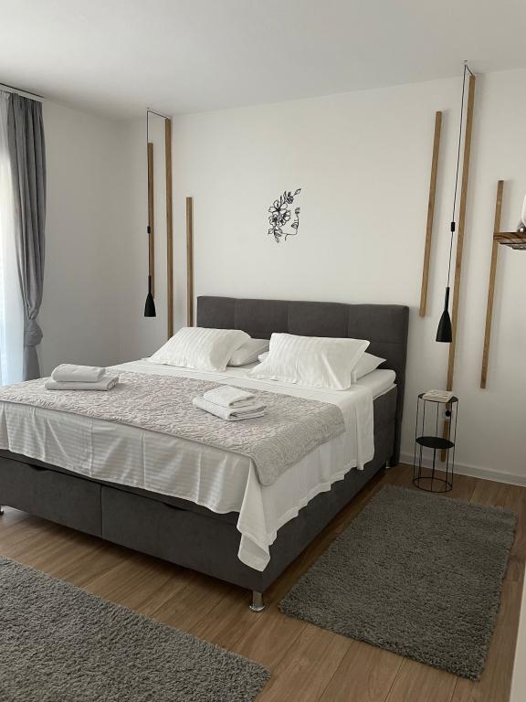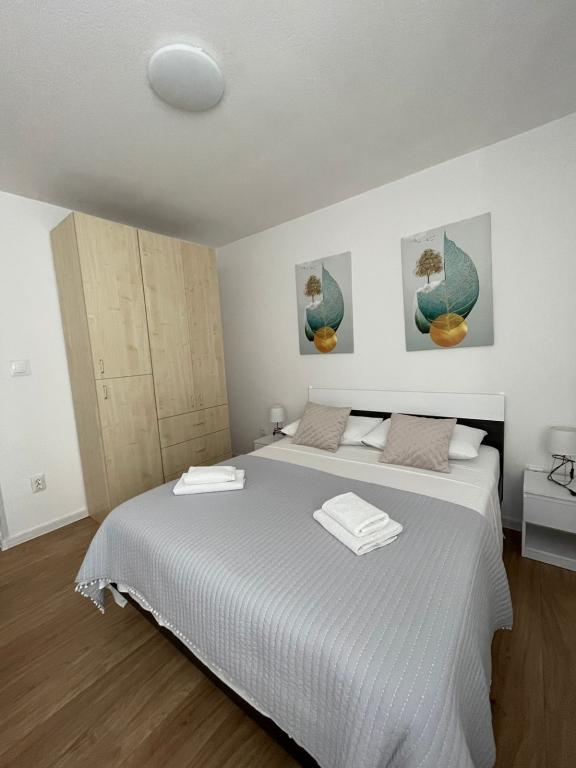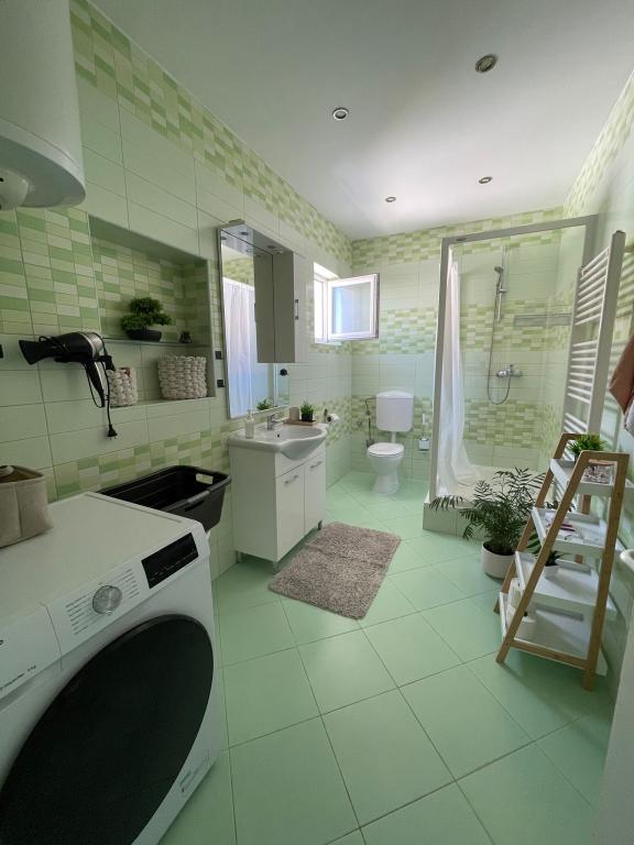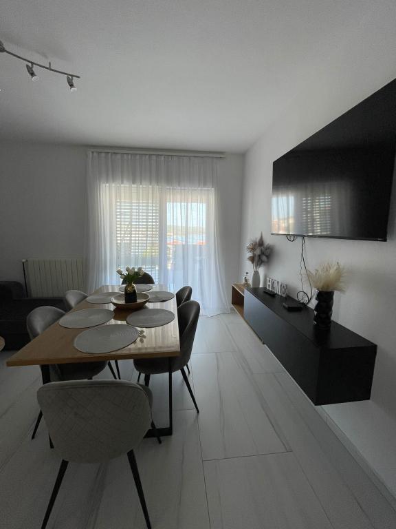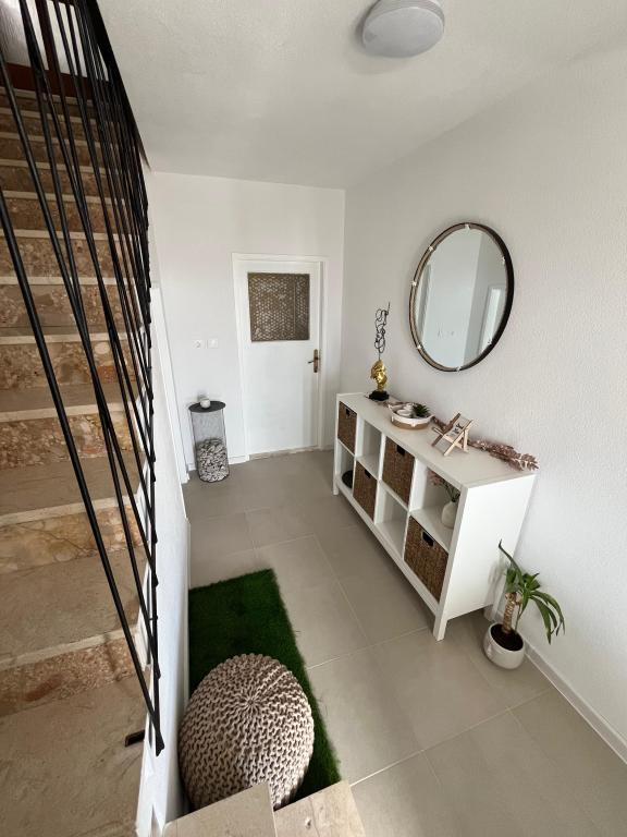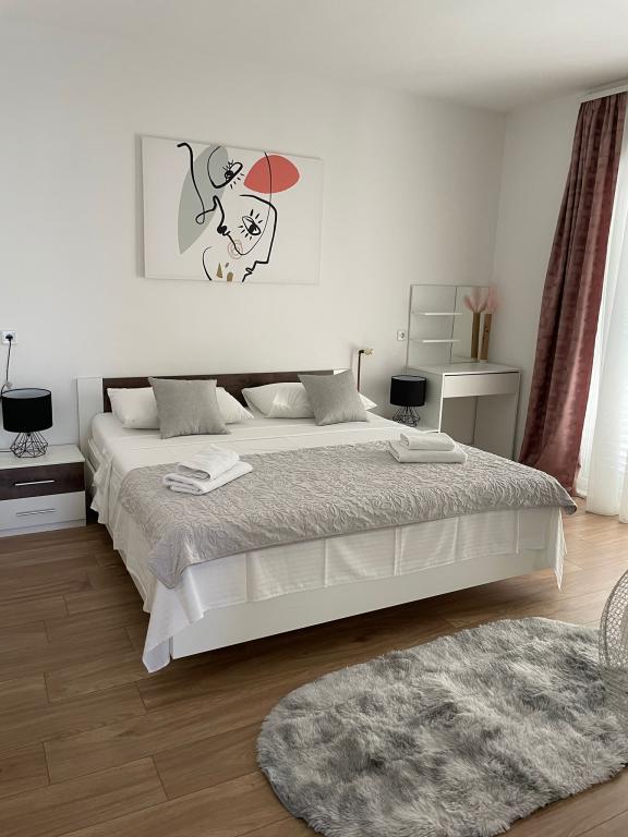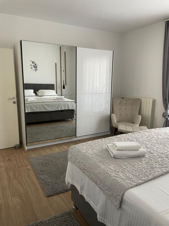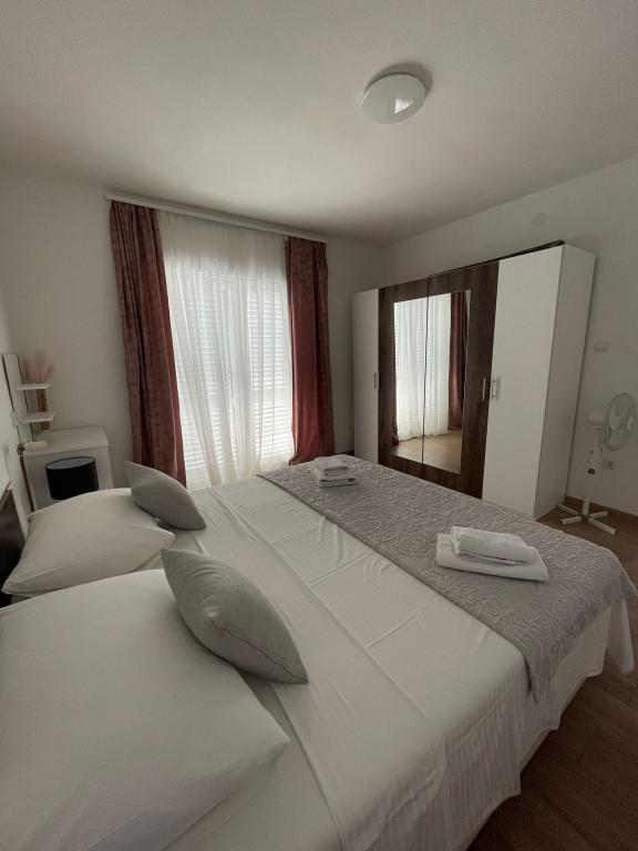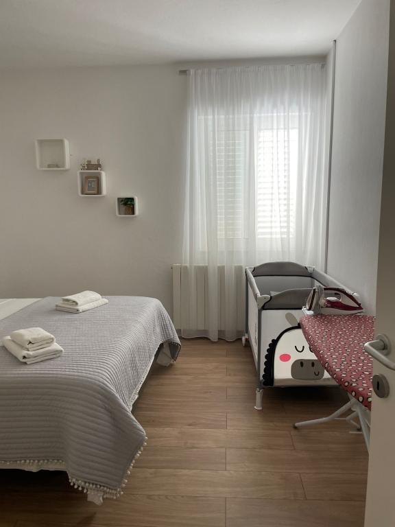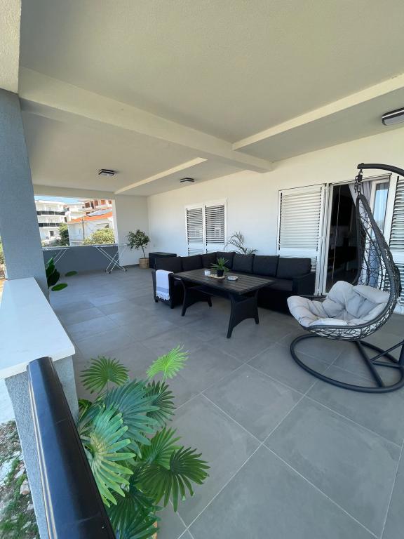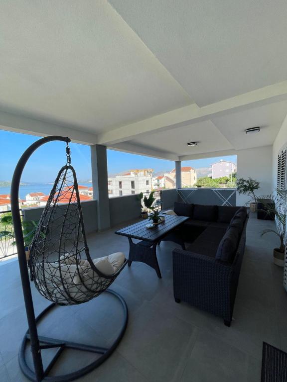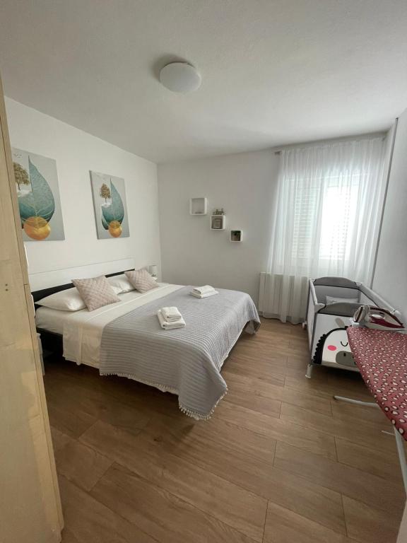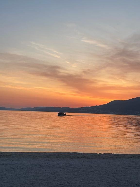 Apartament Agnić znajduje się na wyspie Čiovo w Okrug Gornji.Powierzchnia mieszkania wynosi 110 m2.Znajduje się na pierwszym piętrze domu rodzinnego z pięknym widokiem na morze.Apartament jest odpowiedni dla rodzin z dziećmi. Plaże, pobliskie kawiarnie i restauracje oddalone są o 200 m. Znajduje się 5 minut spacerem od centrum i najbliższych sklepów, 4 km od Trogiru i starego miasta, 12 km od lotniska w Splicie. Pojemność kwatery wynosi 6 osób.Posiada 3 sypialnie, 1 łazienkę, kuchnię z pokojem dziennym, balkon, bezpłatny bezprzewodowy dostęp do Internetu, klimatyzację i bezpłatny parking.