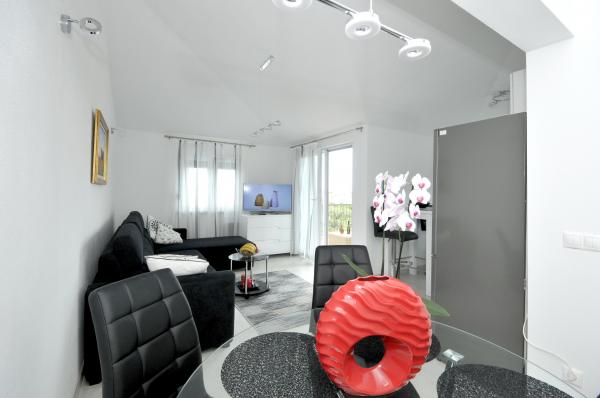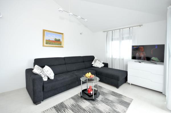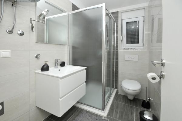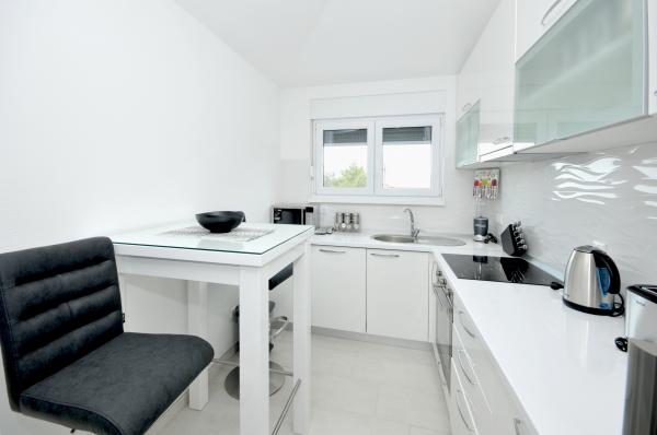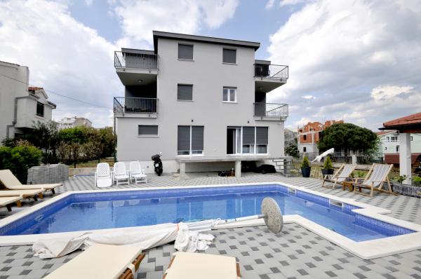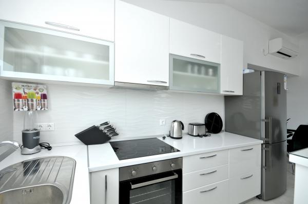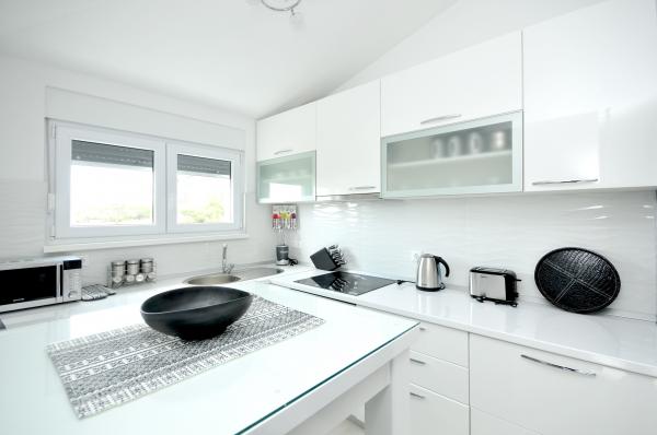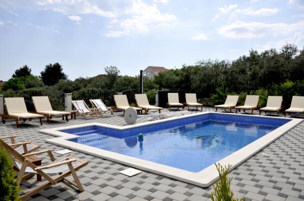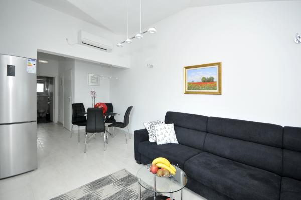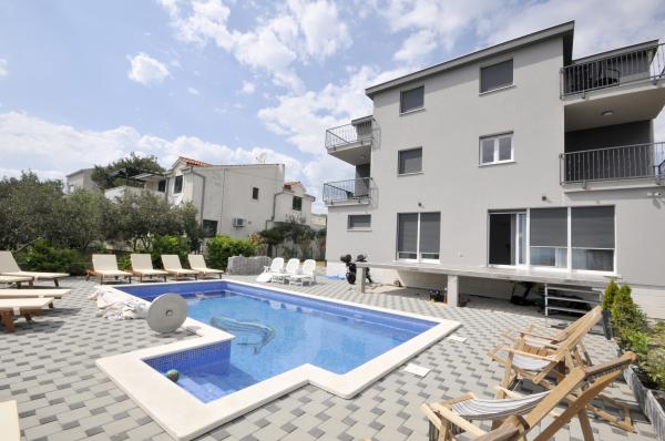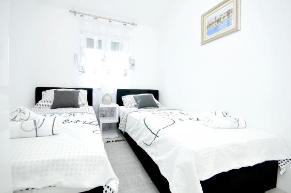 Nowy, nowocześnie urządzony apartament z 2 sypialniami i basenem, położony w południowej części wyspy Ciovo. z pięknym widokiem na okoliczne wyspy: Brač, Hvar i Šolta. Posiada wszystkie udogodnienia, aby Twoje wakacje były tak przyjemne i czuć się jak w domu. Położony przy cichej ulicy, tylko 350 m od najpiękniejszych plaż żwirowych na wyspie. Blisko sklepów i restauracji z najwyższej jakości lokalnymi specjałami. 4 km od starego miasta Trogir perły dziedzictwa UNESCO. Nowy, nieużywany apartament o powierzchni 50m2, maksymalnie funkcjonalnie i estetycznie wykończony. Wyposażony we wszystkie udogodnienia zapewniające komfortowy pobyt. Prywatny parking, korzystanie z basenu i grilla są do Państwa dyspozycji dla naszych gości. 300 m od plaży, centrum nurkowania Trogir i park wodny.