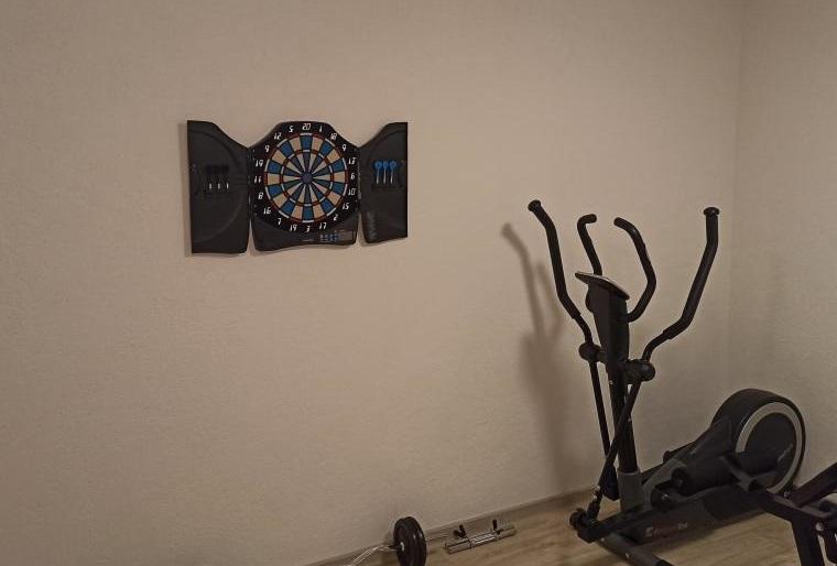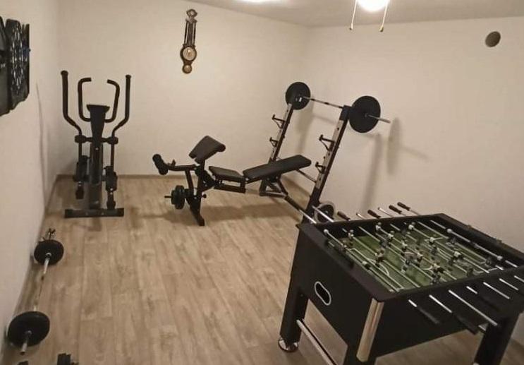 W cenie pobytu znajduje się sala rozrywki i fitness w piwnicy, wyposażona w sprzęt do ćwiczeń, orbitrek, piłkarzyki, rzutki i rower - idealne miejsce do wypoczynku i rodzinnej zabawy.