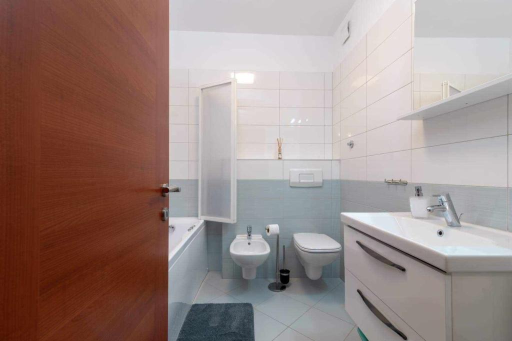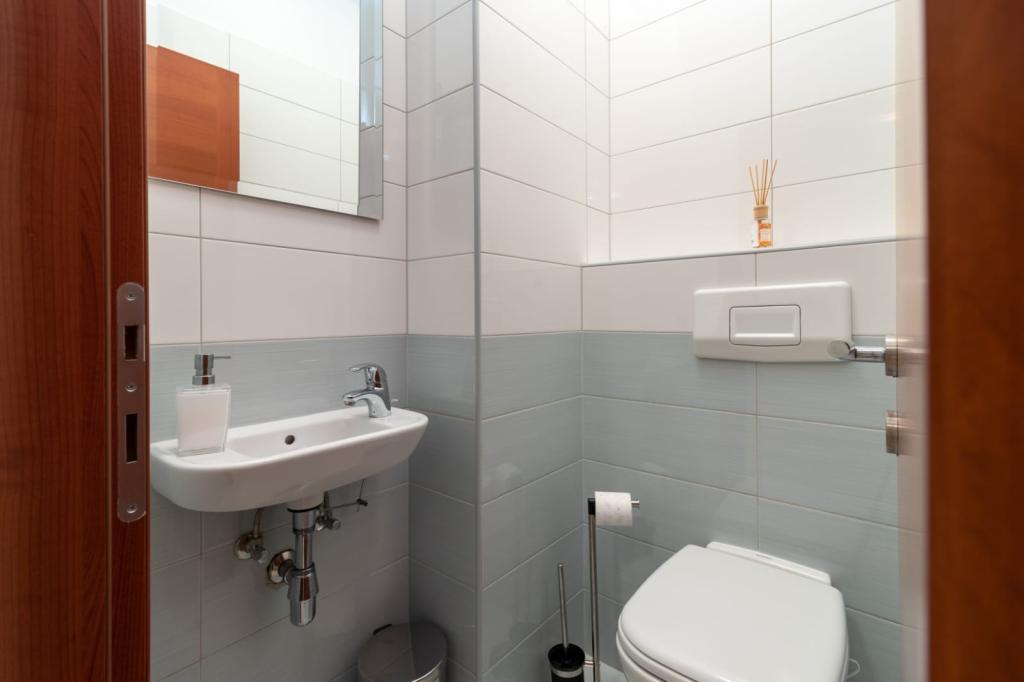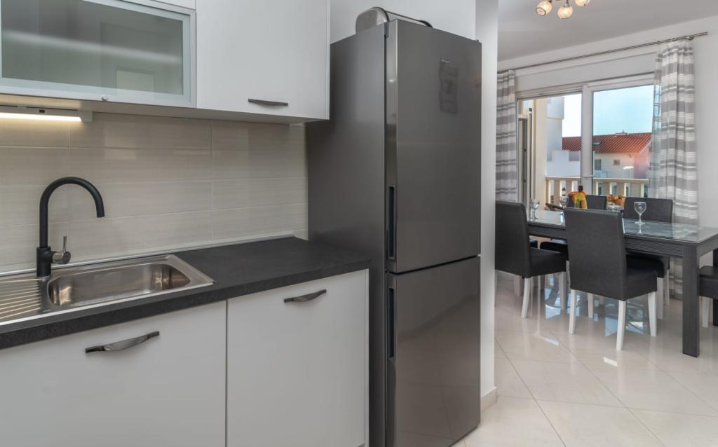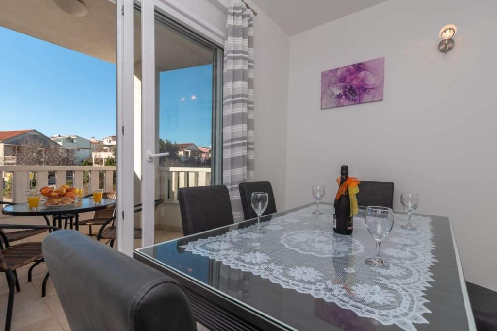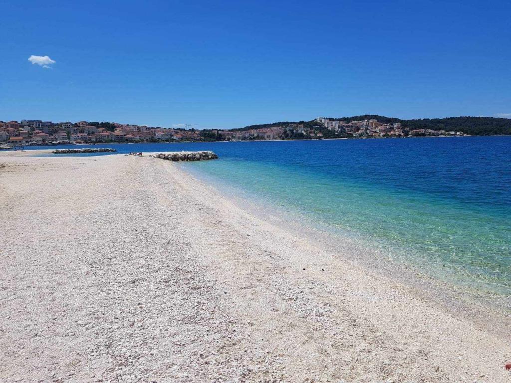 Apartament znajduje się na wyspie Čiovo, w spokojnej zatoce Okrug Gornji – Rastići, idealnej na rodzinne wakacje. Znajduje się 200 m od kamienistych plaż i 400 m od piaszczystych, a słynna plaża Copacabana oddalona jest o 1,6 km. Miasto Trogir, wpisane na Listę Światowego Dziedzictwa UNESCO, znajduje się zaledwie kilka kilometrów od apartamentu. Apartament znajduje się na pierwszym piętrze, ma powierzchnię 72,5 m² z 7-metrowym balkonem i może pomieścić do 6 osób (w razie potrzeby 7), w tym łóżeczko dziecięce. Do dyspozycji Gości jest klimatyzacja, bezpłatne Wi-Fi oraz prywatne miejsce parkingowe. Szczególną cechą apartamentu jest centrum fitness i pokój gier w piwnicy, wliczone w cenę, wyposażone w sprzęt do ćwiczeń, orbitrek, piłkarzyki, rzutki i rower – idealne do rekreacji i rodzinnej zabawy.