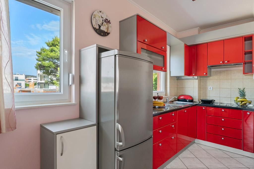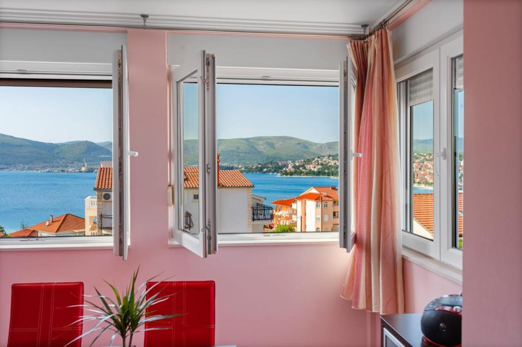 Apartament Summer memories to przestronny i nowocześnie urządzony apartament na 2 piętrze budynku z widokiem na morze, 15 minut samochodem od międzynarodowego lotniska. Apartament położony jest w pobliżu pięknych kamienistych plaż, które rozciągają się aż do starego miasta Trogir. Najbliższa plaża oddalona jest o 4 minuty spacerem. Apartament posiada balkon, na którym można delektować się poranną kawą i widokiem na morze. Posiada dwie sypialnie, w tym jedną z możliwością połączenia dwóch łóżek w jedno łóżko podwójne. W apartamencie znajdują się 2 klimatyzatory. Przed budynkiem znajduje się bezpieczne miejsce parkingowe dla Twojego pojazdu. W pobliżu znajdują się: supermarket, kawiarnie i restauracje na plaży.