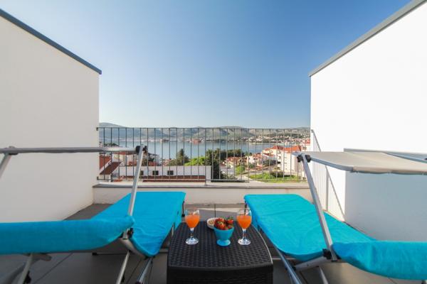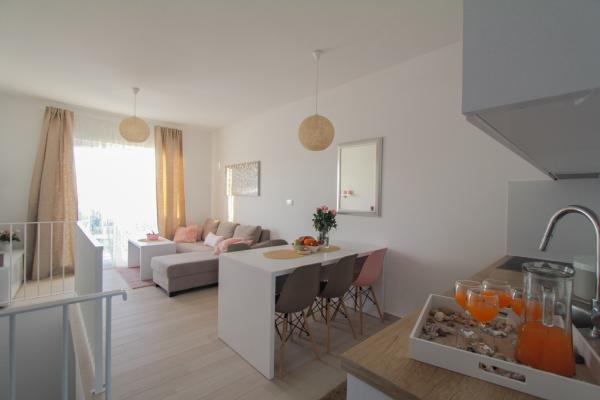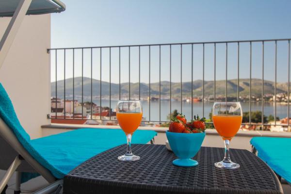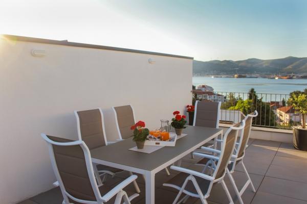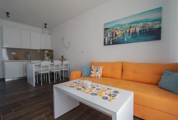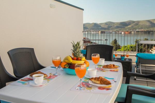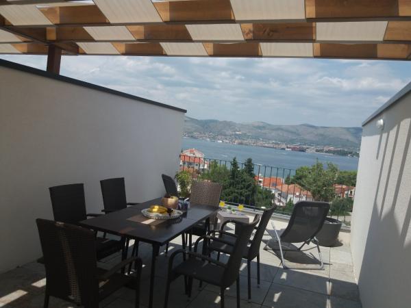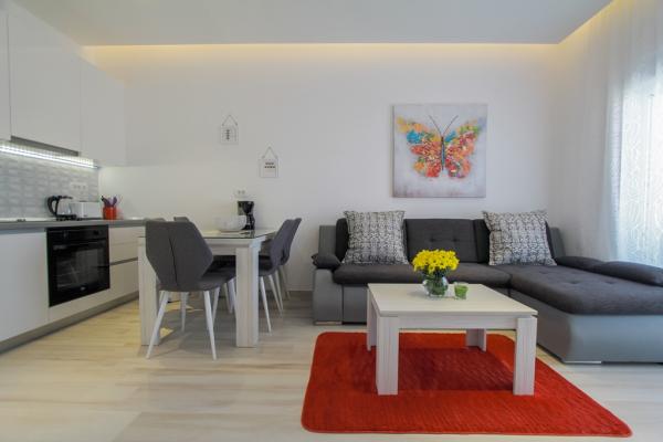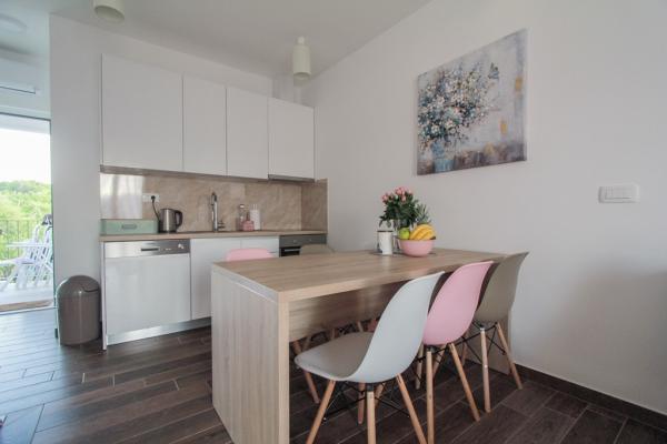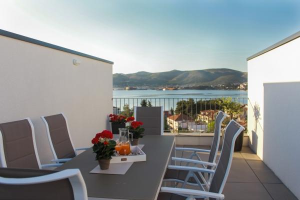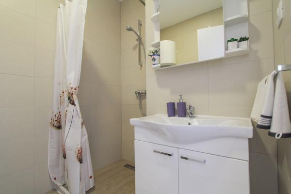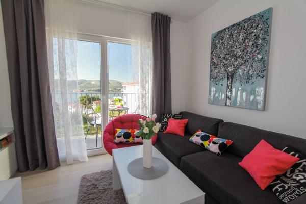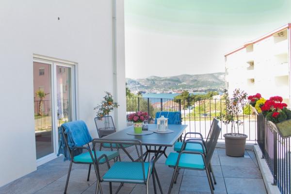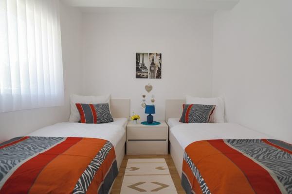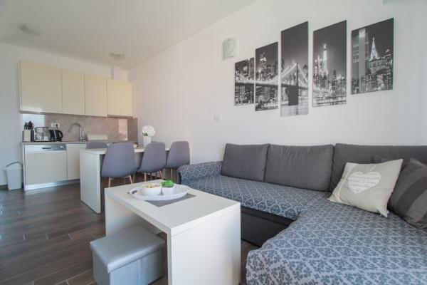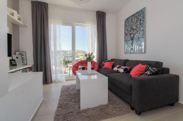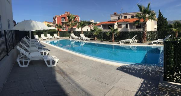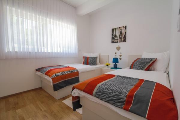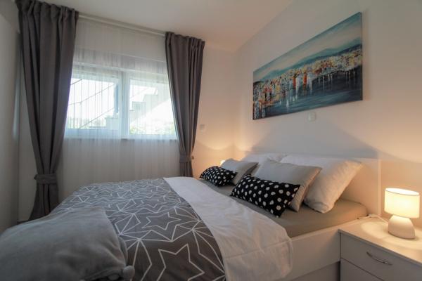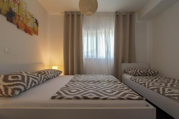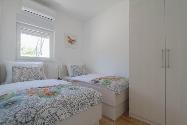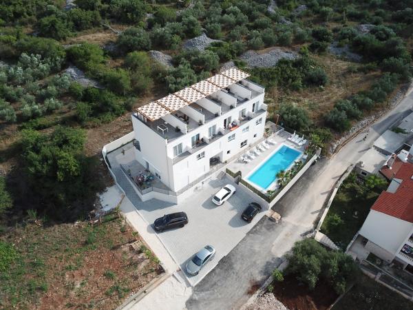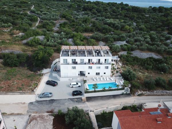Nowe apartamenty z dwoma sypialniami znajdują się w spokojnej części Okrug Gornji, zaledwie 5 minut spacerem od plaży w zatoce Okruška i 10 minut spacerem od plaży Tatinje. , Apartamenty są nowocześnie urządzone i dysponują w pełni wyposażoną kuchnią. Sześciopiętrowe apartamenty posiadają własny taras na dachu o powierzchni 25 m2 z pięknym widokiem na morze, a także grill i zestaw do siedzenia. Dwa apartamenty na parterze mają również taras z widokiem na morze, grill i meble do siedzenia. Przed budynkiem znajduje się basen ze słoną wodą o powierzchni 50 m2. W maju i październiku woda w basenie będzie ogrzewana. Beplatan wifi. Na podwórku budynku znajduje się jedno miejsce parkingowe dla każdego mieszkania.