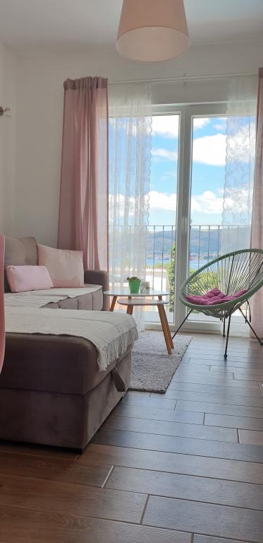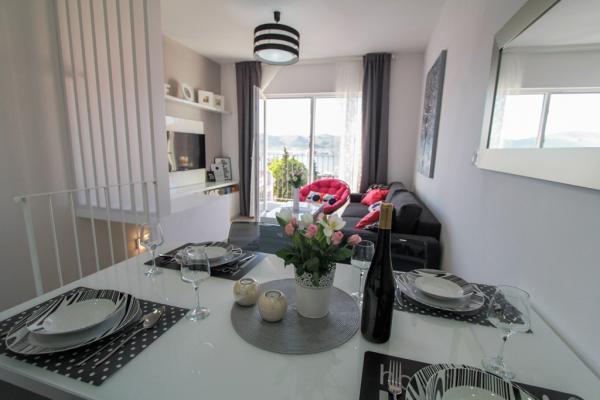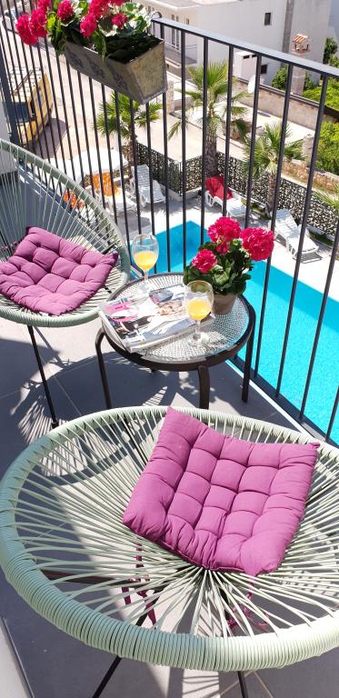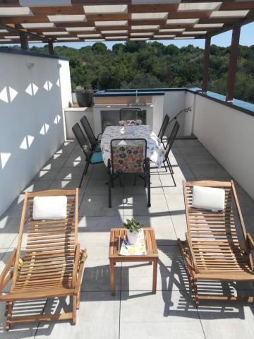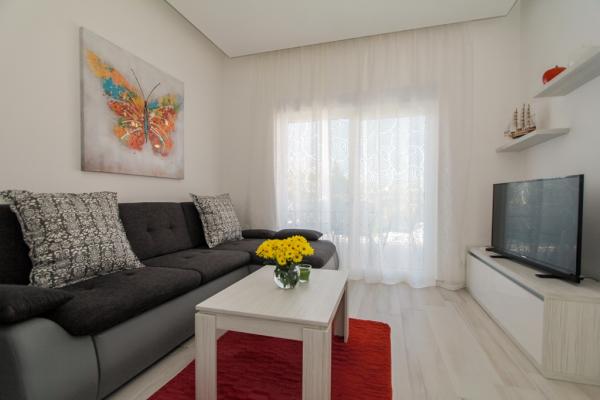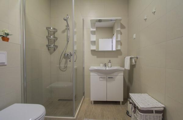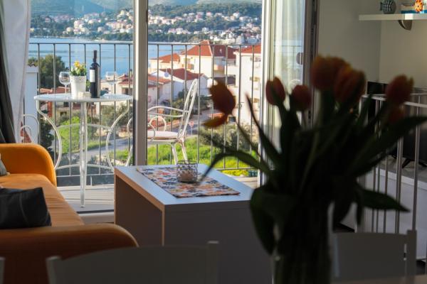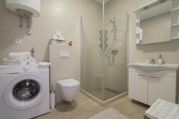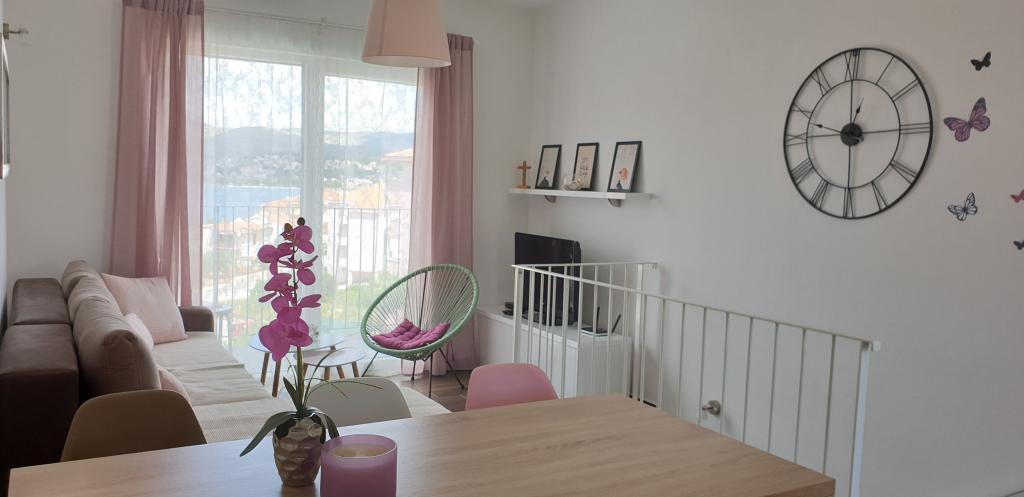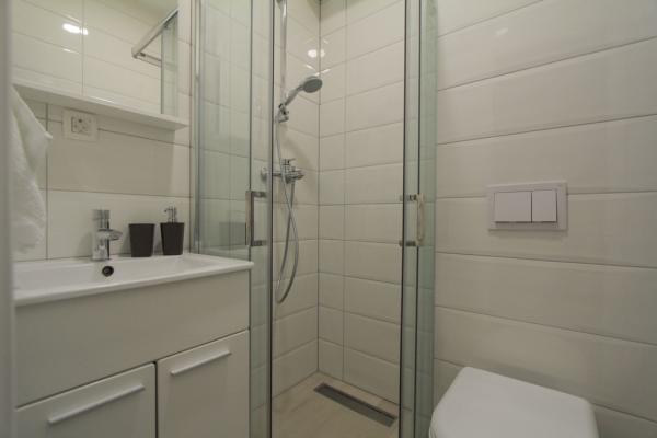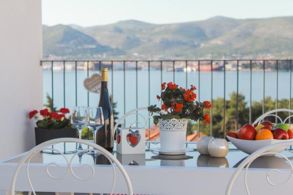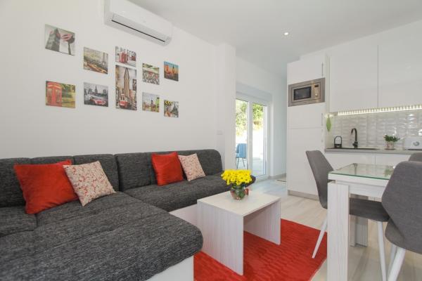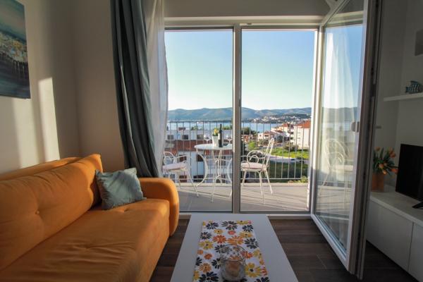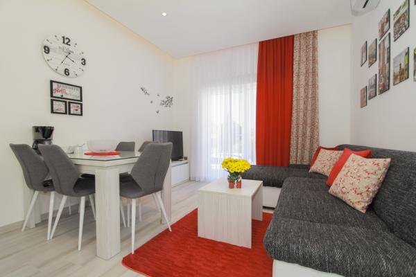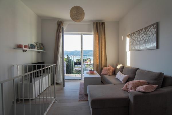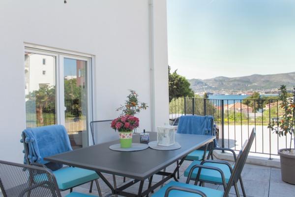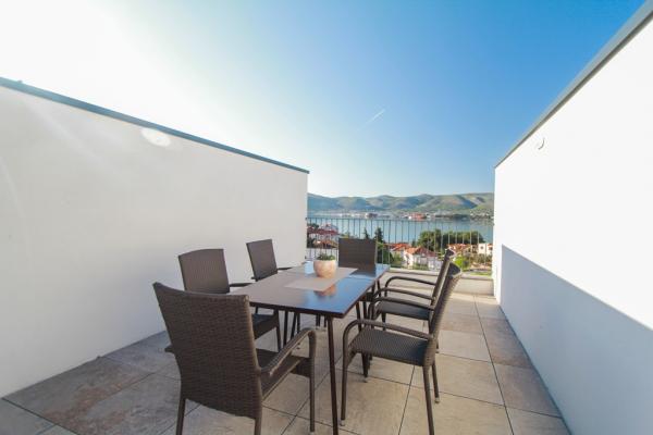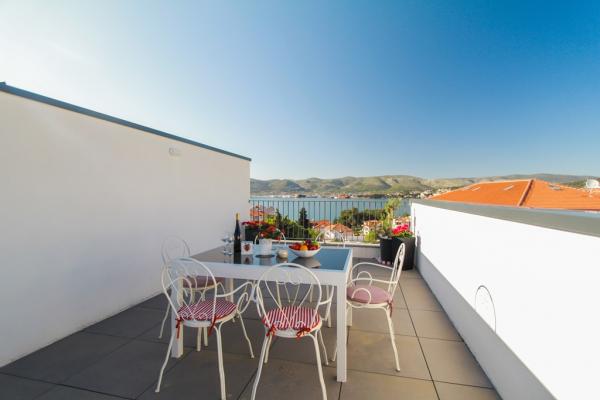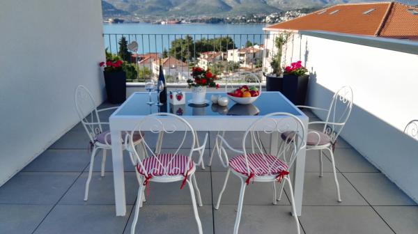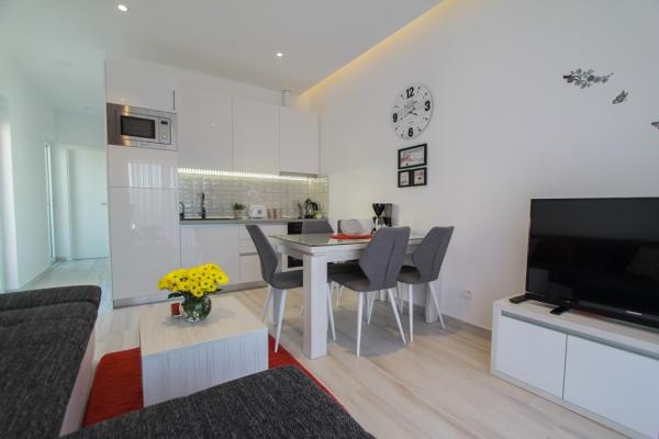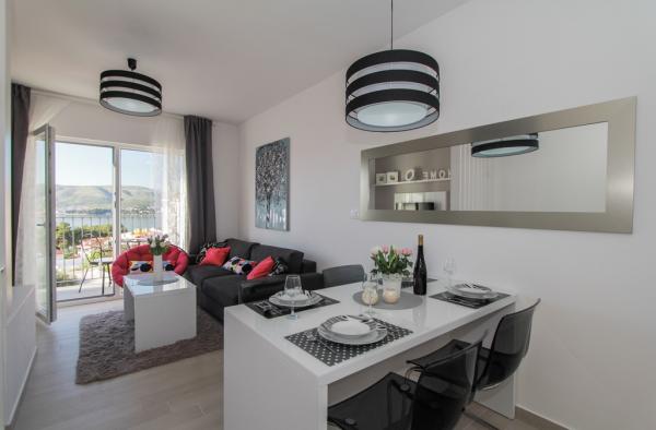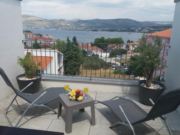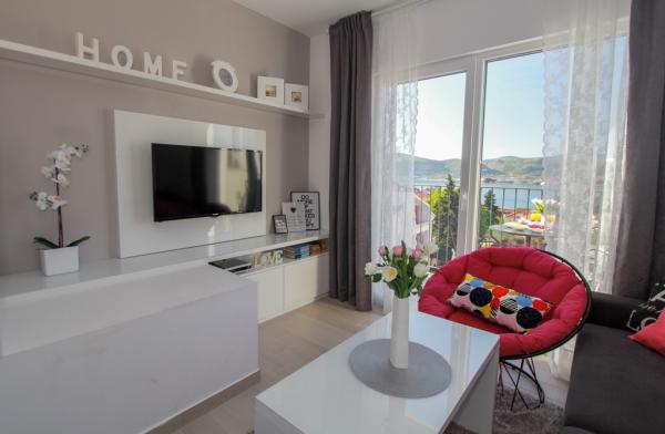 Nowe apartamenty z dwoma sypialniami znajdują się w spokojnej części Okrug Gornji, zaledwie 5 minut spacerem od plaży w zatoce Okruška i 10 minut spacerem od plaży Tatinje. , Apartamenty są nowocześnie urządzone i dysponują w pełni wyposażoną kuchnią. Sześciopiętrowe apartamenty posiadają własny taras na dachu o powierzchni 25 m2 z pięknym widokiem na morze, a także grill i zestaw do siedzenia. Dwa apartamenty na parterze mają również taras z widokiem na morze, grill i meble do siedzenia. Przed budynkiem znajduje się basen ze słoną wodą o powierzchni 50 m2. W maju i październiku woda w basenie będzie ogrzewana. Beplatan wifi. Na podwórku budynku znajduje się jedno miejsce parkingowe dla każdego mieszkania.