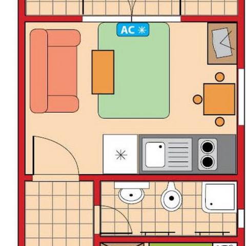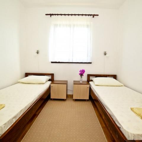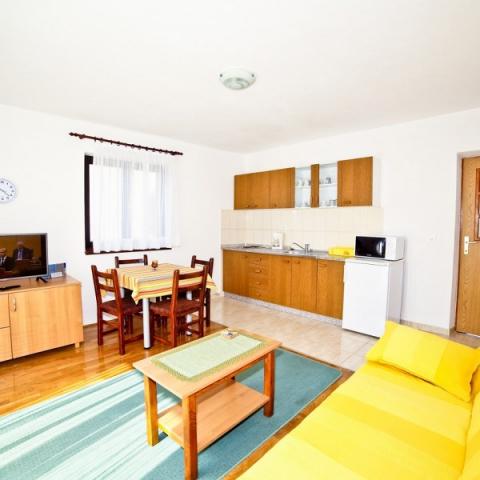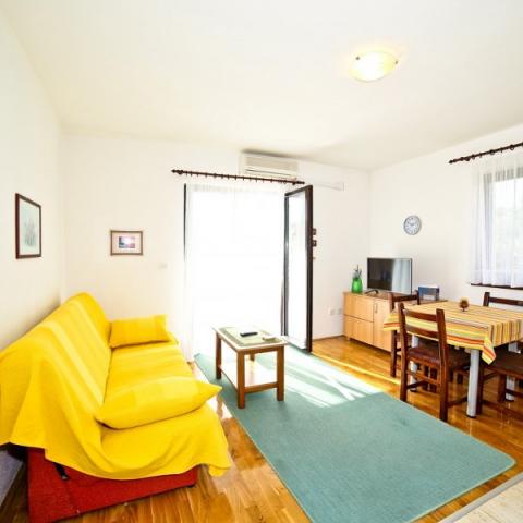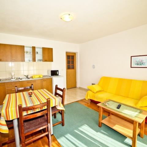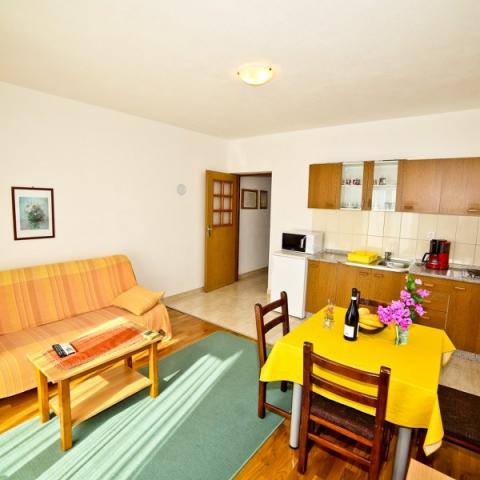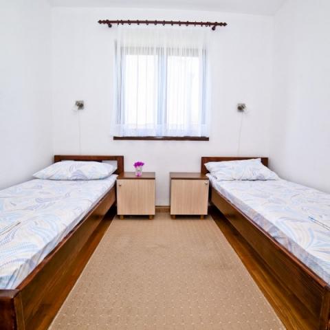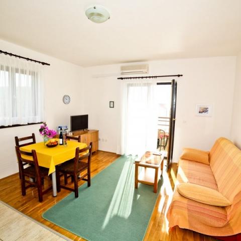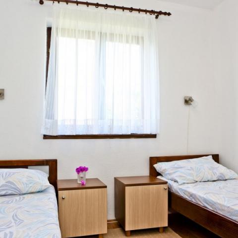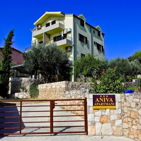 Apartamenty Aniva oferują zakwaterowanie w rodzinnym domu w cichym otoczeniu z prywatnym ogrodem odpowiednim dla dzieci. Znajdujemy się 3, 5 km od Trogiru na wyspie Ciovo, która jest połączona mostem z lądem, w Okrug Gornji, w zatoce Mavarštica, gdzie znajdują się najbliższe żwirowe i kamieniste plaże. Centrum miasta oddalone jest o 500 m, gdzie znajdują się sklepy, poczta, bankomaty, apteka, lekarz i restauracje. Klub nurkowy oddalony jest o 200 m. Zatoka Saldun znajduje się 700 m od hotelu, z dużą piaszczystą plażą, promenadą, restauracjami i kawiarniami, a od zatoki codziennie linią do centrum Trogiru. Apartamenty A1 i A2 znajdują się na pierwszym piętrze z tarasem o powierzchni 12 m2, a apartamenty A3 i A4 znajdują się na drugim piętrze, a balkony o powierzchni 6 m2. Każdy apartament jest maksymalnie dla 4 osób. Goście mogą korzystać ze sprzętu do grillowania ze stołem dla 8 - 10 osób. Zwierzęta nie są akceptowane. Na życzenie oferujemy łóżeczko dziecięce i pralkę.