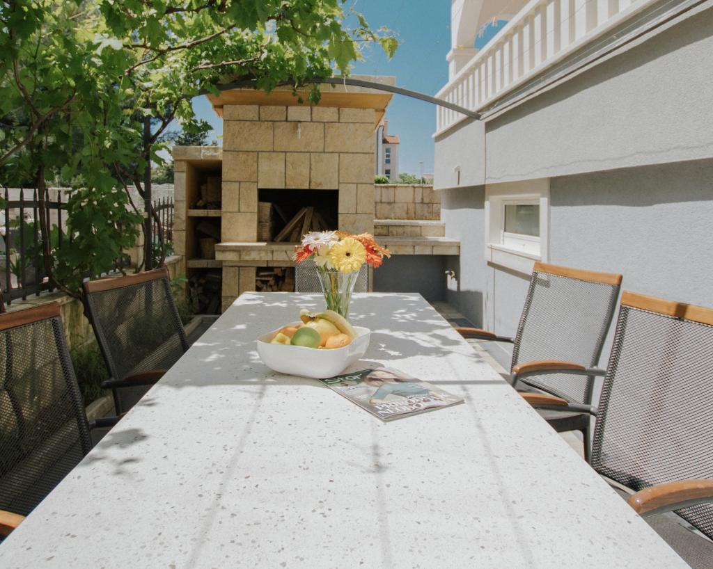 Obiekt BLUE SEA HOUSE znajduje się w Trogirze w żupanii splicko-dalmatyńskiej, w pobliżu plaż Bočic i Mavarstica. Na miejscu dostępny jest bezpłatny prywatny parking. Klimatyzowane jednostki z widokiem na ogród i morze, podłogi wyłożone kafelkami, łazienka, telewizor z płaskim ekranem, bezpłatny bezprzewodowy dostęp do Internetu, szafy, salon, żelazko, pralka, wyposażona kuchnia, lodówka, czajnik, mikrofalówka. BLUE SEA HOUSE dysponuje również ogrodem, sprzętem do grillowania i siłownią. Plaża Copacabana oddalona jest od obiektu o 1,2 km, a przystań w Trogirze – o 5 km. BLUE SEA HOUSE znajduje się 11 km od najbliższego lotniska w Splicie.