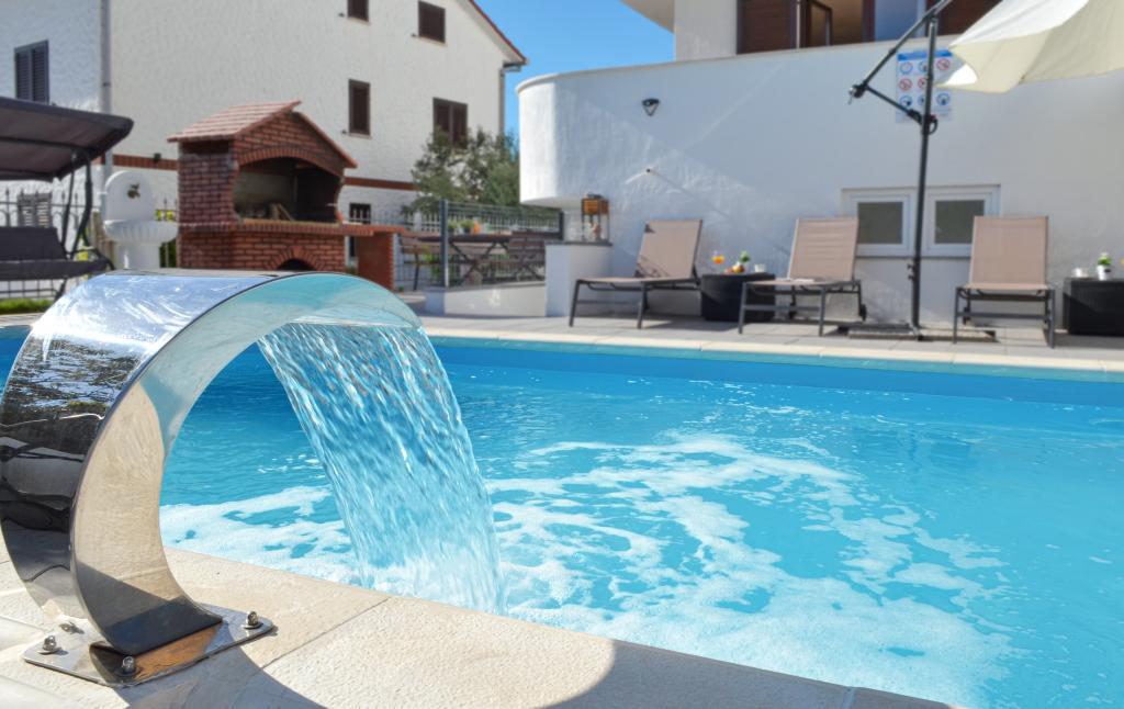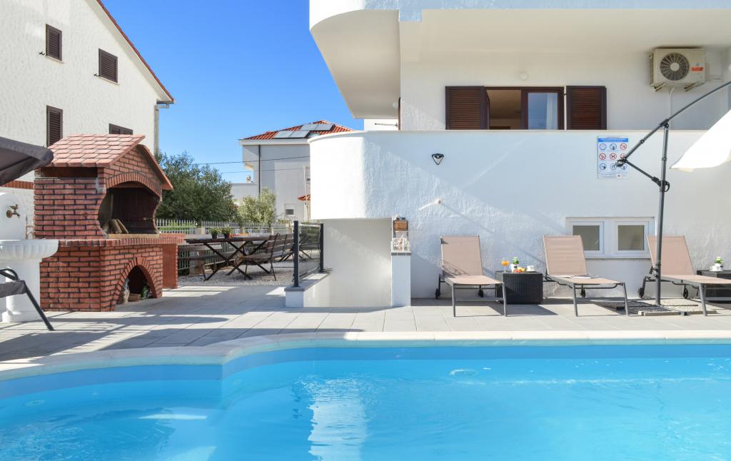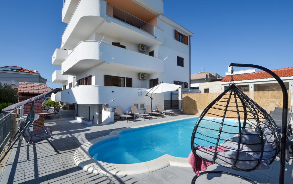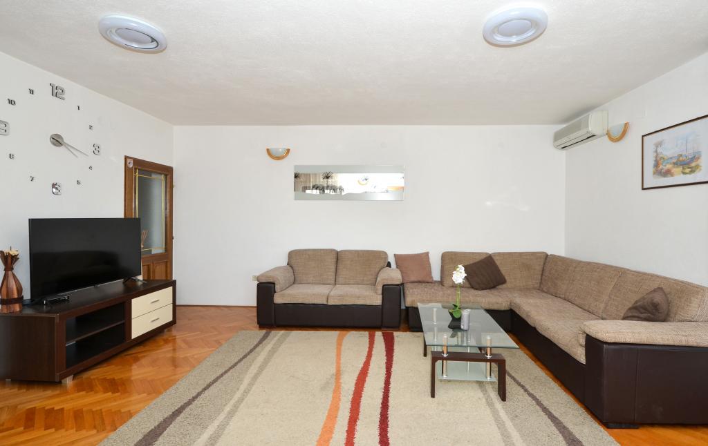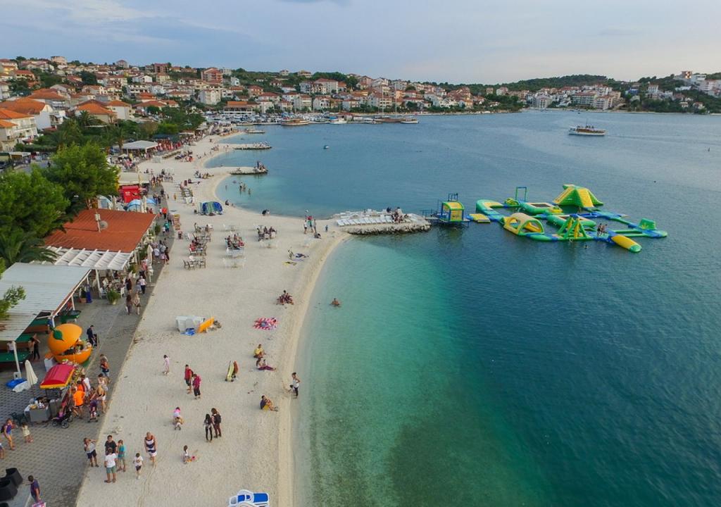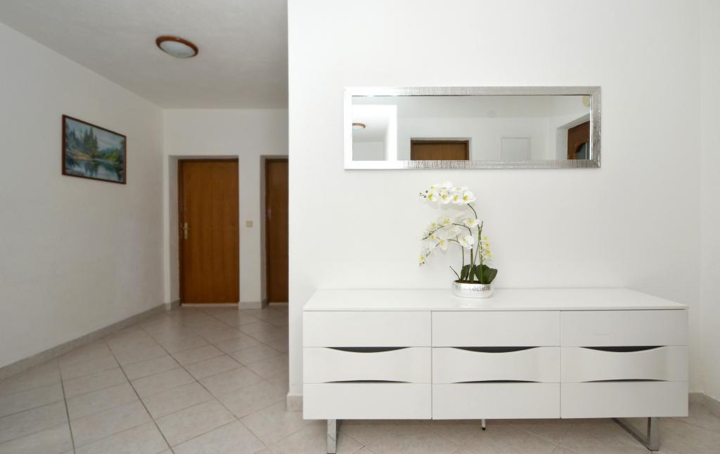 Apartamenty D & D znajdują się w Okrug Gornji, Ciovo. Przestronne i duże apartamenty (200m2): duża kuchnia z pełnym wyposażeniem (zmywarka, ekspres do kawy, mikrofala) oraz jadalnia, salon, trzy sypialnie, dwie toalety z pralką, dwa balkony, basen, leżaki parasol, grill, stół na zewnątrz, miejsce parkingowe, wi-fi, klimatyzacja. Apartamenty przeznaczone są dla 10 osób. Plaża w Okrug Gornji - Okrugska Copacabana ''Zila kucavica 'Okrug, który w miesiącach letnich staje się centrum życia na Riwierze, to dwukilometrowa żwirowa plaża Toc z promenadą. To centrum całodziennych i nocnych imprez – w ciągu dnia wypełnione klientami, a nocą miłośnicy rozrywki i gastronomii. Sklepy, kawiarnie, restauracje, apteka, bankomaty to tylko 200m od mieszkania. Tylko 5 minut jazdy samochodem dzieli Cię od dzielnicy do miasta Trogir, które jest przede wszystkim zabytkiem wielowiekowym. Liczne monografie miasta, jak choćby ta autorstwa Ivo Babicia, pokazują nam, że koneserzy słusznie uważają je za miasto-pomnik, bo w nim można wyraźnie dostrzec wszystkie minione epoki historyczne. Jeśli jesteś miłośnikiem cennej architektury, powinieneś zwrócić szczególną uwagę na pro-klasowe, najbardziej monumentalne dzieło stylu romańsko-gotyckiego w Chorwacji - główny portal kościoła św. Wawrzyńca w Trogirze, nazwany na cześć swego mistrza Radovana. Eksperci twierdzą, że praca ta ma ogromne znaczenie dla całego basenu Adriatyku i można ją porównać z jakimkolwiek europejskim osiągnięciem tego czasu! Płaskorzeźba greckiego boga Kairosa z IV wieku przechowywana w trogirskim klasztorze św. Nikola, który stał się swoistym symbolem Trogiru - jest bogiem szczęśliwej chwili, którą trzeba złapać za kępkę włosów i tym samym złapać szczęśliwą okazję, inaczej zniknie. Chwyć szczęśliwą chwilę i „przeskocz” z Okrugu do Trogiru. Niech Twoje wymarzone wakacje będą w Okrug Gornji w Apartamentach Damir 1 i Damir 2. Czeka