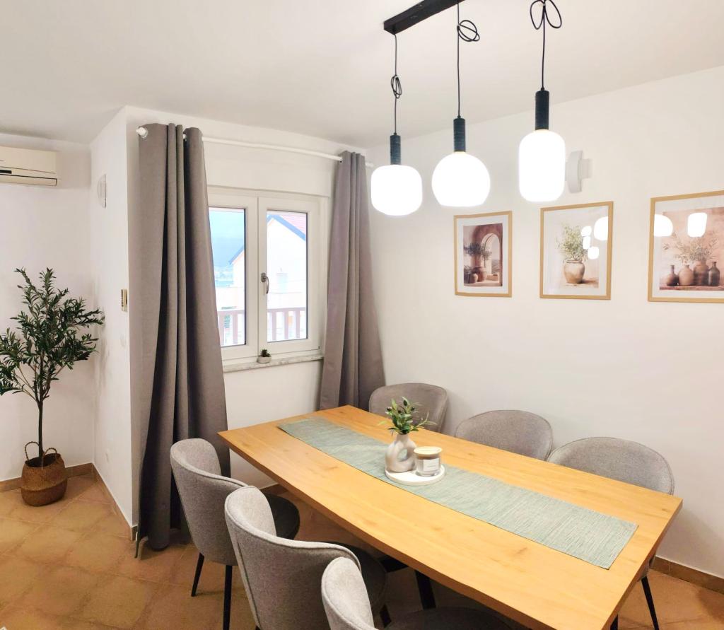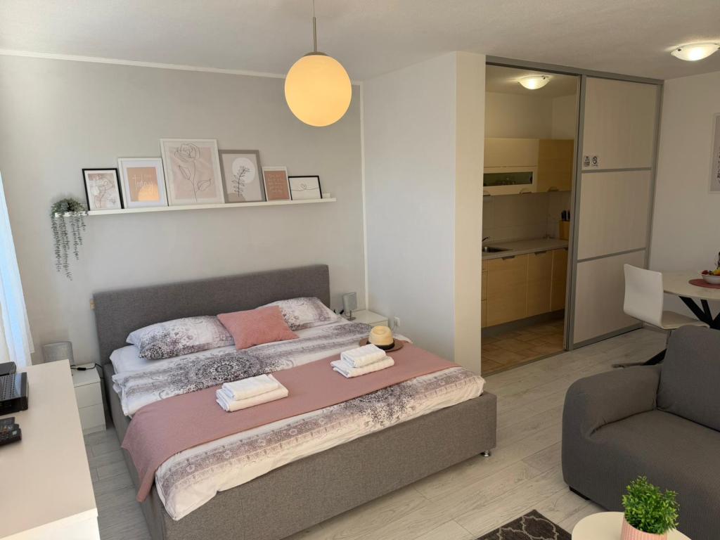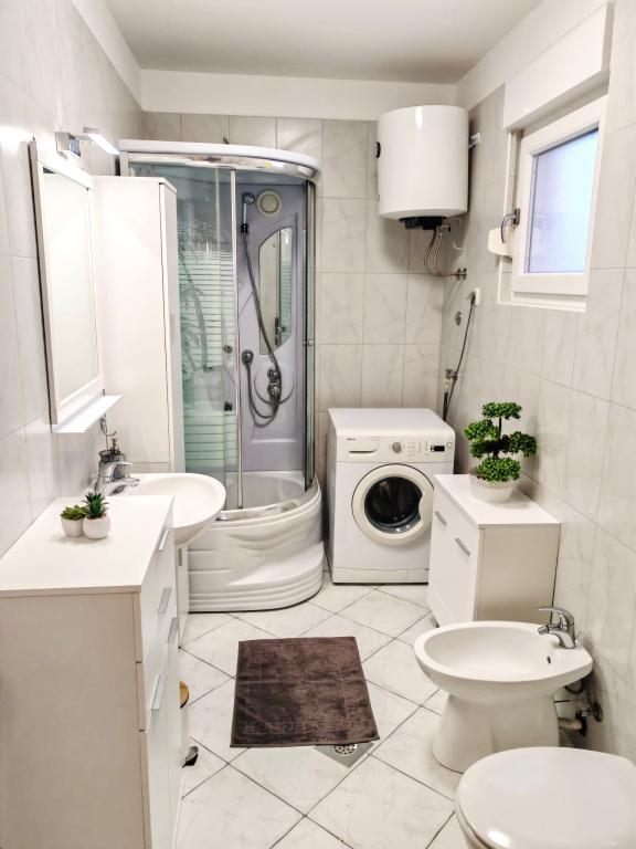 APARTAMENT GLAVICA znajduje się w Okrug Gornji (Put Putik Planikovica 10) Apartament znajduje się 250 metrów od morza. Apartament składa się z 1 sypialni z podwójnym łóżkiem, łazienki z prysznicem, kuchni, klimatyzowanego salonu z rozkładaną kanapą i małego balkonu z widokiem na morze. Mieszkanie ma również miejsce parkingowe nad budynkiem. Apartament GLORIA i apartament MARINA znajdują się w nowoczesnym budynku przy ul. Tudorskiej 34 / A i są 200-300 metrów od głównej plaży w Okrug Gornji. Mają cały sprzęt i treści potrzebne do przyjemnego pobytu i wakacji. Oba apartamenty mają przestronne tarasy z widokiem na morze. Apartamenty mają również miejsce parkingowe przed budynkiem. APARTAMENT DORIS znajduje się przy ulicy Planikovica III 2A, składa się z 2 sypialni, łazienki, salonu i kuchni, tarasu z widokiem na morze i garażu. APARTAMENT CHORWACJI ZNAJDUJE SIĘ W DOBREJ PRZESTRZENI SEGET DONJI I WSZYSTKICH 200 METRÓW WYRÓŻNIONYCH OD MORZA.