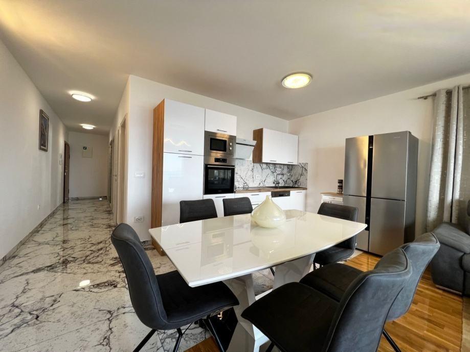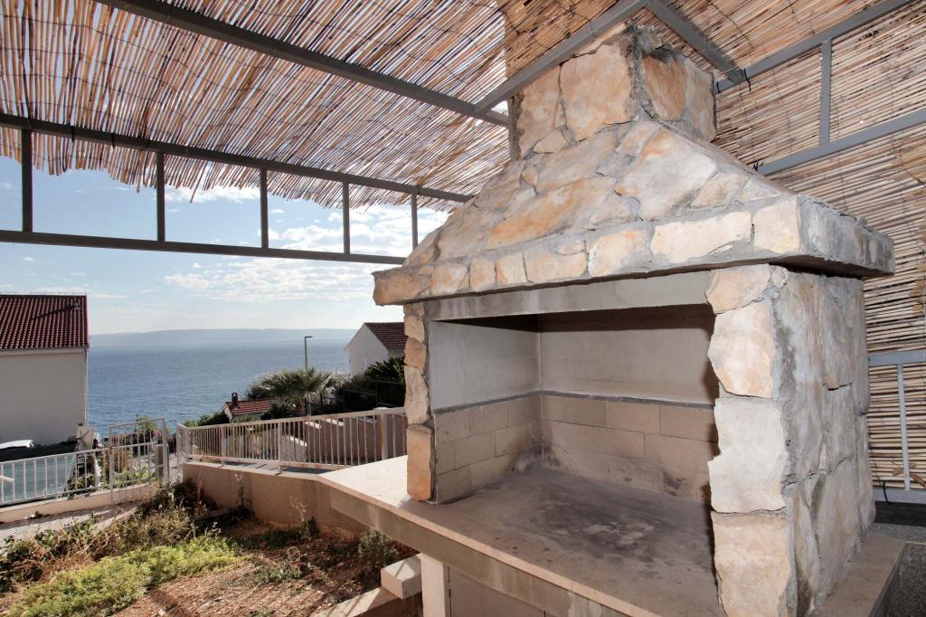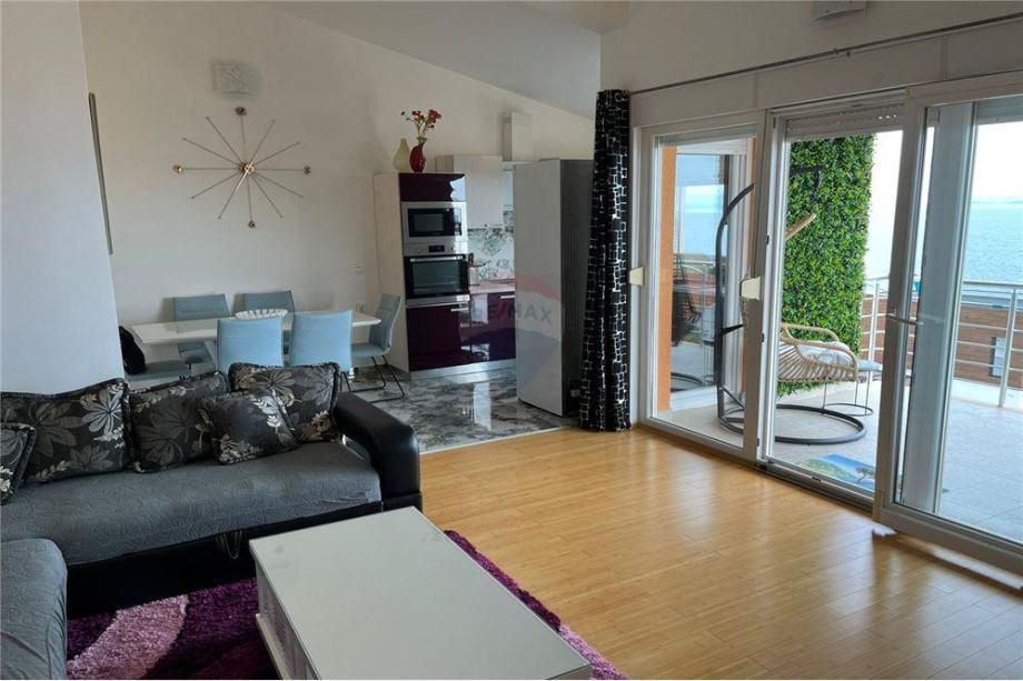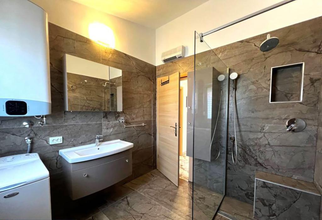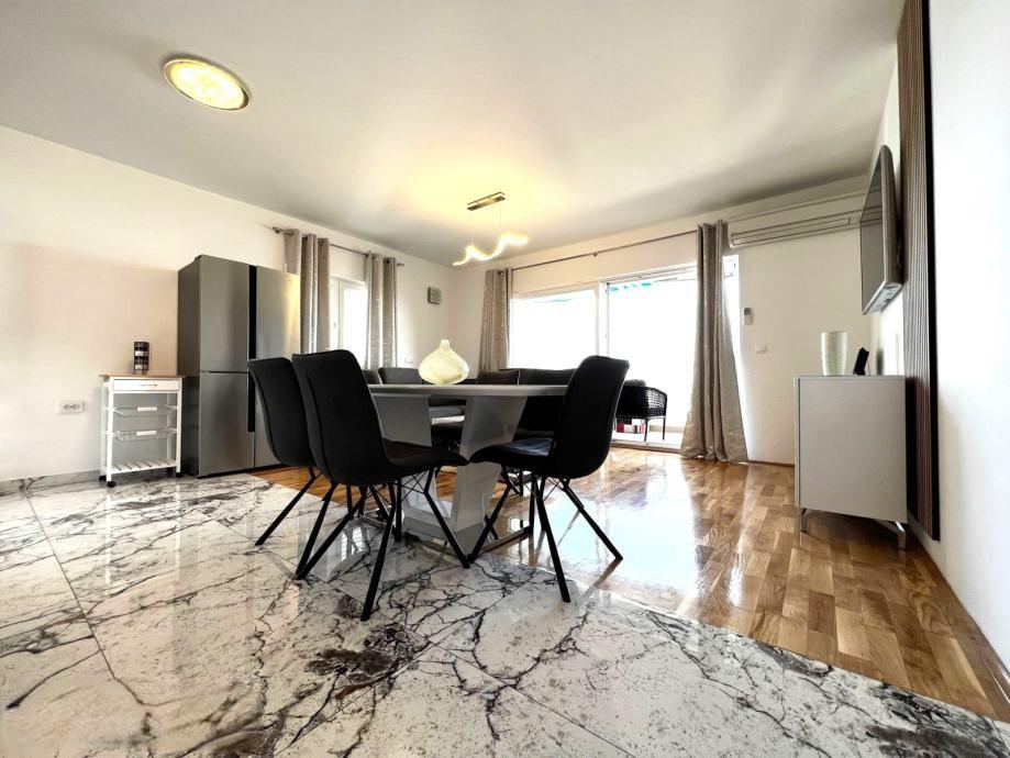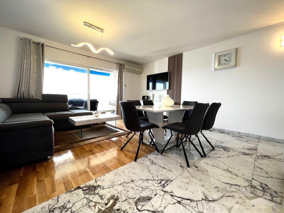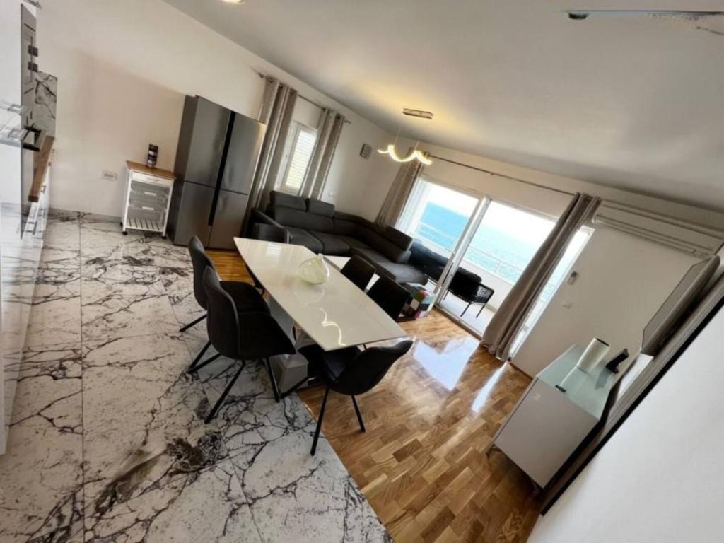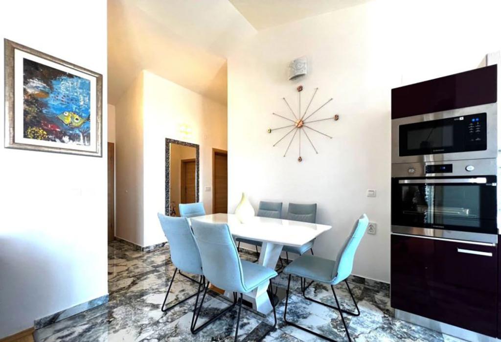 Nowoczesny penthouse zachwyca eleganckim designem i spektakularnym widokiem na wyspy. Przestronna część dzienna wyposażona jest w nowoczesne i wygodne meble, klimatyzację oraz duży telewizor o przekątnej 190 cm, tworząc przyjemne otoczenie. Duże przesuwane ściany oferują niesamowity panoramiczny widok na wyspy, przenikając przestrzeń naturalnym światłem. Kuchnia wyposażona jest w najnowocześniejszy sprzęt AGD, jadalnia jest przestronna i pozwala cieszyć się posiłkami z fascynującym widokiem na morze. Posiada trzy komfortowe pokoje, każdy wyposażony w luksusowe łóżko, telewizor i klimatyzację dla pełnego komfortu gości. Łazienka z kabiną prysznicową zapewnia luksusowy relaks, a osobna toaleta zwiększa komfort. Duży balkon z meblami ogrodowymi i huśtawką to idealne miejsce na relaks i podziwianie wschodów i zachodów słońca z bajecznym widokiem na wyspy. Apartament ten stanowi połączenie nowoczesnego stylu, komfortu i niesamowitego piękna przyrody, zapewniając niezapomniane wrażenia z pobytu nad morzem.