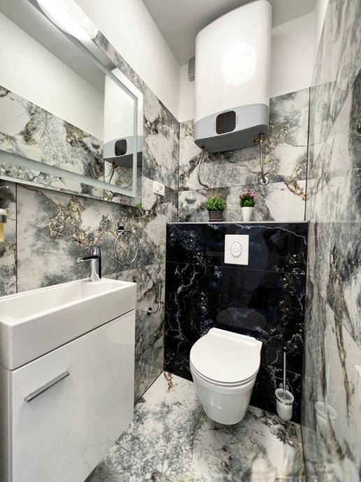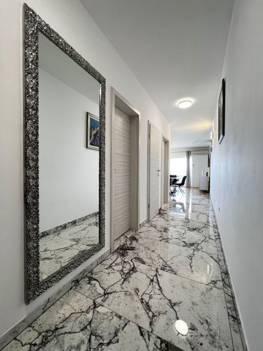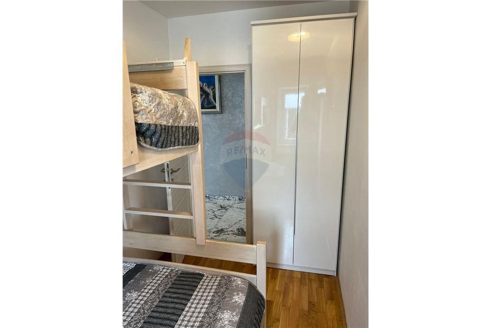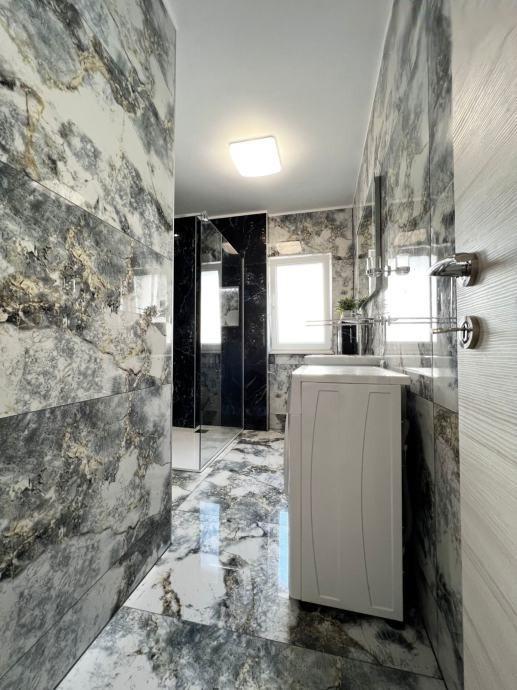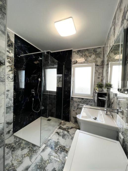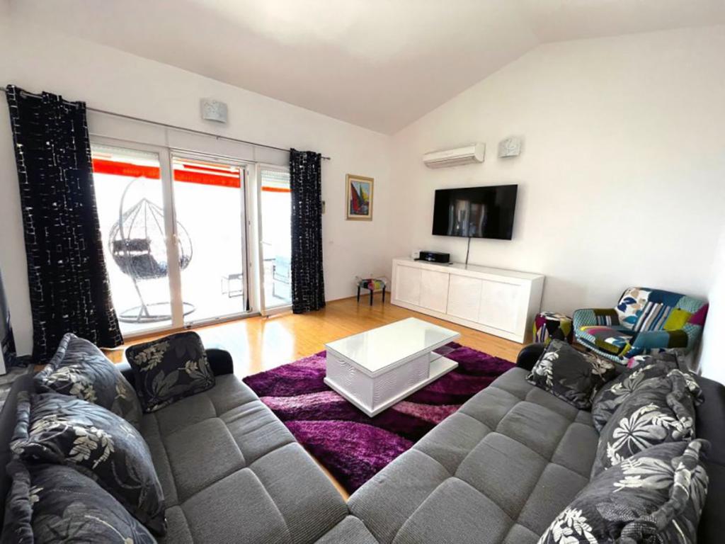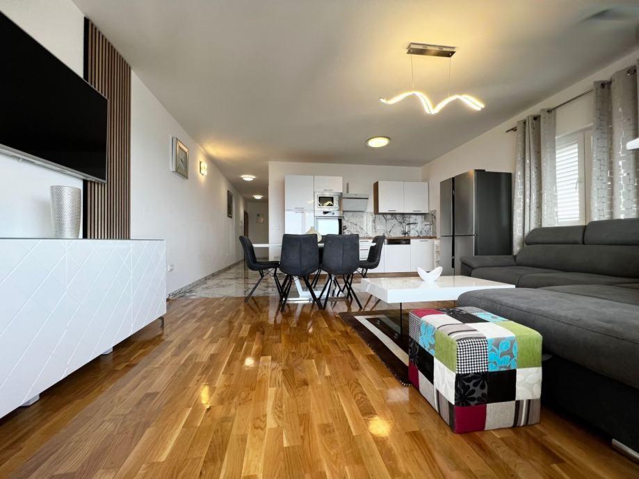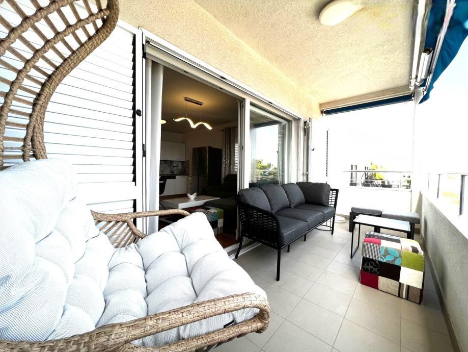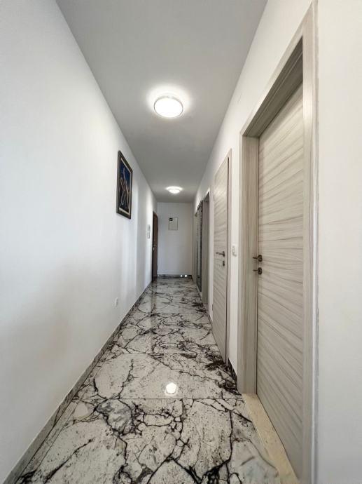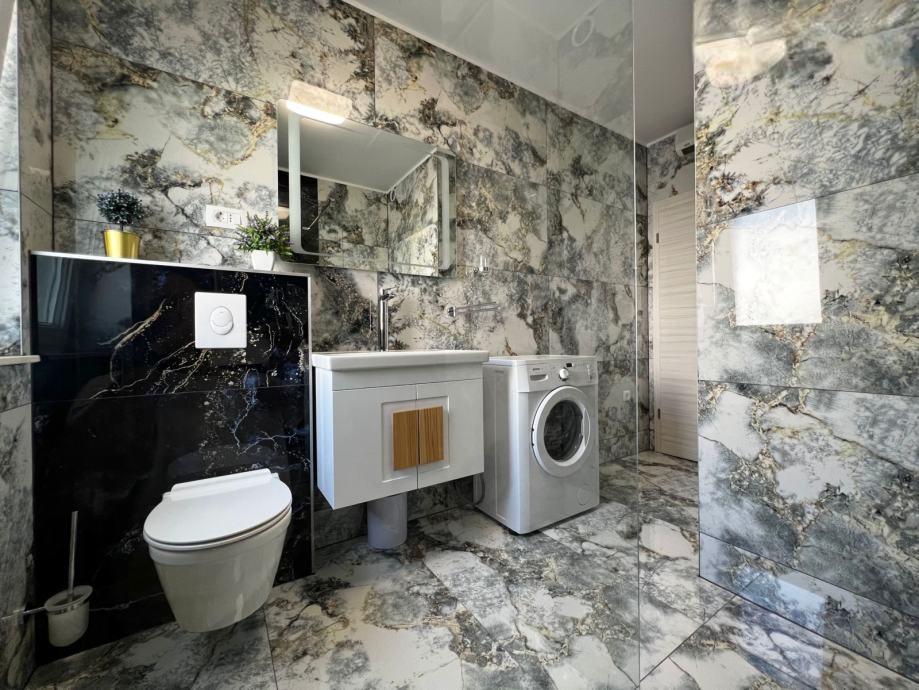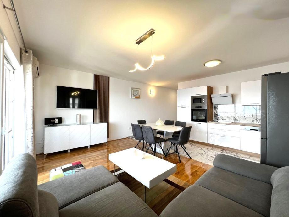 Nowoczesny penthouse zachwyca eleganckim designem i spektakularnym widokiem na wyspy. Przestronna część dzienna wyposażona jest w nowoczesne i wygodne meble, klimatyzację oraz duży telewizor o przekątnej 190 cm, tworząc przyjemne otoczenie. Duże przesuwane ściany oferują niesamowity panoramiczny widok na wyspy, przenikając przestrzeń naturalnym światłem. Kuchnia wyposażona jest w najnowocześniejszy sprzęt AGD, jadalnia jest przestronna i pozwala cieszyć się posiłkami z fascynującym widokiem na morze. Posiada trzy komfortowe pokoje, każdy wyposażony w luksusowe łóżko, telewizor i klimatyzację dla pełnego komfortu gości. Łazienka z kabiną prysznicową zapewnia luksusowy relaks, a osobna toaleta zwiększa komfort. Duży balkon z meblami ogrodowymi i huśtawką to idealne miejsce na relaks i podziwianie wschodów i zachodów słońca z bajecznym widokiem na wyspy. Apartament ten stanowi połączenie nowoczesnego stylu, komfortu i niesamowitego piękna przyrody, zapewniając niezapomniane wrażenia z pobytu nad morzem.