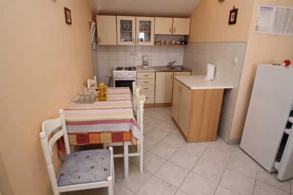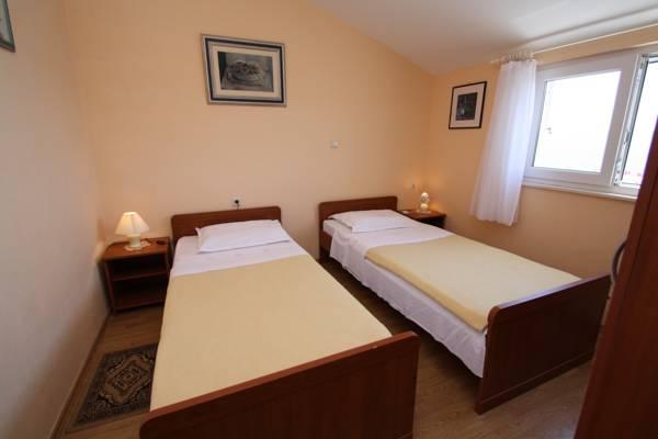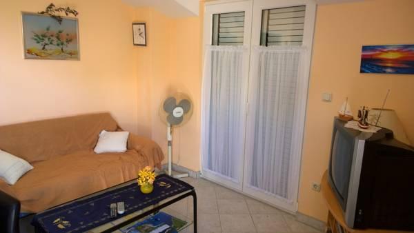 Trzy-pokojowe mieszkanie, położone na 1 piętrze. Składa się z pokoju dziennego z rozkładaną sofą, sypialnia z łóżkiem małżeńskim i sypialnia z dwoma pojedynczymi łóżkami. W apartamencie znajduje się łazienka z wanną i kuchnia z wszystkich urządzeń (piekarnik, kuchenka 4 rozpoczął, lodówka, zamrażarka ..) Na całej długości z mieszkań posiada balkon ze stołem i krzesłami z widokiem na morze. Internet bezprzewodowy jest bezpłatny.
