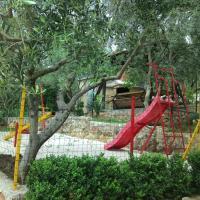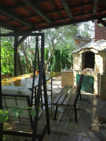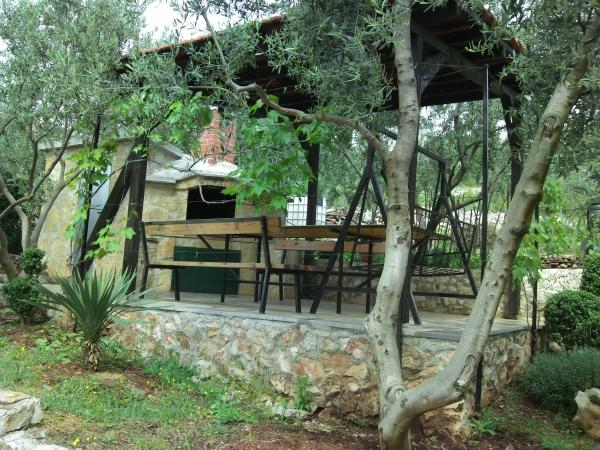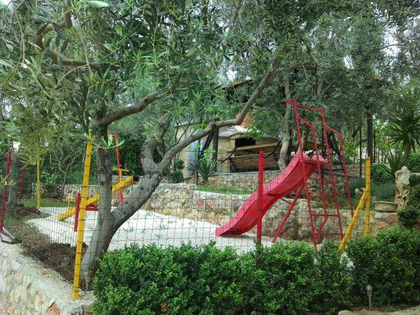 Za domem znajduje się gaj oliwny, stół z ławkami dla 10 osób z grillem oraz plac zabaw dla dzieci.