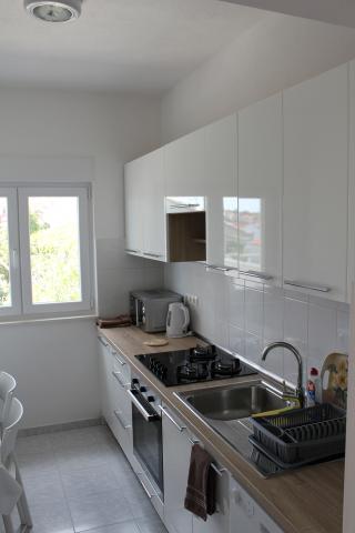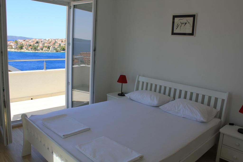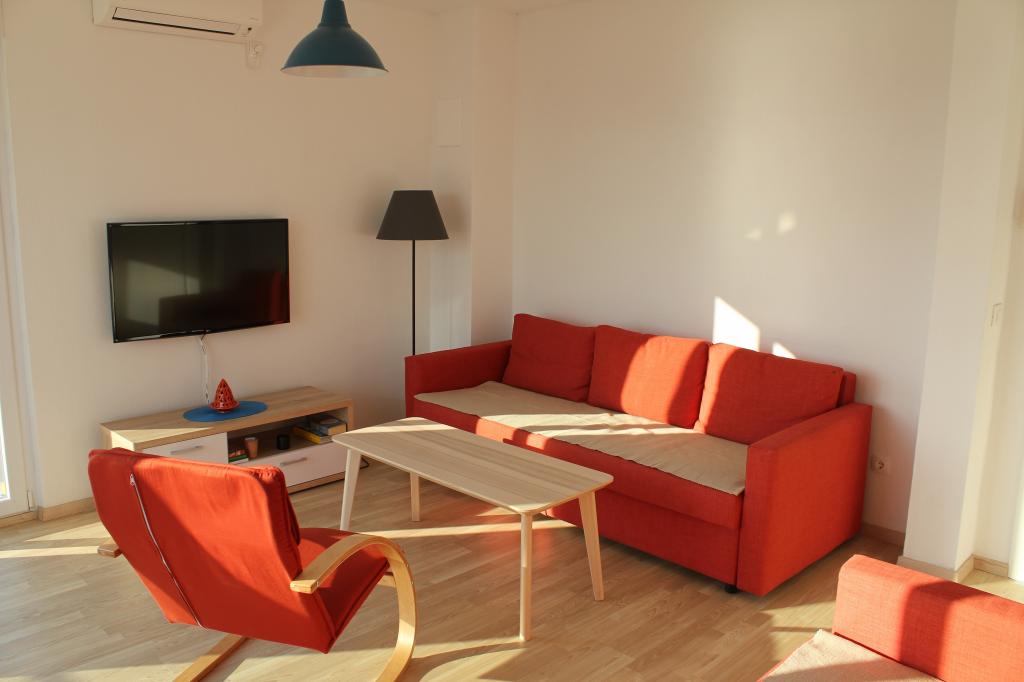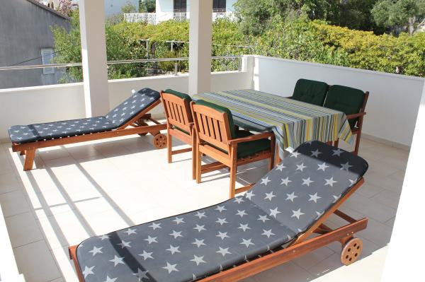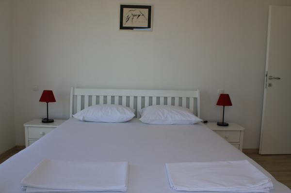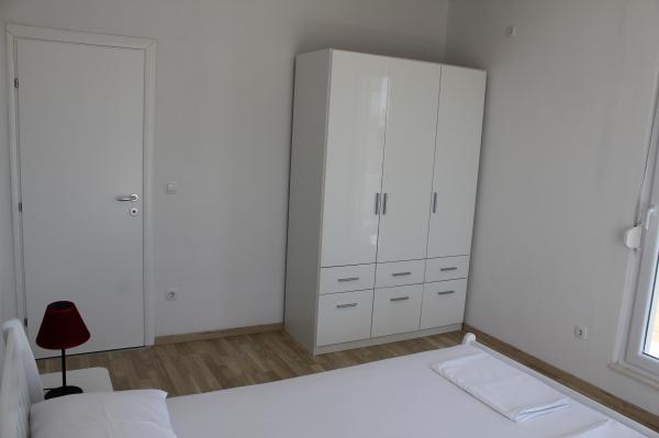 Apartamenty skierowane na południe są odpowiednie dla indywidualnych gości, jak również dla par i mniejszych grup oraz rodzin (4-5 osób). Apartamenty są nowo wybudowane i wyposażone w nowoczesne i wysokiej jakości materiały i urządzenia. Kuchnia, salon, sypialnia, łazienka są dostępne z korytarza. Apartamenty są przestronne i pełne światła we wszystkich pomieszczeniach z możliwością przyciemnienia za pomocą rolet. Przestrzeń wewnętrzna (56 m2) uzupełniona jest dodatkowym tarasem i balkonem o powierzchni 35 m2, do których można wejść z salonu i sypialni. Oferują piękny widok na morze, które znajduje się w odległości 120 m. Apartament wyposażony jest w 43-calowy telewizor, WiFi, zmywarkę, płytę ceramiczną i piekarnik, lodówkę, ekspres do kawy Nespresso, kuchenkę mikrofalową. Dla wygodnego snu łóżka wyposażone są w materace kieszeniowe o wymiarach 160x200 cm, a także wysokiej jakości pościel. 2 rozkładane sofy (140x200 cm) w salonie. Miejsce parkingowe. Pralka.