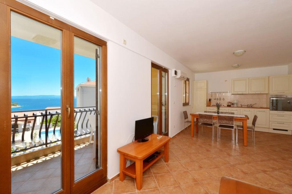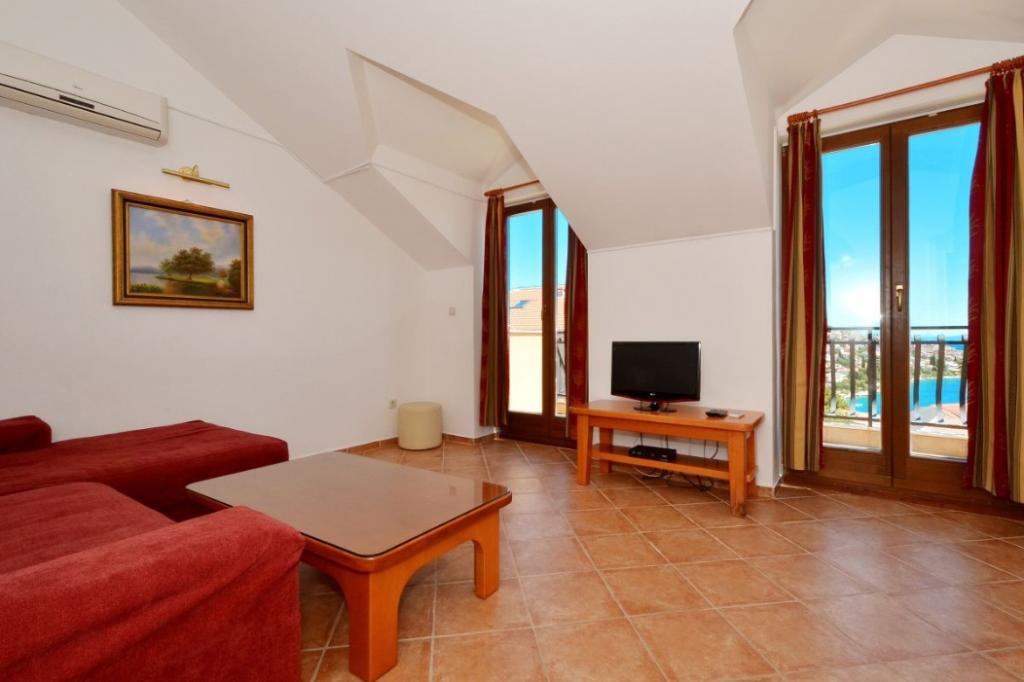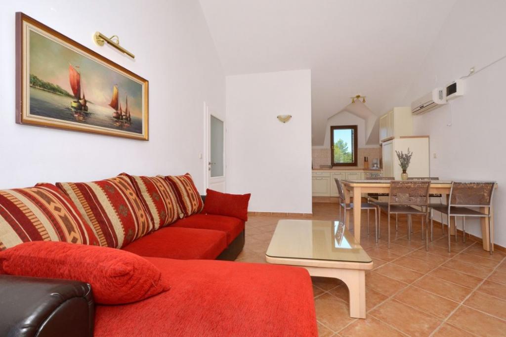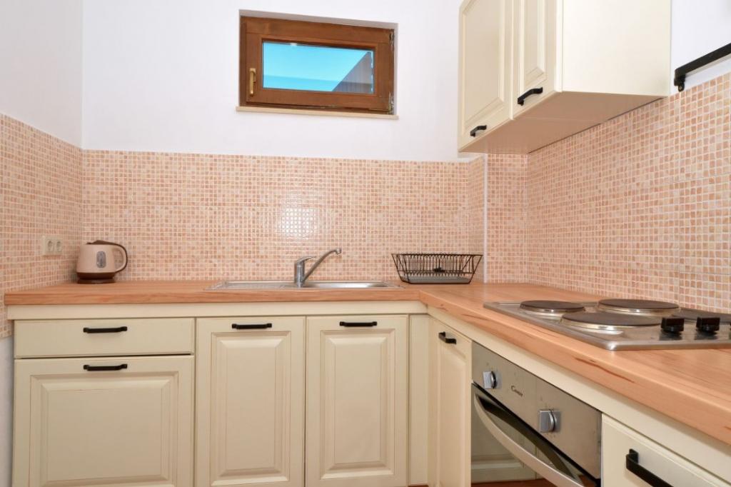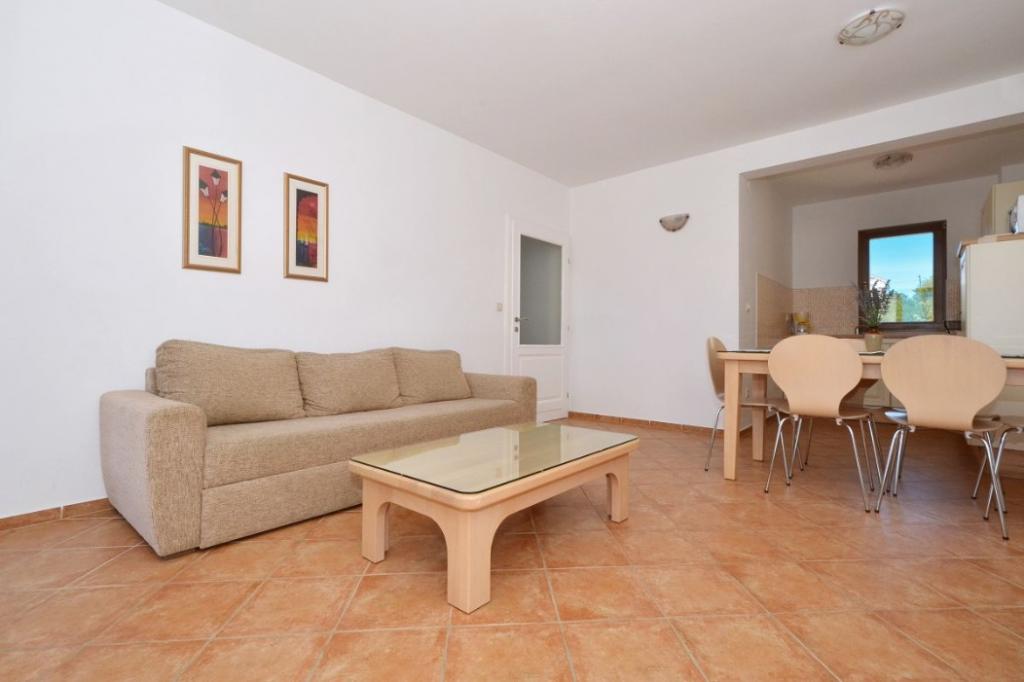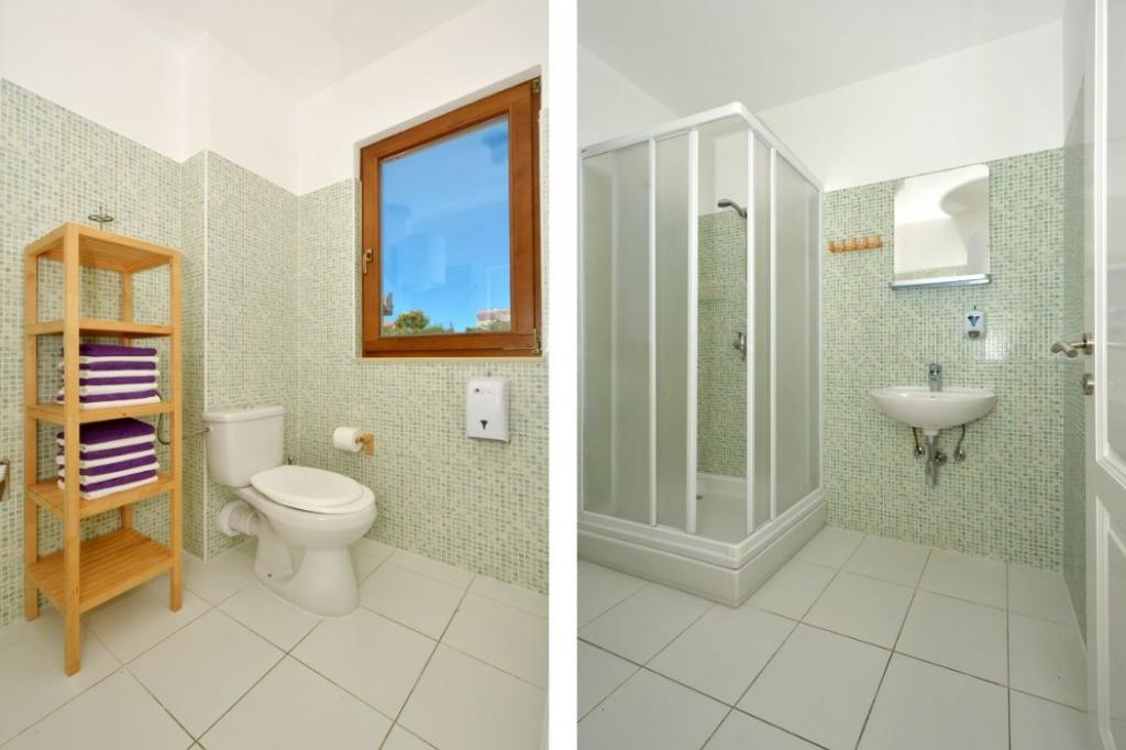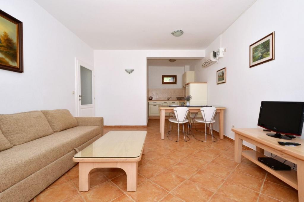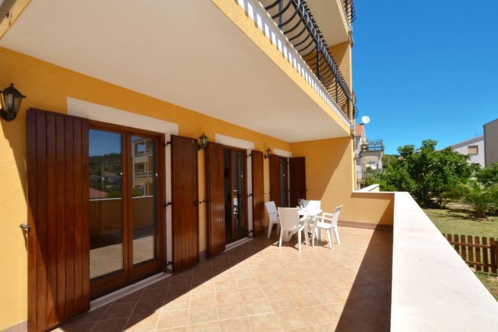 W pełni wyposażone apartamenty NAVI znajdują się na wyspie Ciovo, z widokiem na otwarte morze, zaledwie 200 metrów od pierwszej żwirowej plaży. Na plaży znajduje się zaplecze gastronomiczne i park wodny dla dzieci, w którym można również wypożyczyć rowery wodne lub deski surfingowe. Każdy apartament składa się z dwóch sypialni, łazienki, spiżarni, kuchni, salonu i tarasu. Apartamenty są w pełni wyposażone we wszystko, czego potrzebujesz na wakacje. Apartament B1, znajdujący się na parterze, posiada duży taras o powierzchni 29 m2 i dostęp do ogrodu. Masz również parking (1 miejsce parkingowe na mieszkanie) i nieograniczony dostęp do Internetu. Tylko 200 metrów od hotelu znajdują się restauracje i inne obiekty gastronomiczne, a centrum, w którym znajduje się lekarz, bank, poczta i targ, znajduje się zaledwie 400 metrów od naszego zakwaterowania.