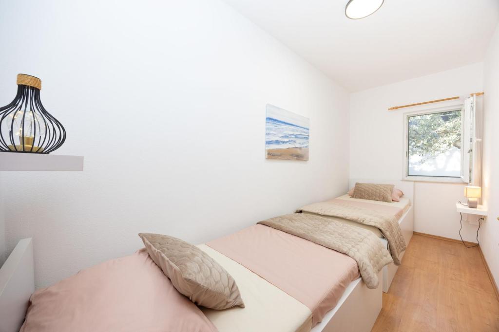 Apartamenty Nela są wyposażone w komfortowe pokoje, położone na południowej stronie półwyspu Ciovo. Dokładniej, w zatoce Movarštica. Widok rozciąga się na wyspy Solta i Drvenik. W pobliżu znajduje się piękne historyczne miasto Trogir, który zachwyca swoją architekturą i rozrywki. W pobliżu znajduje się lotnisko Split (6 km), miasta Kastela (6 km), Split (33 km). , Spędzić wakacje w cichym miejscu, odpocząć i cieszyć się spokojną morze Bokun dobre jedzenie i wino i wodę. Apartamenty Nela są idealnym wyborem dla Ciebie. Rodzina Rajcic Ci nestrepljivo spodziewałem!