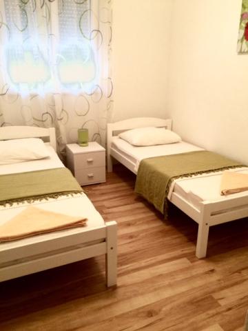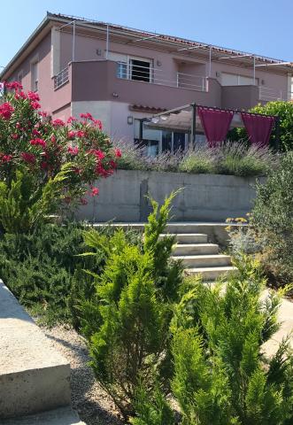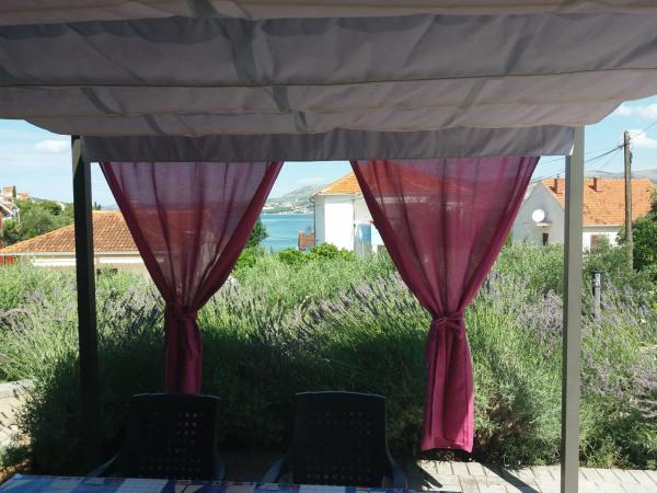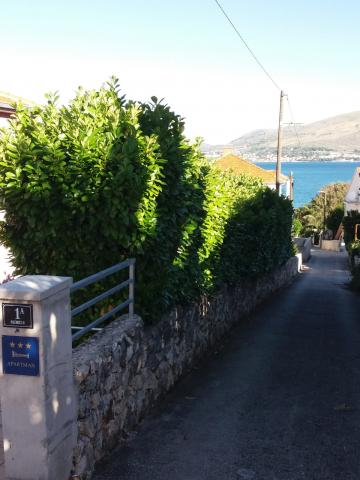 Nowoczesne apartamenty, zaledwie 40 metrów od morza i wszystkie letnie rozrywki i aktywnego wypoczynku. Mieszkanie jest idealne dla rodzin z dziećmi, ponieważ nie ma ruchu i duży trawiasty ogród jest rodzaj zabaw. Wokół domu znajduje się piękny ogród wzbogacony śródziemnomorskich ziół i kwiatów, i przyczynia się do przyjemnego pobytu. W gaju oliwnym, który znajduje się w podwórku, kominkiem, gdzie goście mogą przygotować potrawy z grilla. Obiekt położony jest w spokojnej części wyspy Brac, w miejscowości Trogir, w małej zatoce w nepoštednoj koło Trogiru i 5 km od lotniska w Splicie.