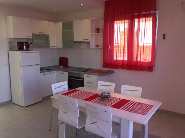 Świetny apartament, bardzo czysty i przestronny. Kuchnia jest doskonale wyposażona, wystarczy naczynia i inne przybory. Taras jest duży, z leżakami i otoczony piękną plantacją lawendy i drzew oliwnych. Lokalizacja jest blisko plaży i centrum miasta. Wszystko jest w zasięgu ręki. Właściciele bardzo sympatyczni. Polecamy!