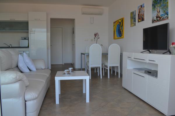 Bardzo mili gospodarze, super kontakt. Mieszkanie czyste i bardzo dobrze wyposażone: zmywarka, pralka, żelazko, 2 klimatyzacje!, piękny widok ze sporego balkonu. Polecam