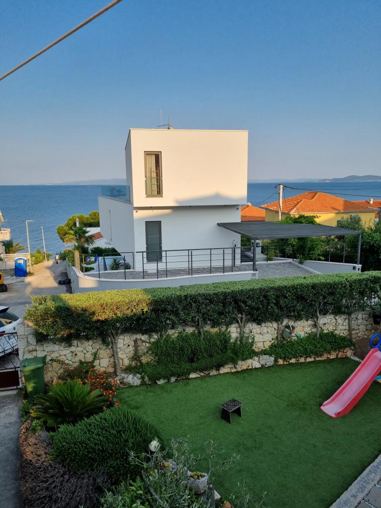 Dom wakacyjny Radmilo oddalony jest o 5 km od wpisanego na Listę Światowego Dziedzictwa UNESCO miasta Trogir. Znajduje się w zatoce Bušinca w Okrug Gornji. Odległość od plaży wynosi zaledwie 50 metrów (plaża betonowa), ale w bezpośrednim sąsiedztwie znajduje się również plaża żwirowa. Dom składa się z mieszkania na parterze, na które składa się kuchnia z jadalnią i salonem, 3 sypialnie, łazienka i podwórko. Również mieszkanie na piętrze składające się z kuchni z jadalnią, 3 sypialni, 2 łazienek oraz tarasu z widokiem na morze. Goście apartamentu A1 (parter) mają do dyspozycji piękny ogród z zapleczem, grillem, kuchnią letnią oraz podwórko z jacuzzi. Goście apartamentu B1 (piętro) mają do dyspozycji tylną część podwórka (widoczną na zdjęciach). Dom jest w pełni wyposażony we wszystkie udogodnienia: pralka, zmywarka, sejf, podgrzewacz wody, klimatyzacja, kuchenka mikrofalowa, telewizja satelitarna... Idealny dla rodzin z dziećmi. Zwierzęta - na życzenie!!