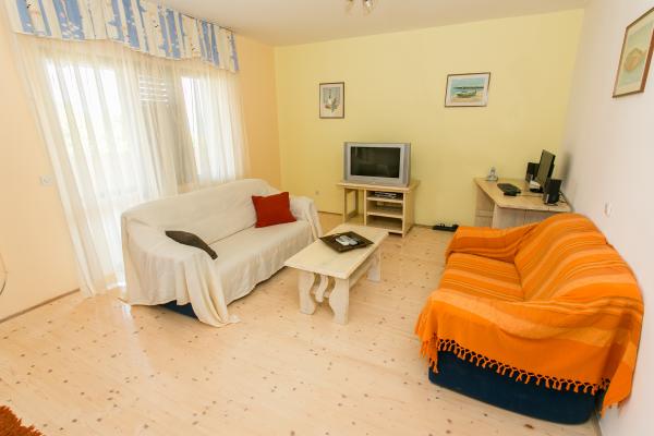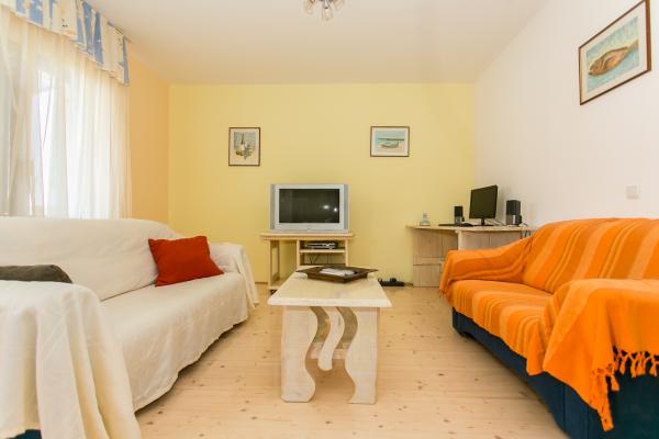 Mieszkanie jest duże i przestronne (100m2) i taras (25m2) znajduje się piękny widok na morze. Mieszkanie posiada miejsce parkingowe i otoczenie. Apartament posiada własny ogród, gdzie jest plaża roštilj.Atraktivna z dużo jest tylko 2 minuty spacerem. W mieszkaniu można odpocząć i cieszyć się, i jeśli chcesz, aby wszystkie twoje działania w blizini.Apartman położony jest w spokojnej okolicy, z lokalnych mieszkańców.