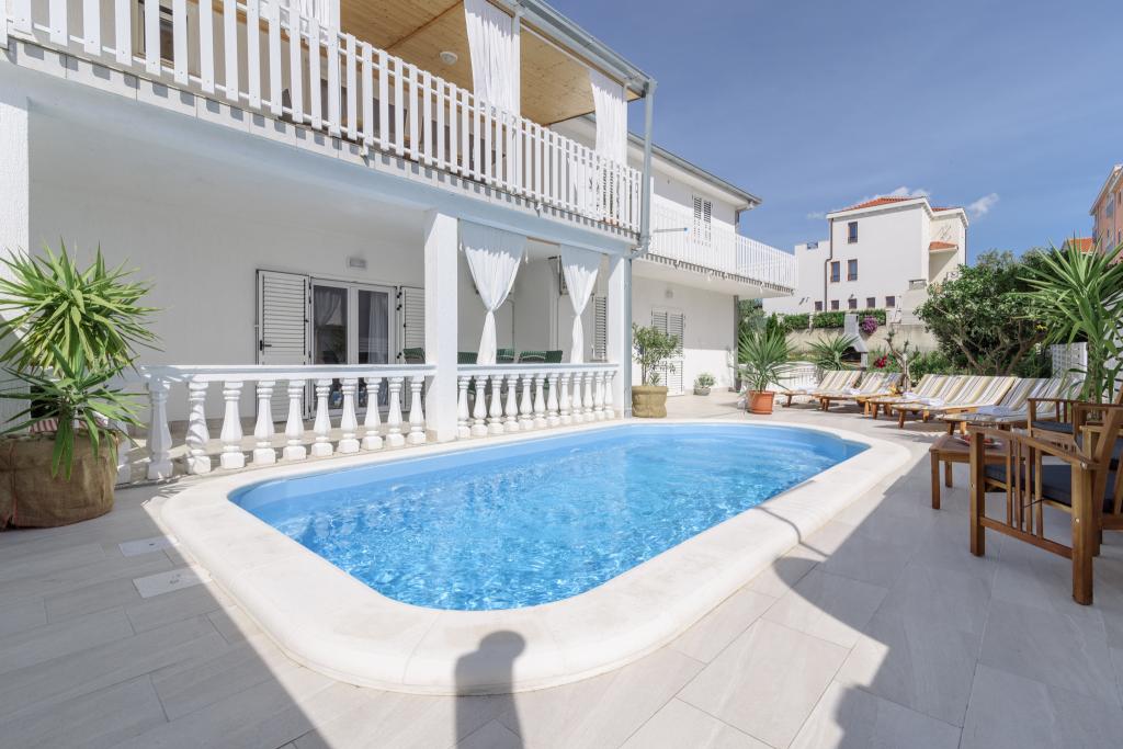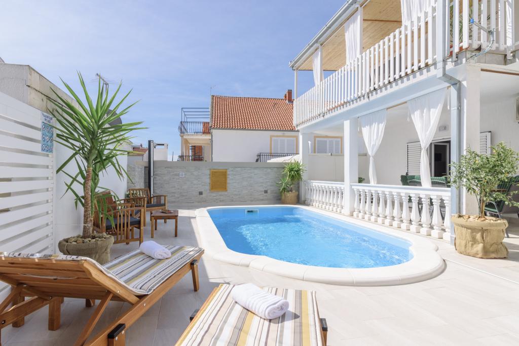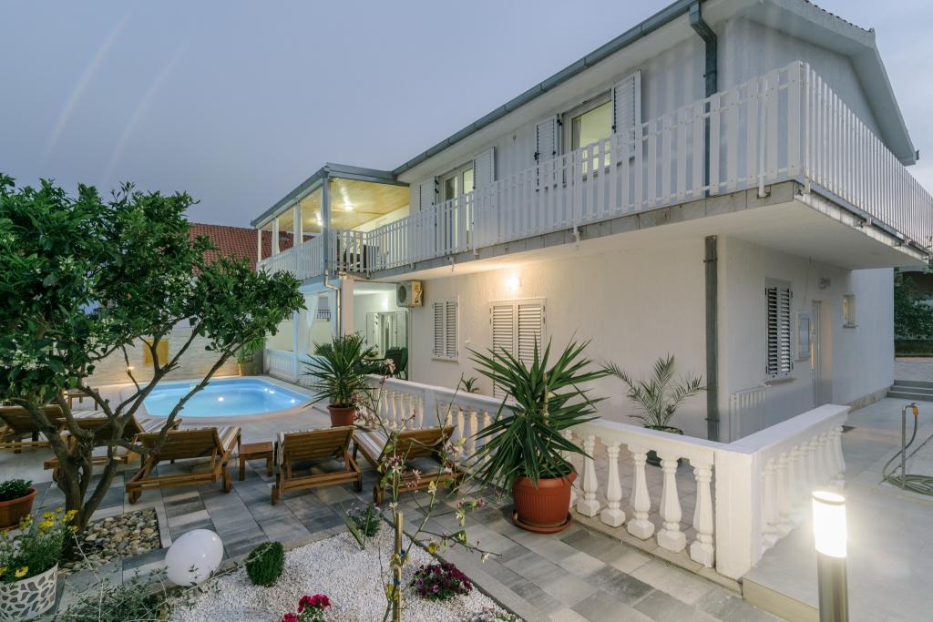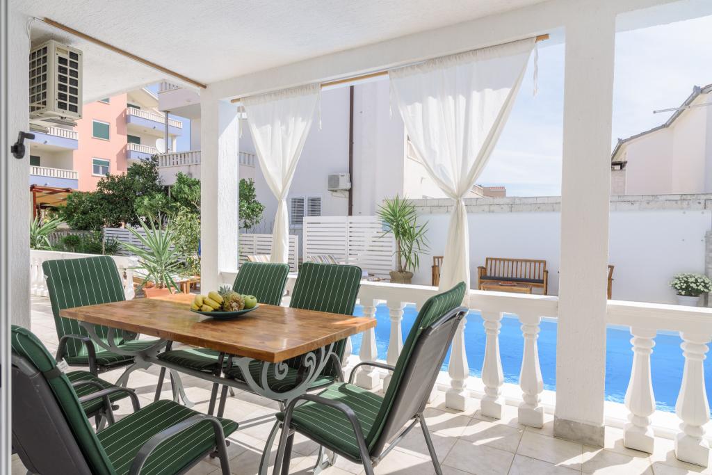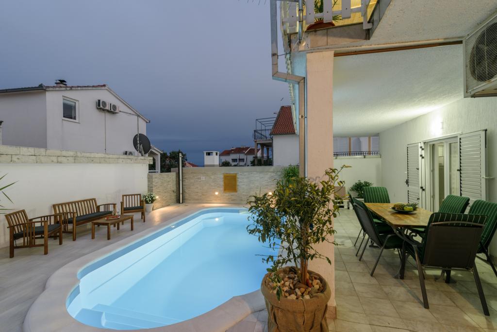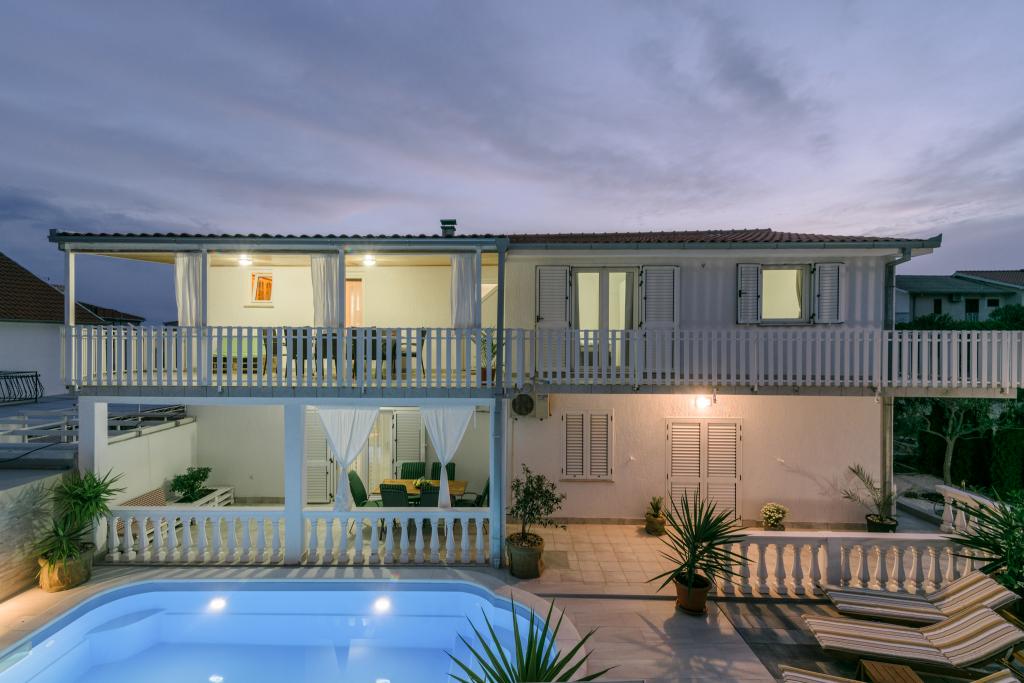 Jest to rodzinny dom z basenem, położony w spokojnej części Okrug Gornji, w pobliżu plaży, restauracji i centrum Okrug Gornji Oferujemy dwa apartamenty dla 4 i 6 osób, z parkingiem dla wszystkich gości Apartament ID: 26110 znajduje się na pierwsze piętro, składa się z 3 sypialni, łazienki, salonu, w pełni wyposażonej kuchni i dużego tarasu z widokiem na morze, apartament nadaje się dla dwóch rodzin ID apartamentu: 26111 znajduje się na parterze, składa się z 2 sypialni, łazienki, salonu pokój, w pełni wyposażona kuchnia i duży taras przy którym znajduje się basen z leżakami i grillem Apartamenty są duże i wygodne i posiadają duże tarasy Wszystkie apartamenty posiadają pralkę W pobliżu apartamentu znajduje się mini market, restauracja, centrum sportowe Możliwość do wynajęcia cały dom!