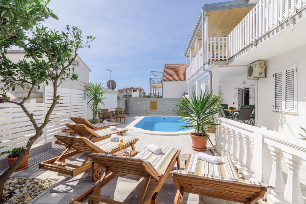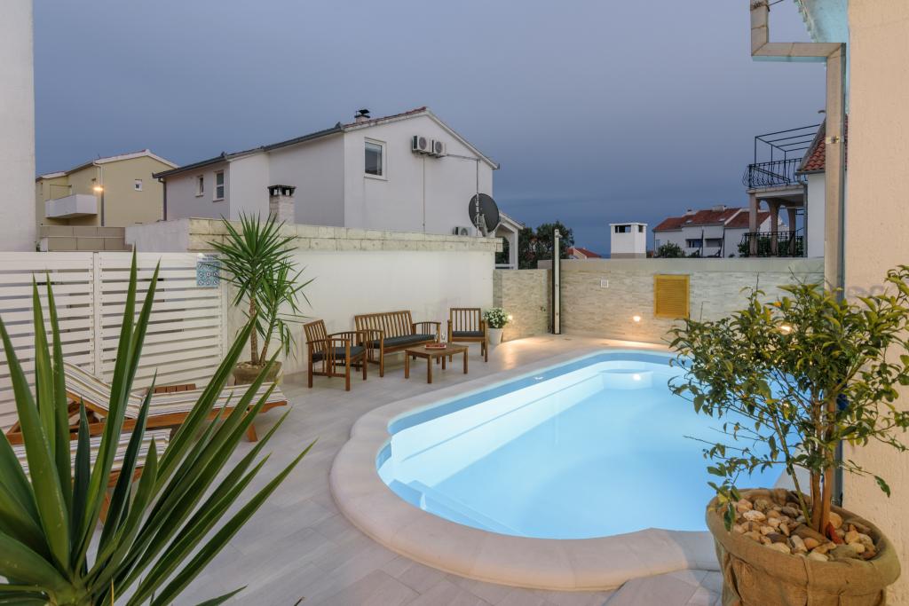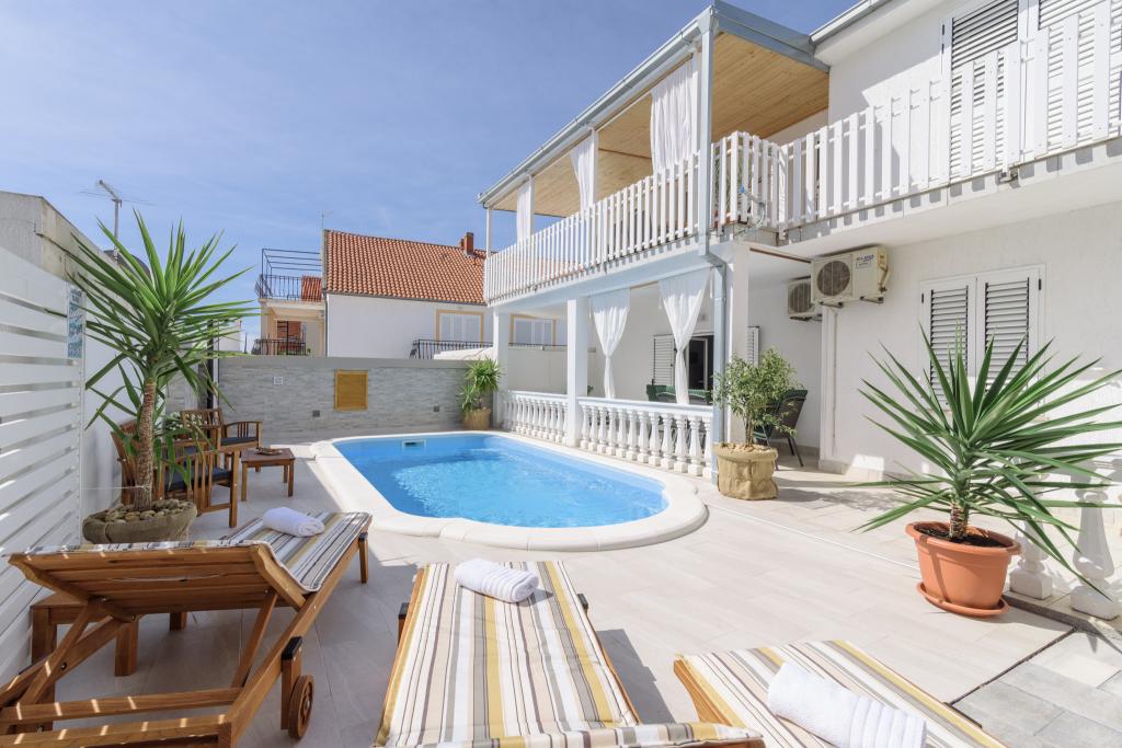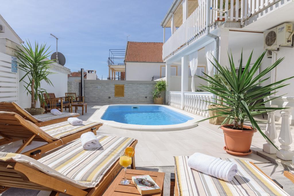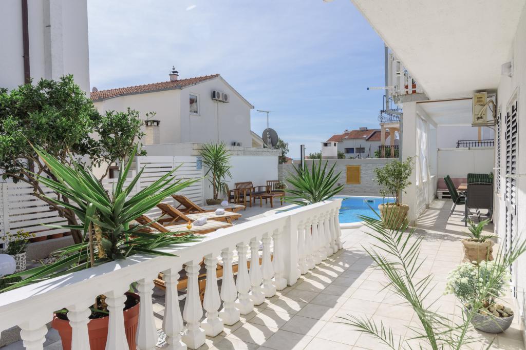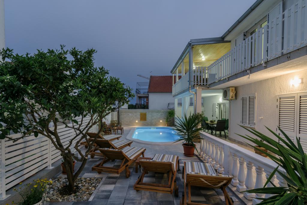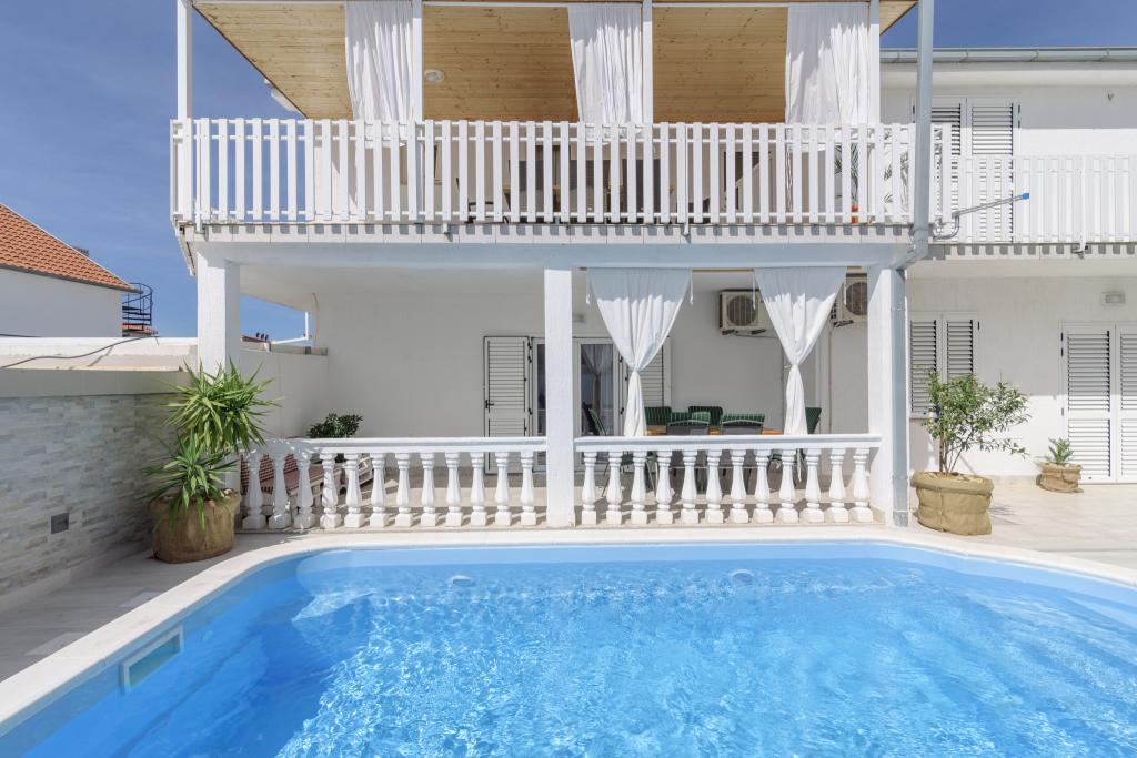 Jest to rodzinny dom z basenem, położony w spokojnej części Okrug Gornji, w pobliżu plaży, restauracji i centrum Okrug Gornji Oferujemy dwa apartamenty dla 4 i 6 osób, z parkingiem dla wszystkich gości Apartament ID: 26110 znajduje się na pierwsze piętro, składa się z 3 sypialni, łazienki, salonu, w pełni wyposażonej kuchni i dużego tarasu z widokiem na morze, apartament nadaje się dla dwóch rodzin ID apartamentu: 26111 znajduje się na parterze, składa się z 2 sypialni, łazienki, salonu pokój, w pełni wyposażona kuchnia i duży taras przy którym znajduje się basen z leżakami i grillem Apartamenty są duże i wygodne i posiadają duże tarasy Wszystkie apartamenty posiadają pralkę W pobliżu apartamentu znajduje się mini market, restauracja, centrum sportowe Możliwość do wynajęcia cały dom!