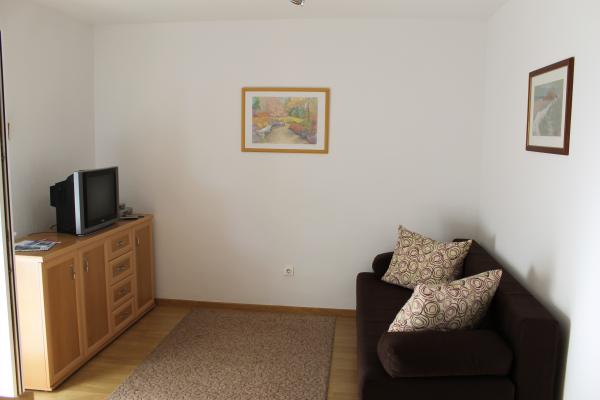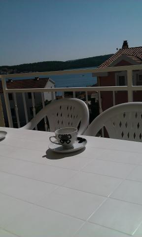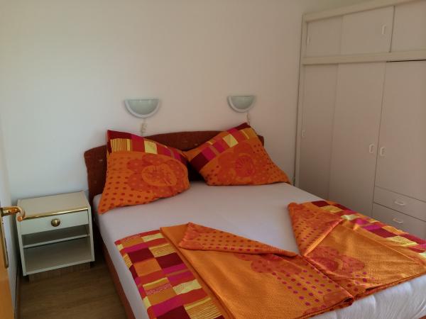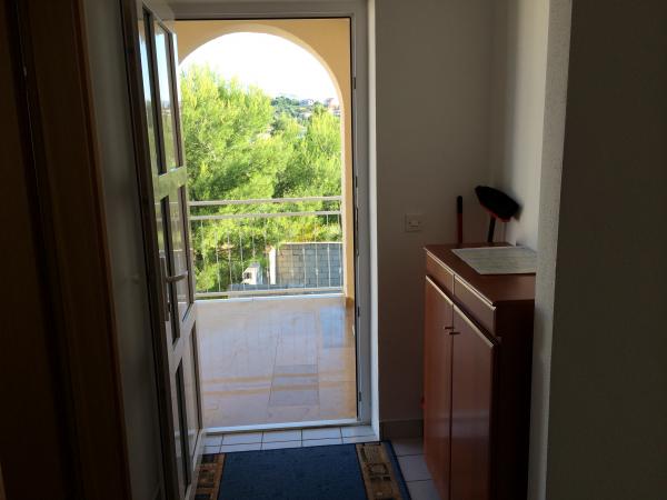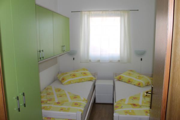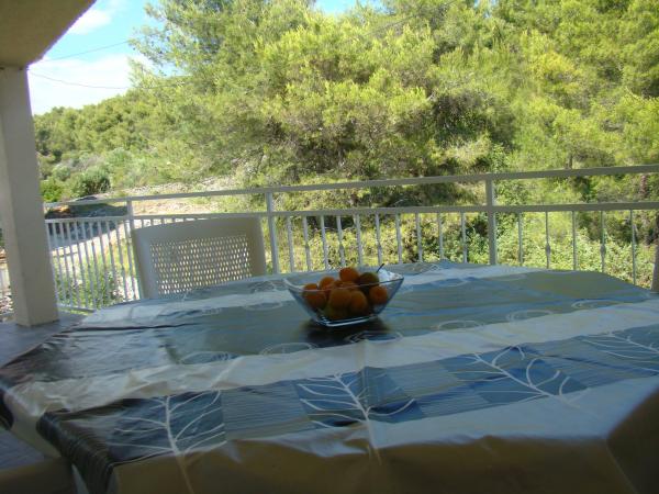 Apartamenty znajdują się 400 m od plaży, w spokojnej części wyspy. Kuchnia jest dobrze wyposażona, znajduje się zmywarka, lodówka, kuchenka z piekarnikiem i czajnikiem elektrycznym. W łazience znajduje się pralka i żelazko i deska do prasowania. Mieszkanie ma dwa tarasy, jeden z widokiem na morze, a drugi z widokiem na las.