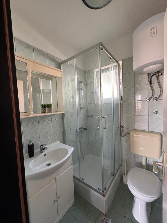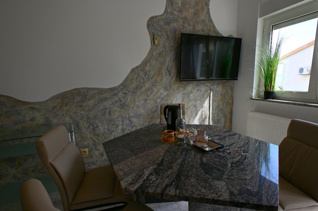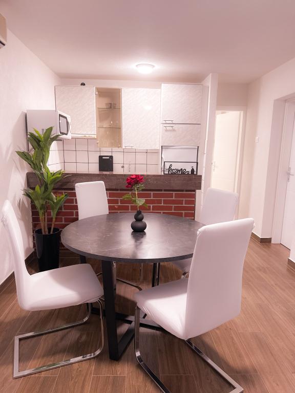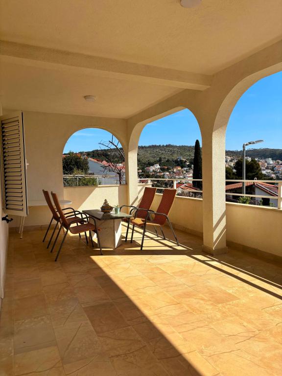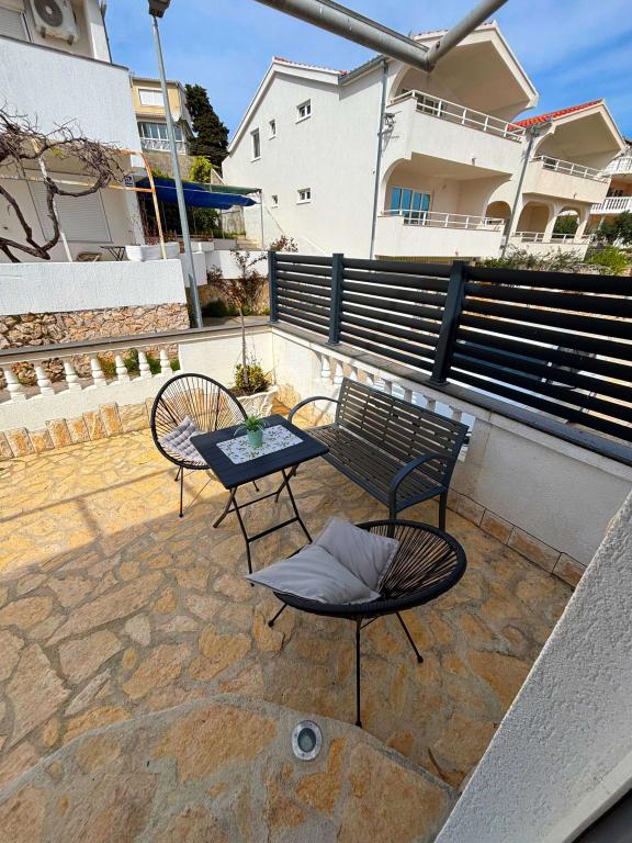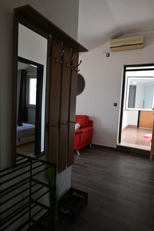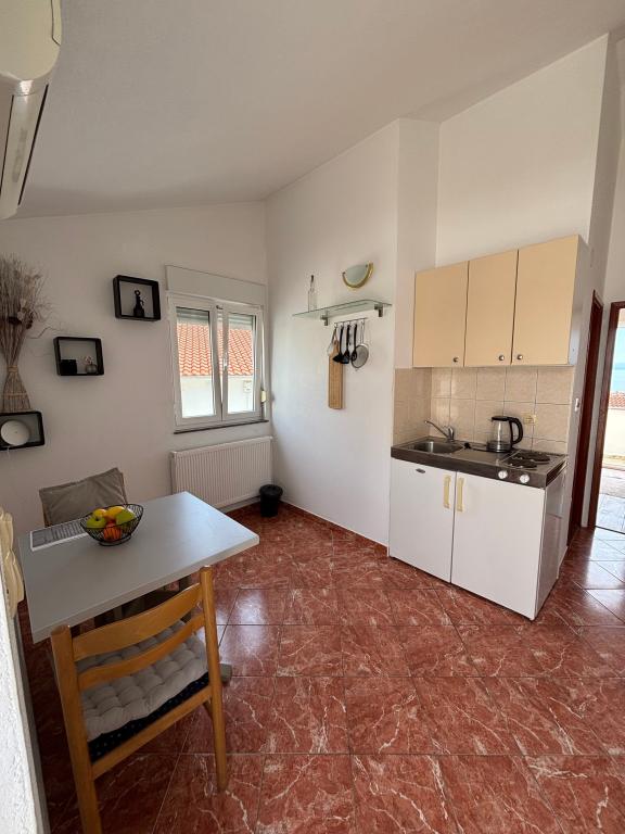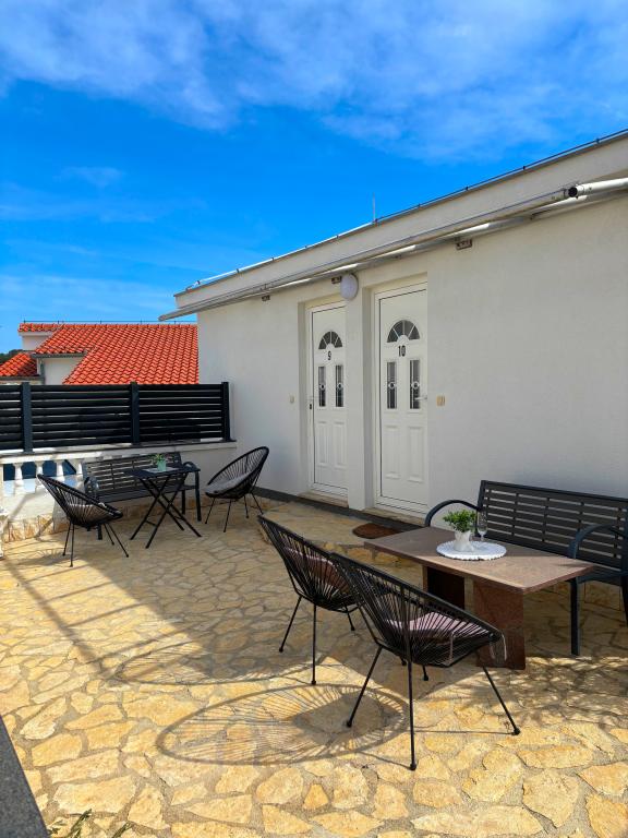Piękne apartamenty na wyspie Ciovo z pięknym widokiem na morze Nasz dom na wyspie Ciovo znajduje się zaledwie 2 minuty spacerem od plaży i oferuje niesamowity widok na Morze Adriatyckie. Obiekt położony jest w spokojnej okolicy i jest idealny dla osób, które chcą wypocząć, cieszyć się słońcem, morzem i prywatnością. Obiekt składa się z 11 apartamentów - 5 większych i 5 mniejszych, a także jednego specjalnego apartamentu z prywatnym basenem. Każdy apartament posiada własny taras, na którym można podziwiać piękne zachody słońca i cieszyć się świeżym morskim powietrzem. Apartamenty są nowoczesne i w pełni wyposażone. Mają kuchnię, klimatyzację, bezpłatne Wi-Fi i wszelkie niezbędne udogodnienia gwarantujące przyjemny pobyt. Przed domem znajduje się miejsce parkingowe, więc możesz bez obaw zaparkować swój samochód. To idealne miejsce dla rodzin, par i wszystkich, którzy chcą wypocząć nad morzem, ale także odkryć piękno wyspy Čiovo i okolic. Oprócz plażowania, Čiovo oferuje również wiele atrakcji, takich jak jazda na rowerze, turystyka piesza i sporty wodne. W pobliżu znajduje się również Trogir, miasto wpisane na listę światowego dziedzictwa UNESCO.