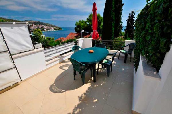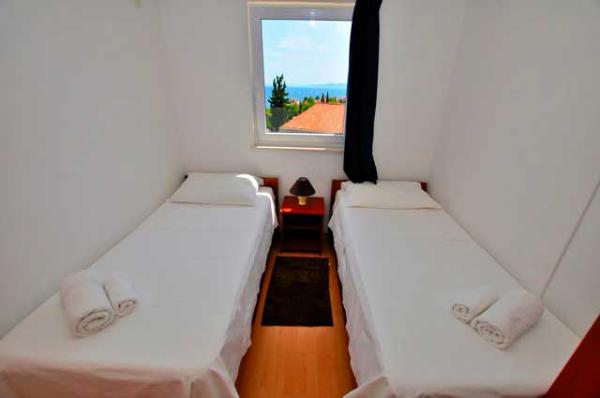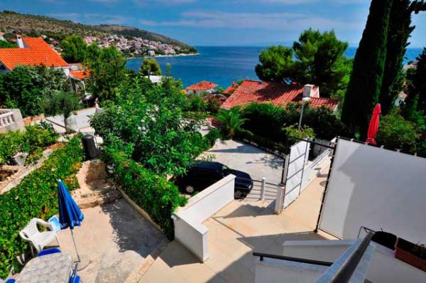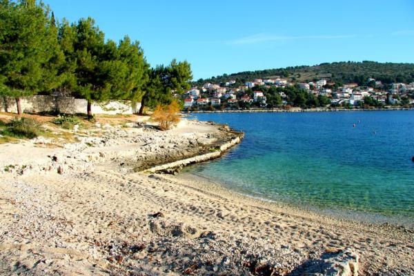 W spokojnej części wyspy, piękny widok. Każdy apartament posiada internet, TV-SAT, łazienkę, w pełni wyposażoną kuchnię, klimatyzację i miejsce parkingowe. 70m plaża, centrum 300m, Trogir 4 km, Split 30 km.