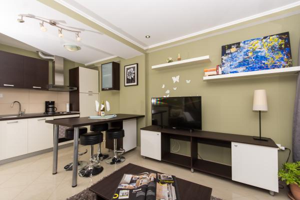 Jesteśmy bardzo zadowolenia z miejsca noclegowego. Bardzo ładny apartament, czysty z pięknym widokiem.Kuchnia bardzo dobrze wyposażona - jest wszystko! Blisko do plaży ( 2 minuty), plaża kamienista z łagodnym zejściem do morza. Idealna dla rodzin z dziećmi( daleko od drogi) poza tą plaża znajdują się piękne skały przystosowane do zejścia do morza. Bardzo blisko znajduje się sklep spożywczy, dwie restauracje i wypożyczalnia skuterów. Właściciele bardzo mili i gościnni. Pan Milijenko świadczy dodatkowo usługi transportowe. Bardzo chętnie zabiera na wycieczki za niewielkie pieniądze. Bardzo mu zależy na tym aby jego goście poznali i zobaczyli najpiękniejsze miejsca tego regionu w Chorwacji. Bardzo pomocny ( w dzień wyjazdu naszym znajomym zepsuł się samochód- pół dnia poświęcił na pomoc- bezinteresownie!!! Bardzo dobrze mówi po angielsku. POLECAMY WSZYSTKIM Z CZYSTYM SUMIENIEM!!! I POZDRAWIAMY WŁAŚCICIELI!!!