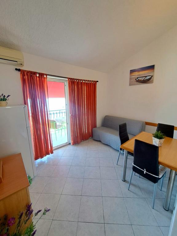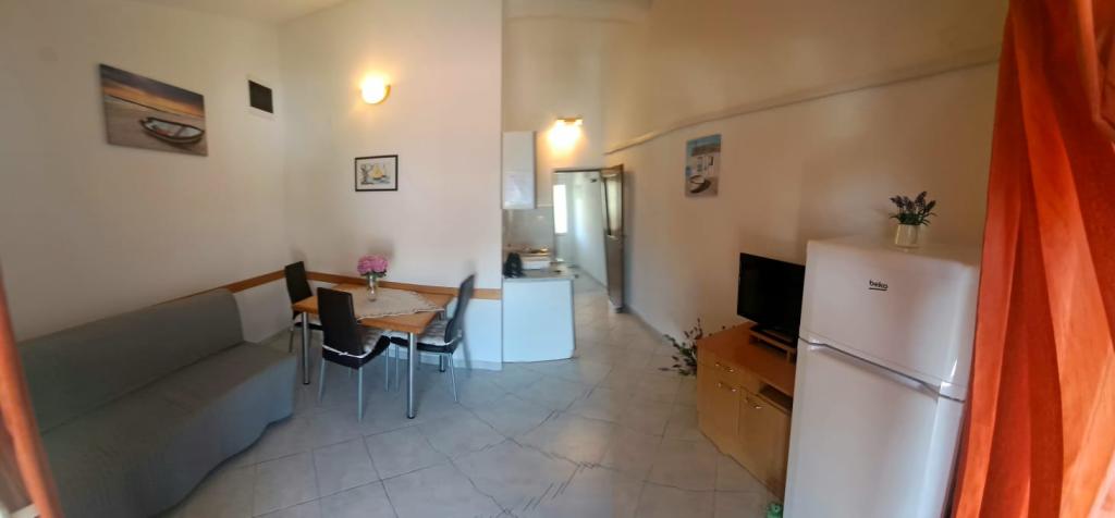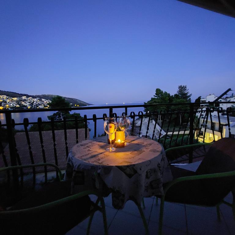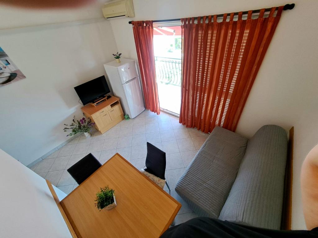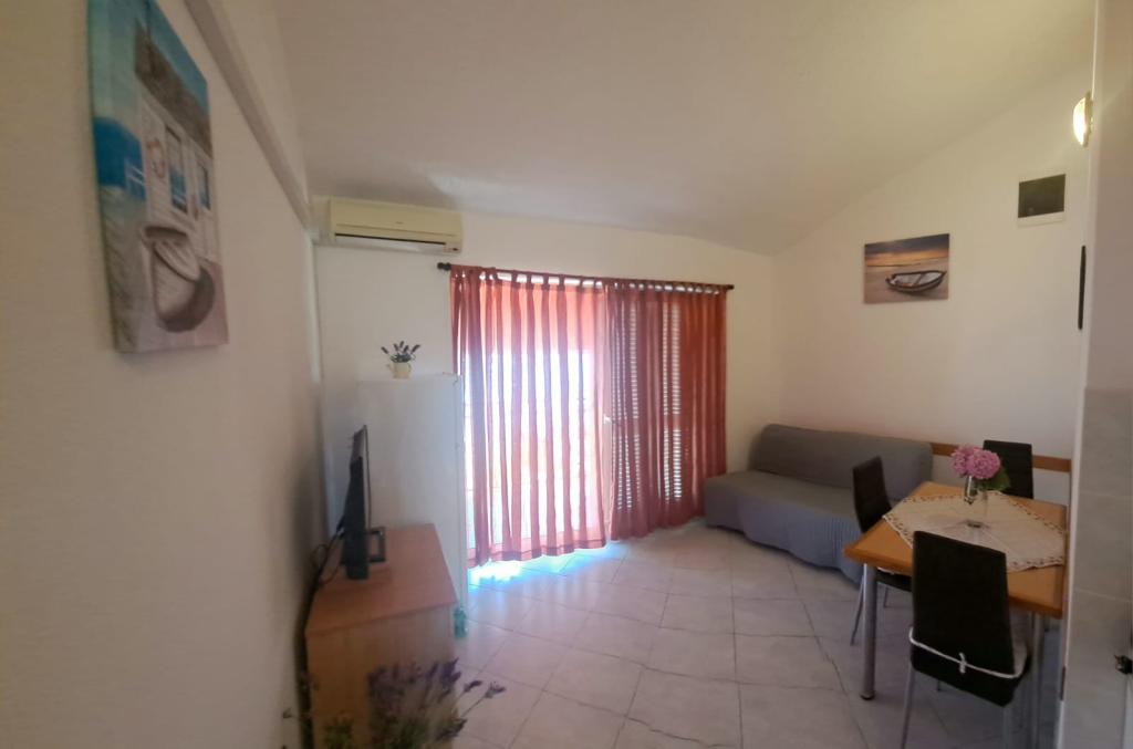 Apartamenty Toni znajdują się w wyjątkowo cichej okolicy, zaledwie 30 metrów od morza. Tuż pod apartamentem znajduje się piękna plaża żwirowa, a po lewej i prawej stronie plaży znajdują się skały morskie. Morze jest krystalicznie czyste. Z apartamentu roztacza się wspaniały widok na morze i wyspy. Każdy, kto przyjedzie, ma doskonałe warunki na idealne wakacje w spokoju. Apartamenty są klimatyzowane. Parking i Wi-Fi są bezpłatne.