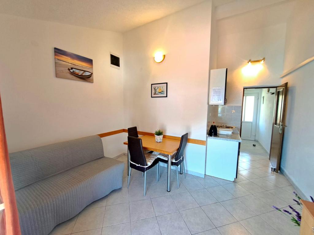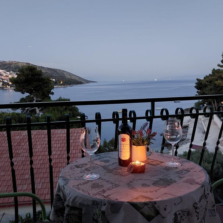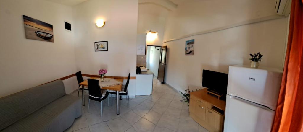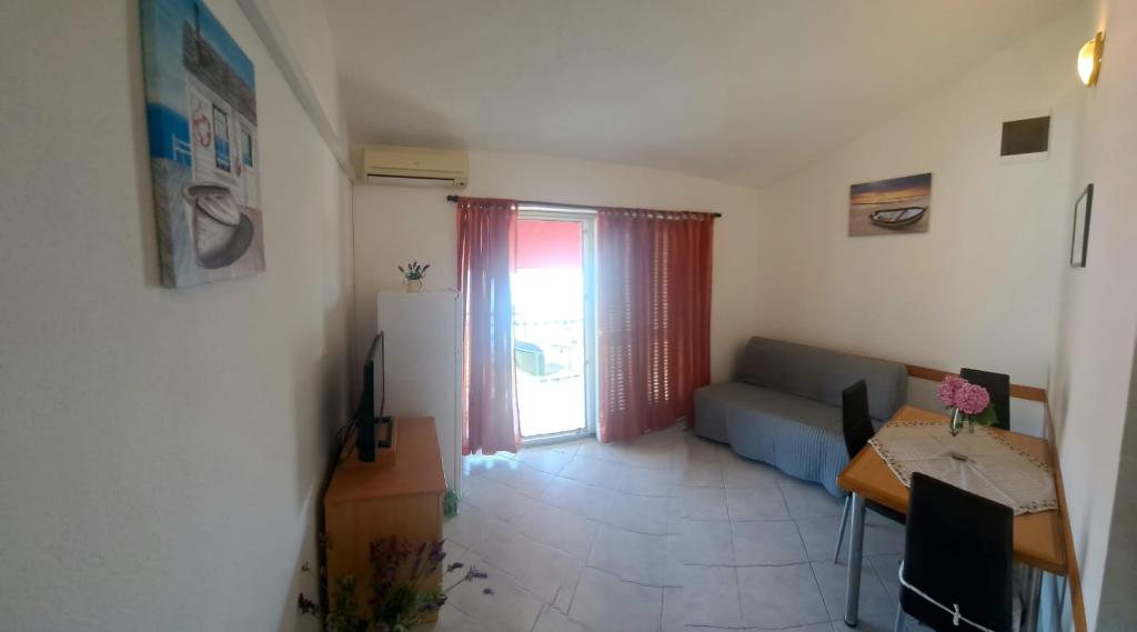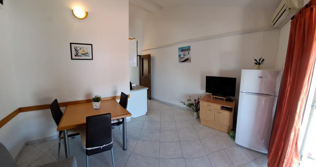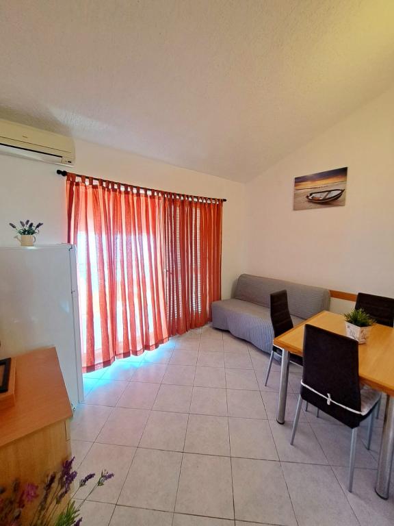 Apartamenty Toni znajdują się w wyjątkowo cichej okolicy, zaledwie 30 metrów od morza. Tuż pod apartamentem znajduje się piękna plaża żwirowa, a po lewej i prawej stronie plaży znajdują się skały morskie. Morze jest krystalicznie czyste. Z apartamentu roztacza się wspaniały widok na morze i wyspy. Każdy, kto przyjedzie, ma doskonałe warunki na idealne wakacje w spokoju. Apartamenty są klimatyzowane. Parking i Wi-Fi są bezpłatne.